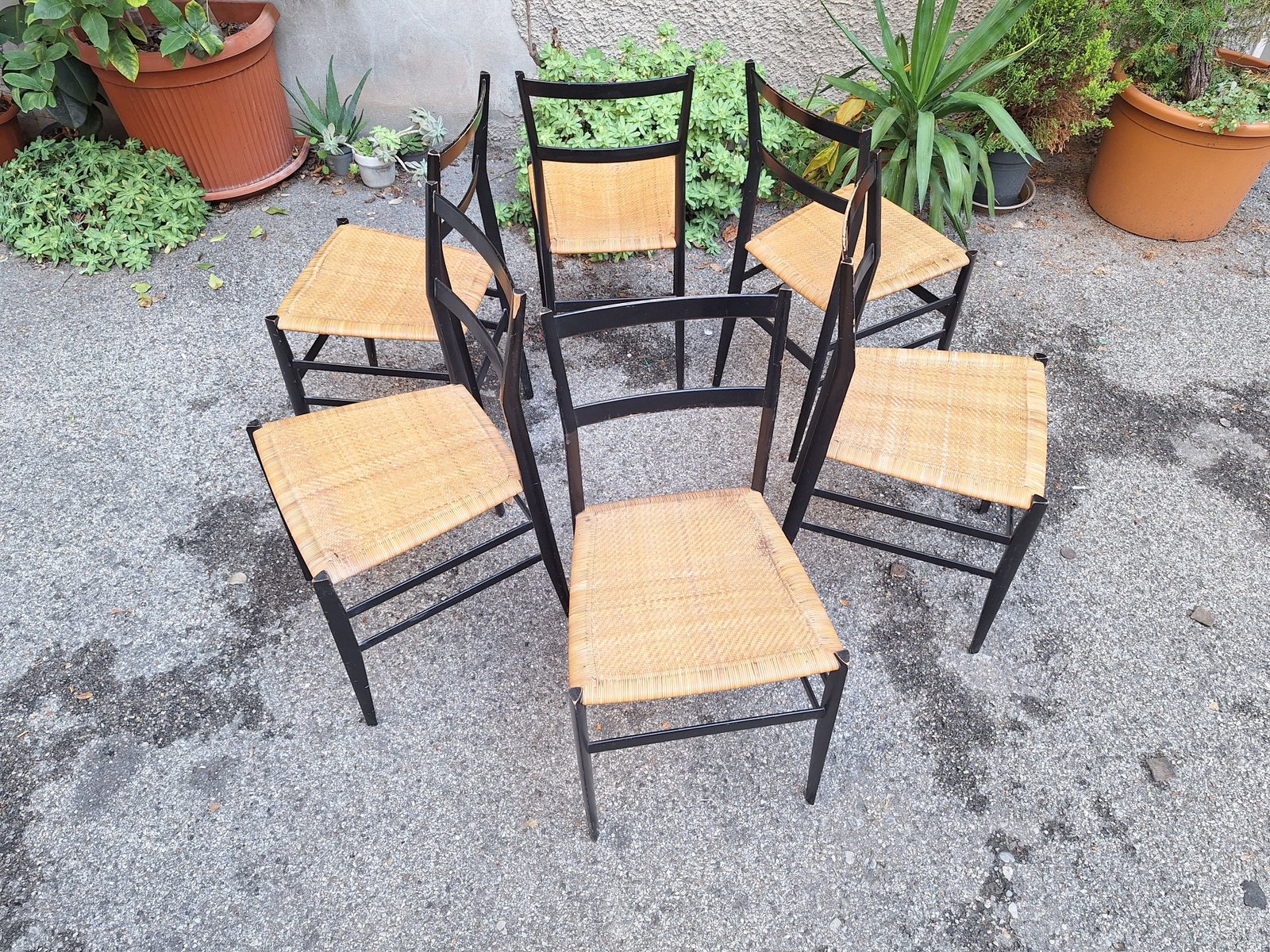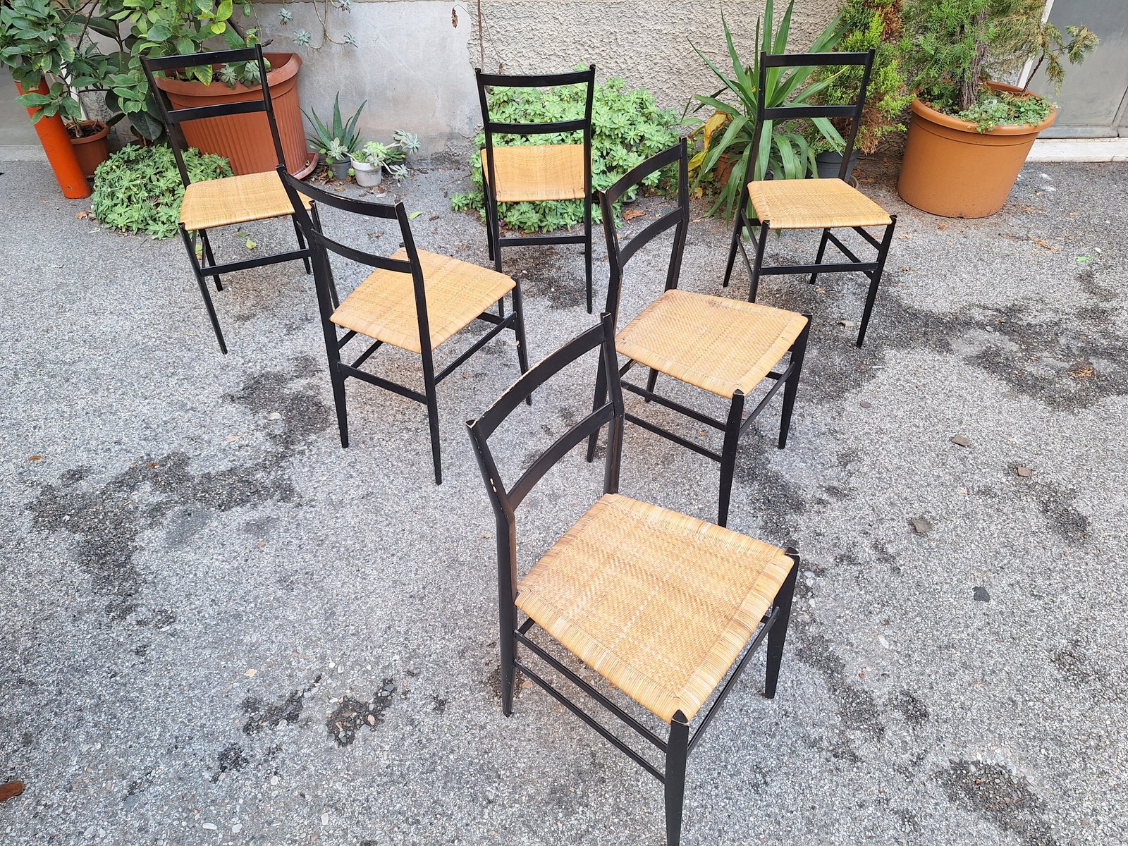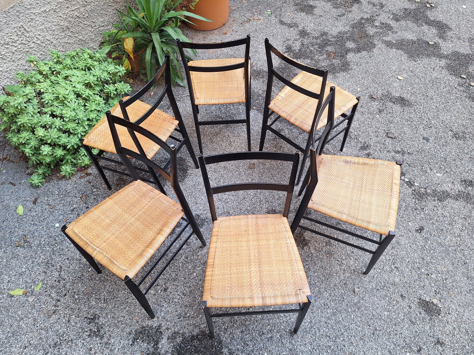 Schwarze Superleggera Stühle mit Sitz aus Stroh von Gio Ponti für Cassina, 1950er, 6er Set