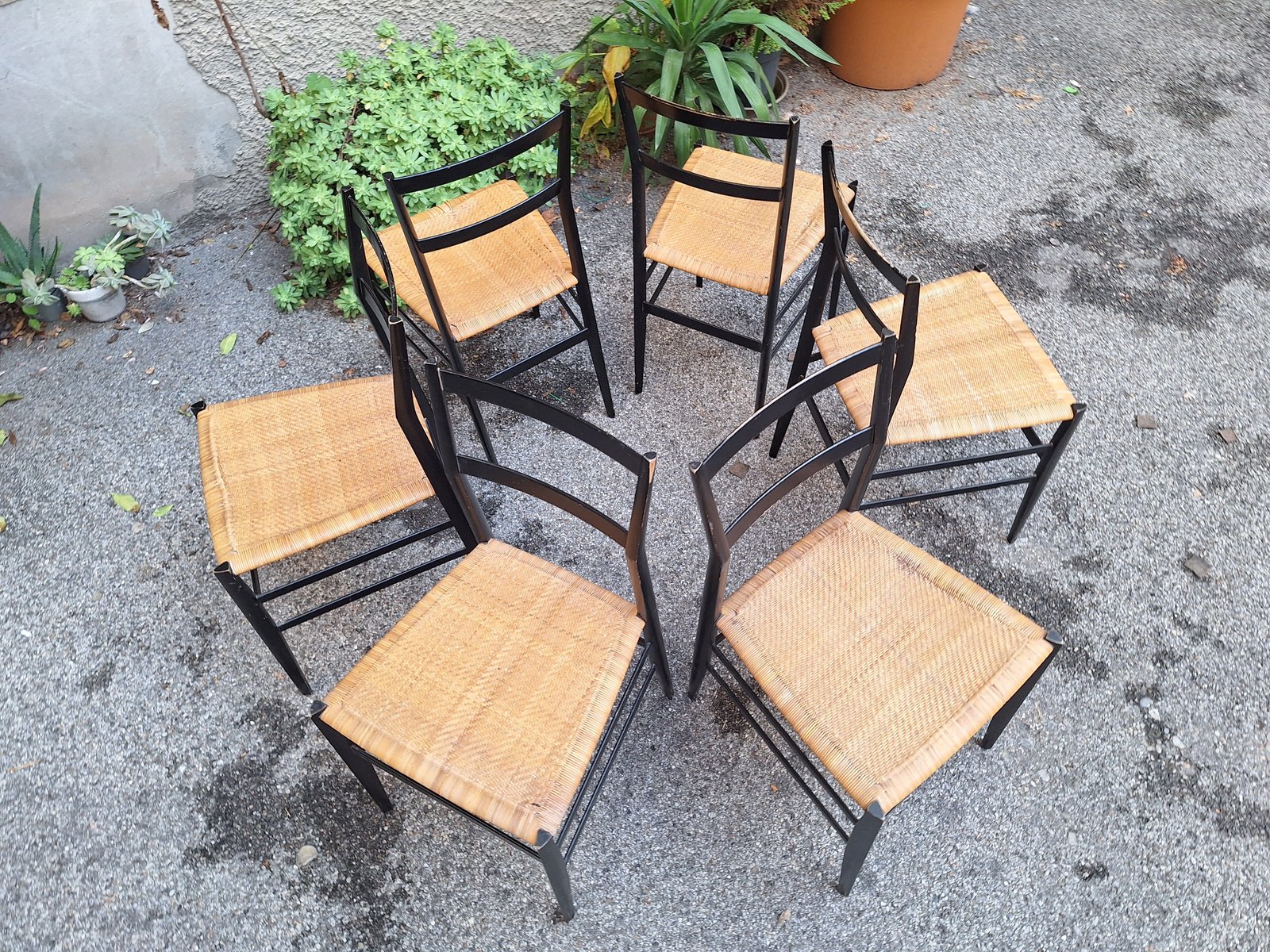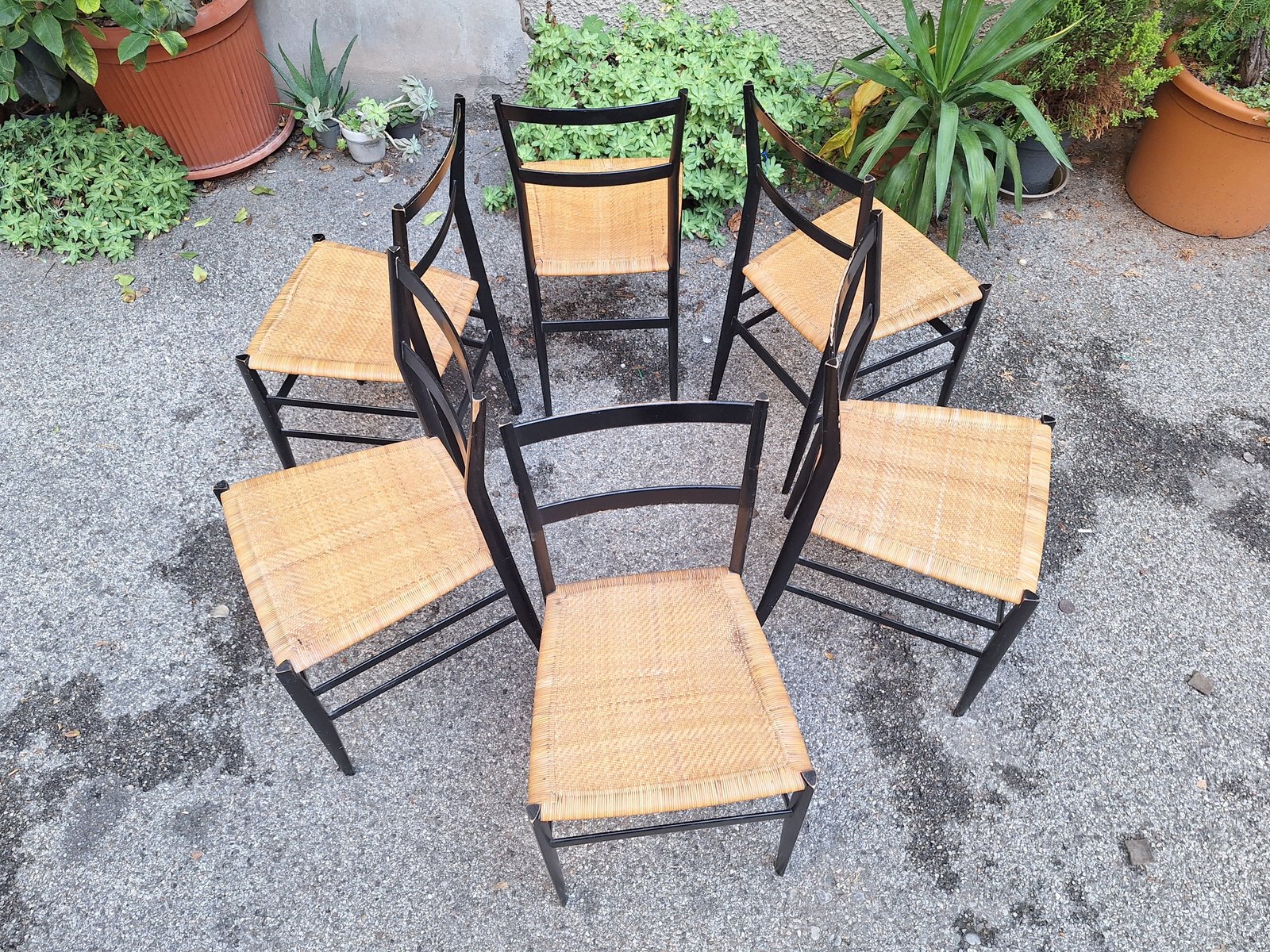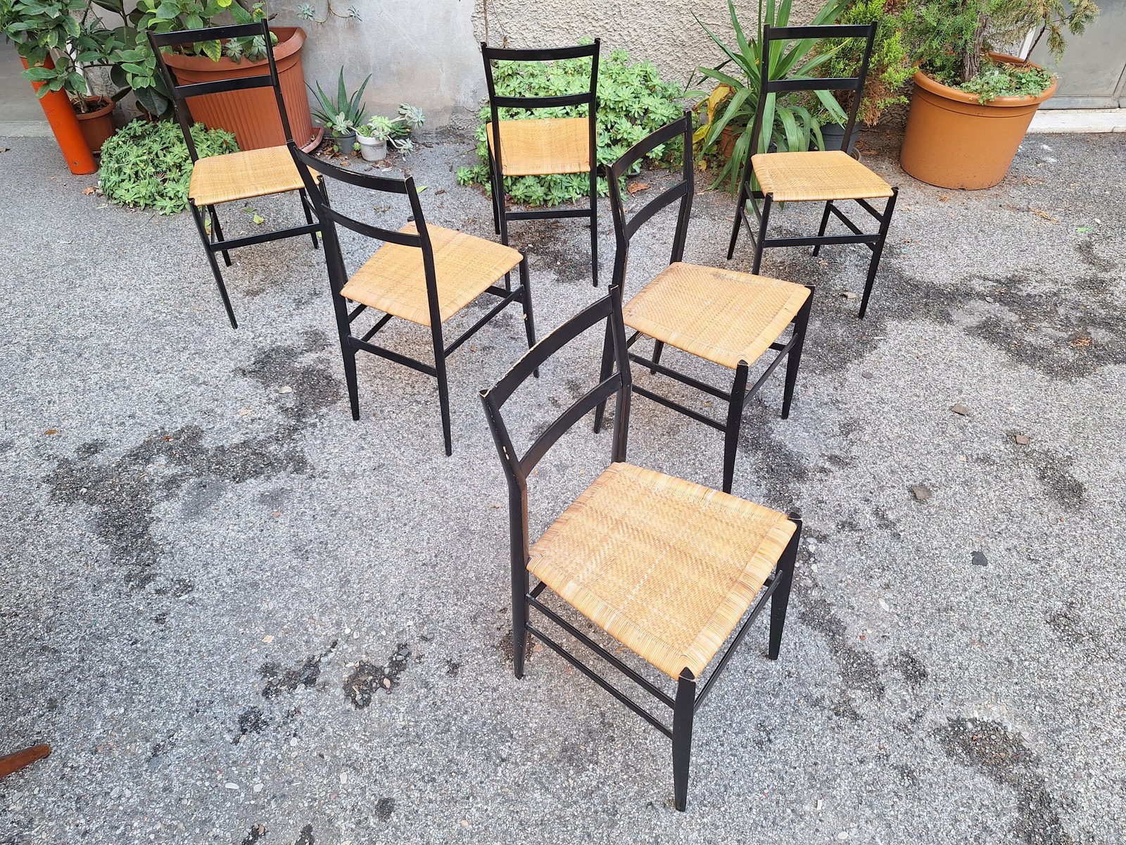 Schwarze Superleggera Stühle mit Sitz aus Stroh von Gio Ponti für Cassina, 1950er, 6er Set