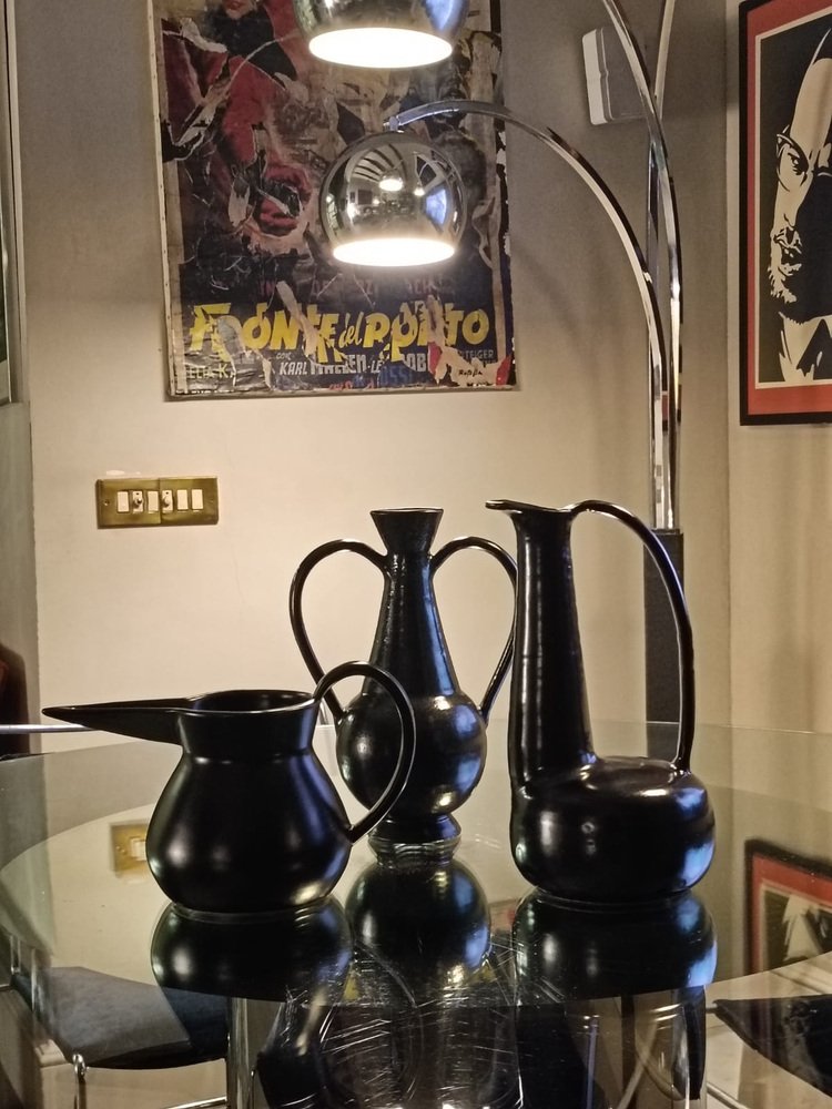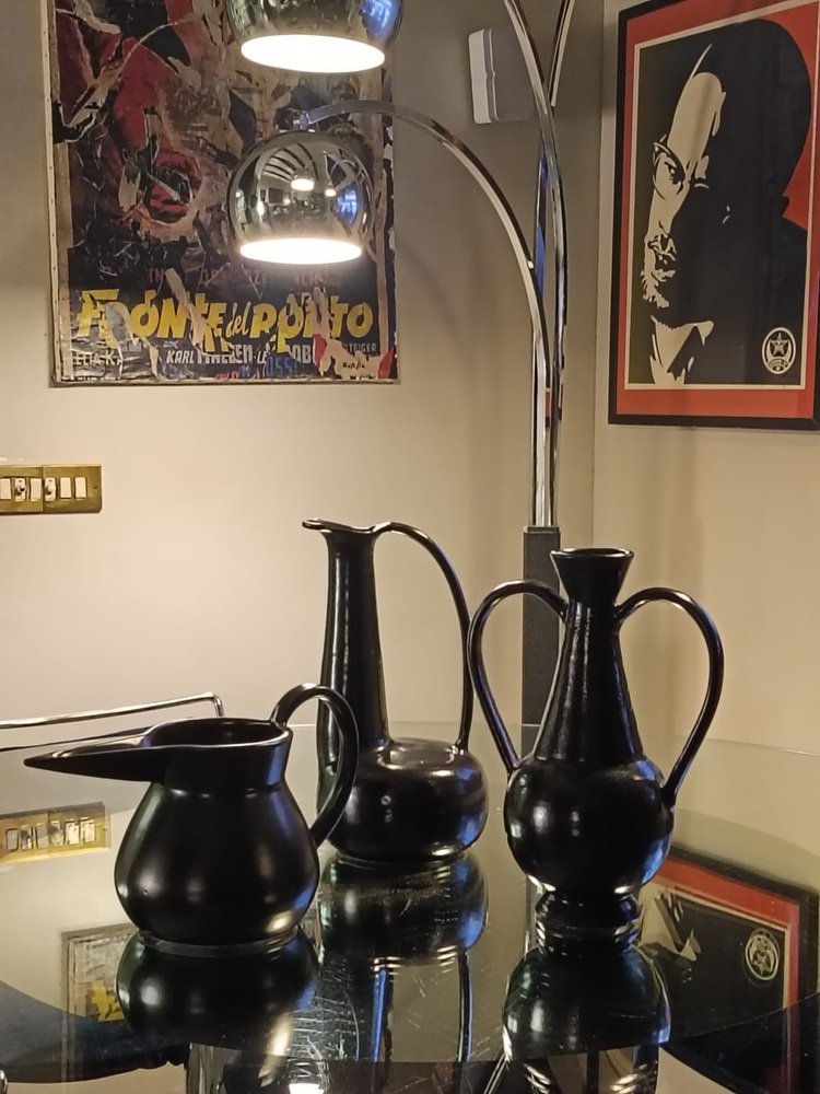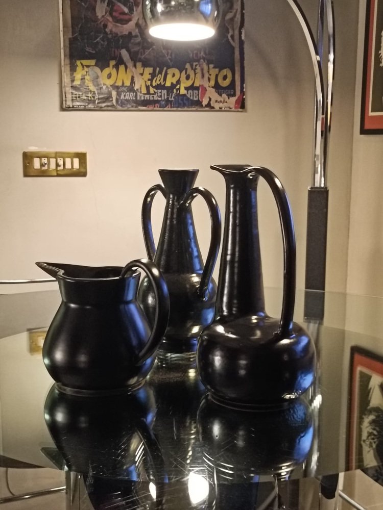 Schwarzer Bucchero Keramikkrug von Gio Ponti für Costantino, Italien, 1998