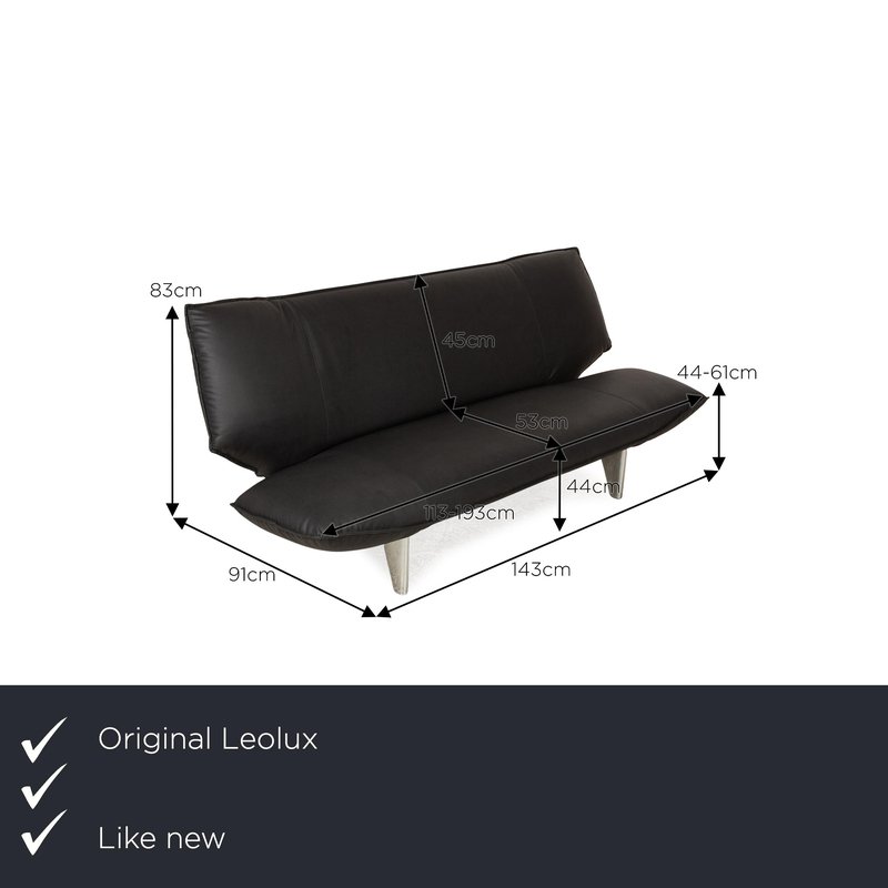 Schwarzes Tango 2-Sitzer Ledersofa von Leolux