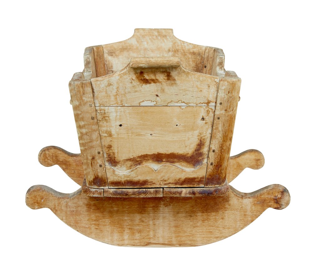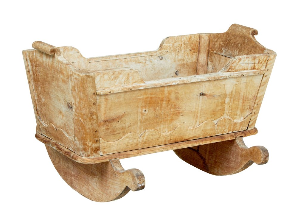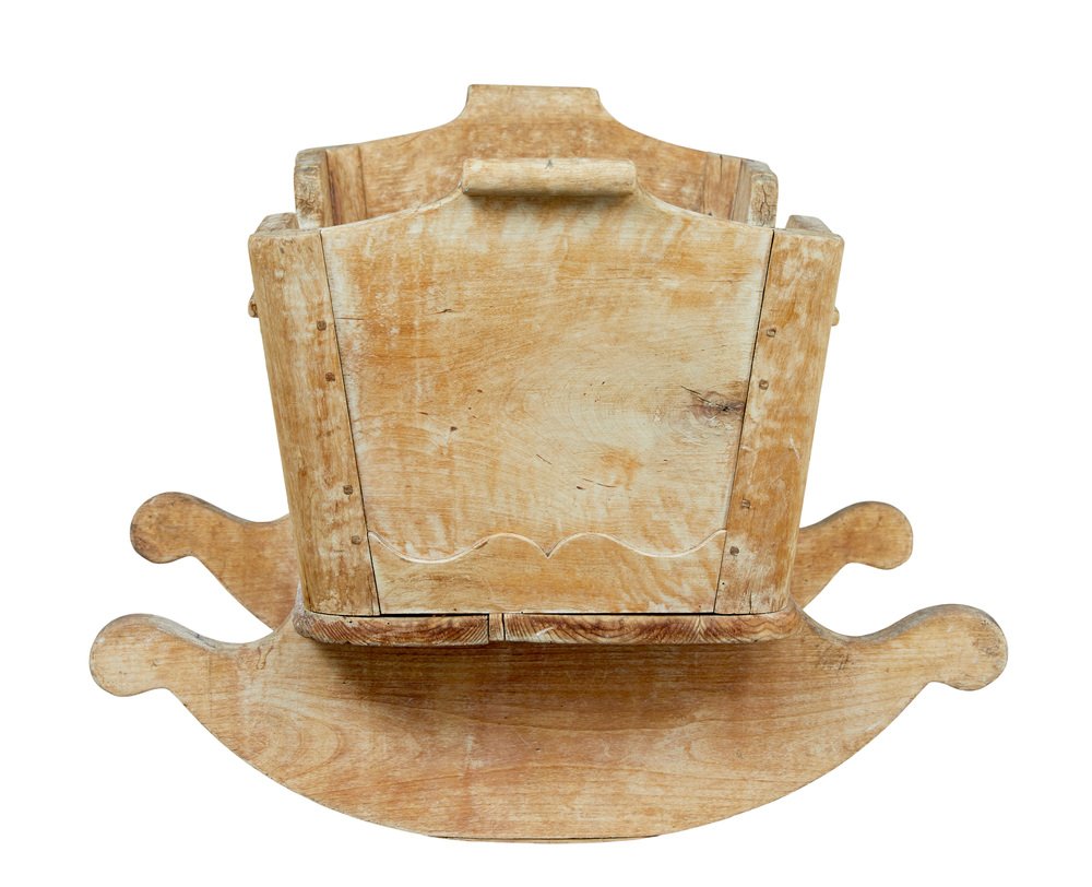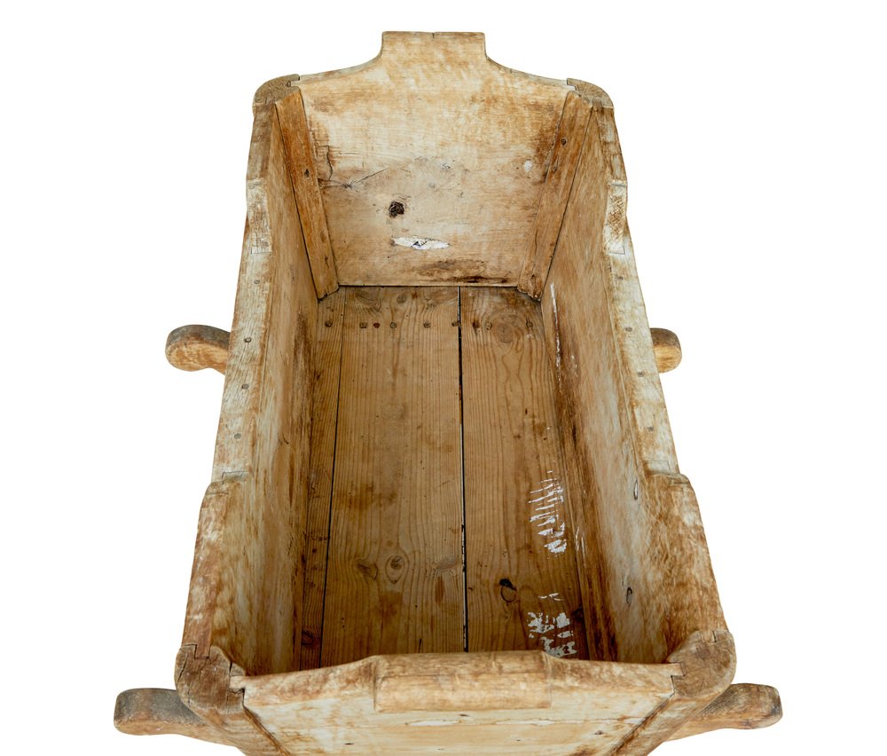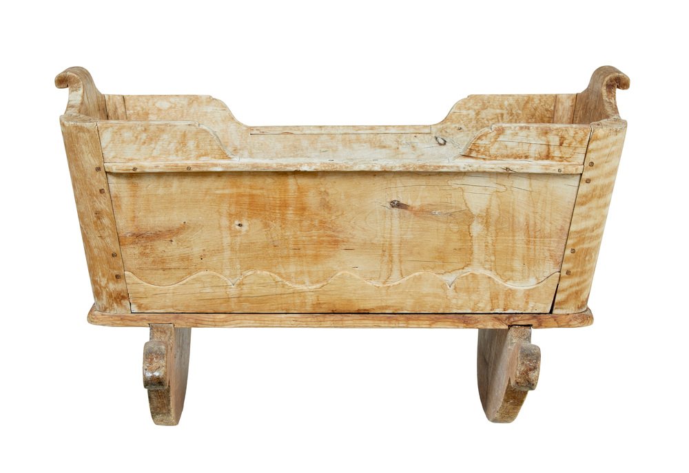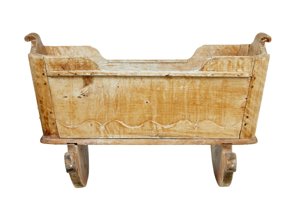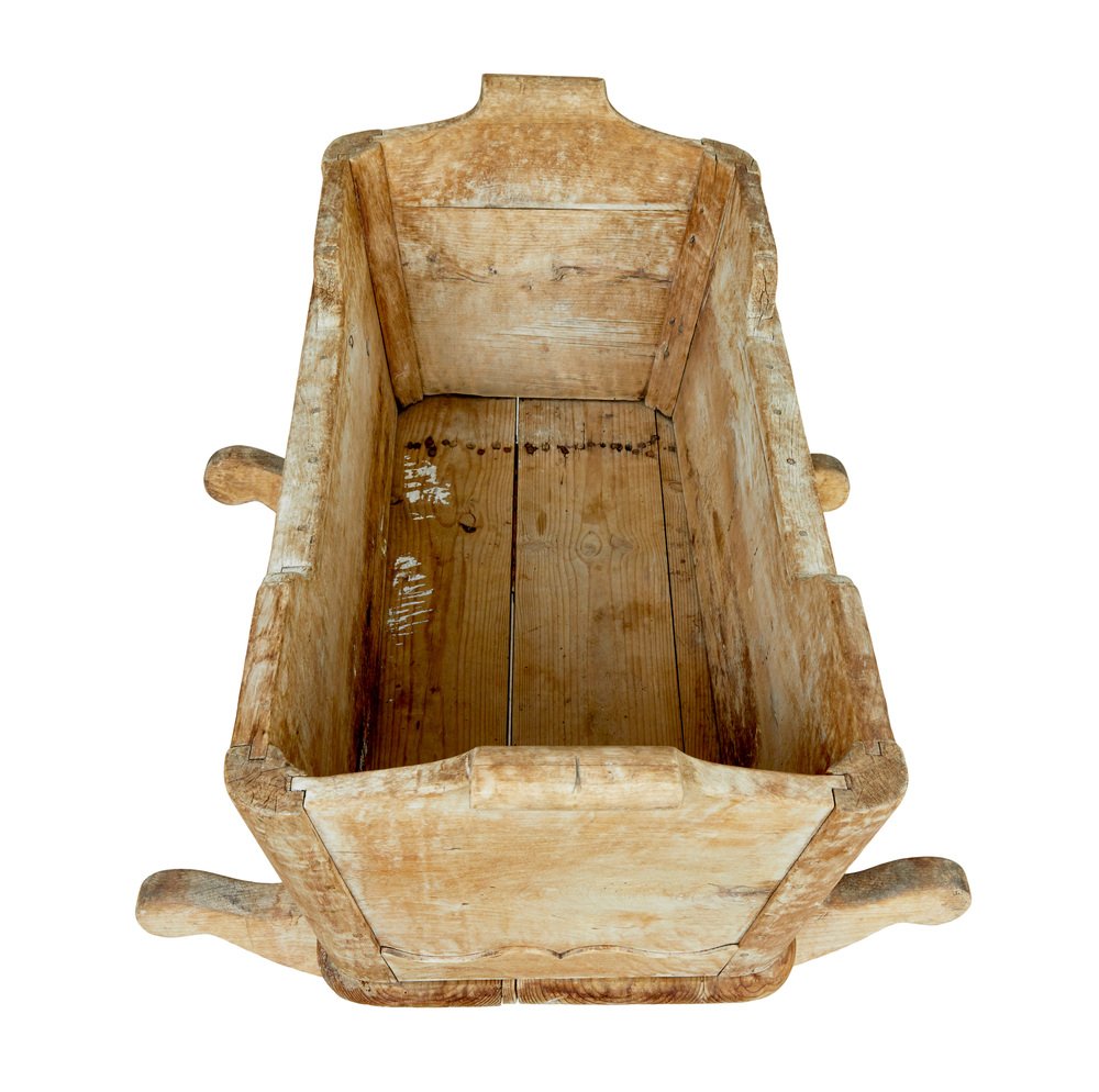 Schwedische geschnitzte Wiege aus Kiefernholz, Mitte 19. Jh., 1840er