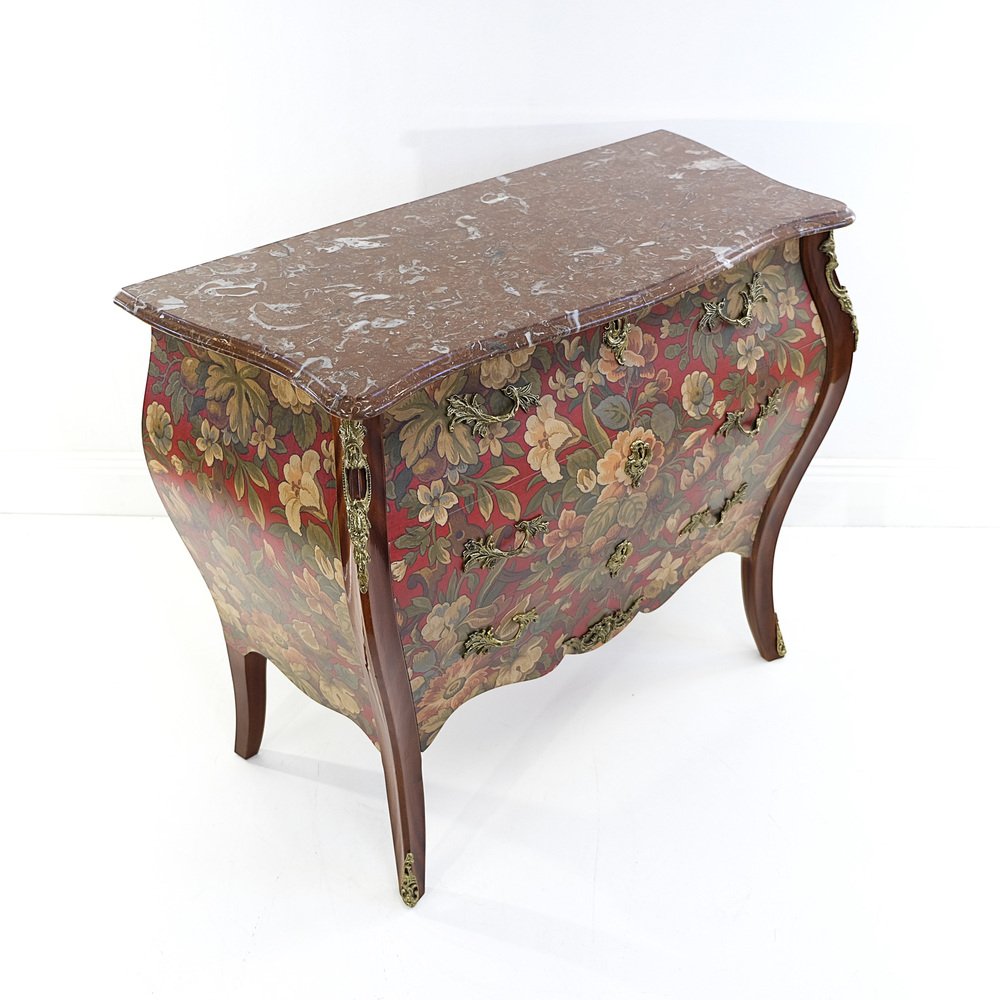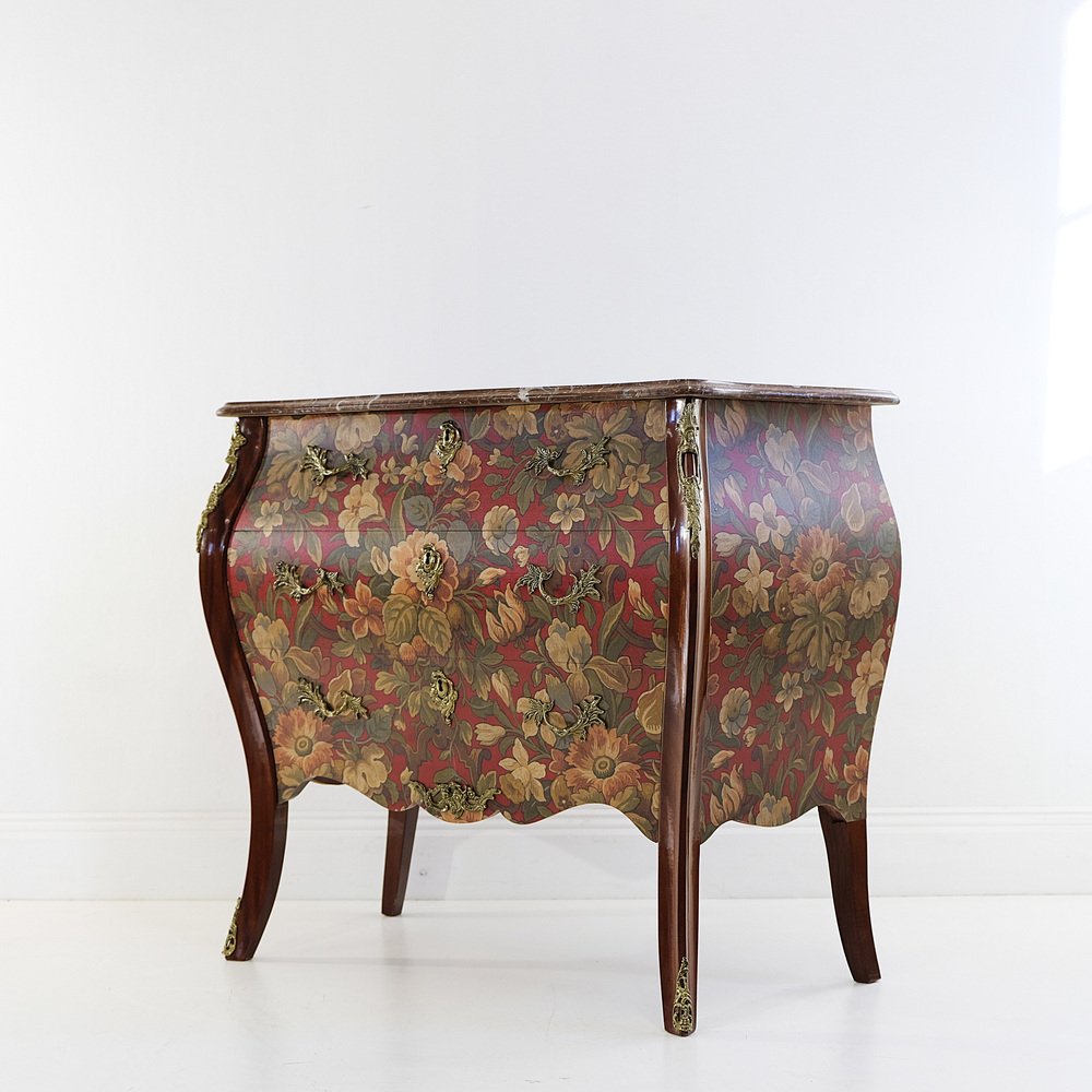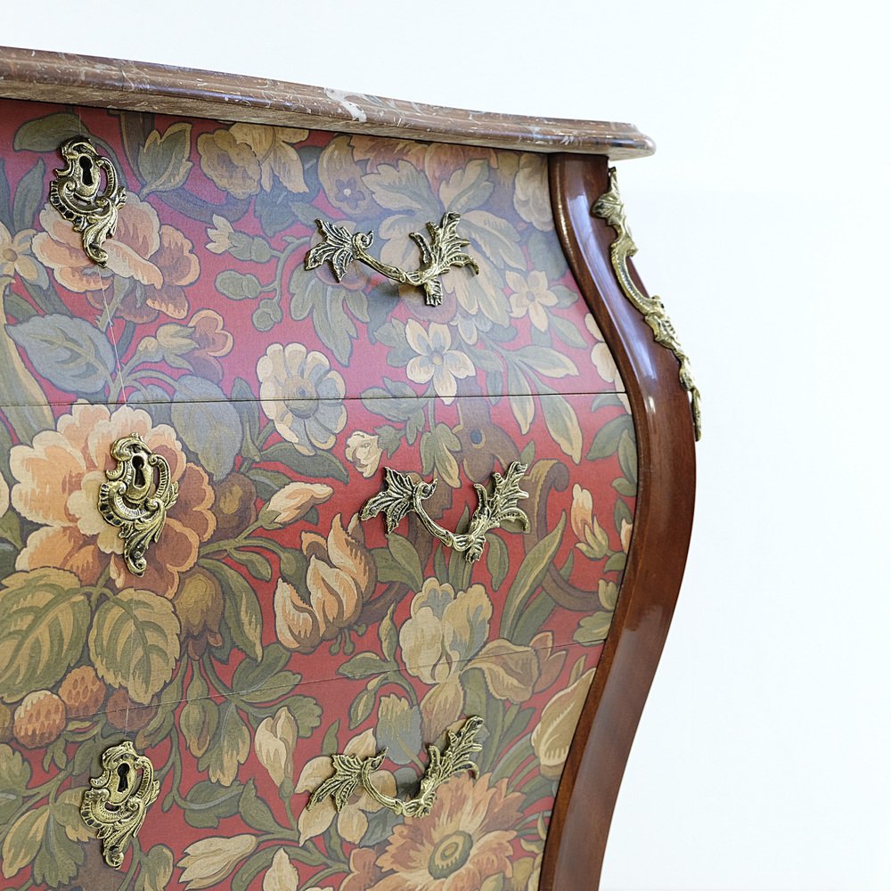 Schwedische Vintage Rokoko Kommode mit roten Marmorplatten & Messingdetails, 1950er