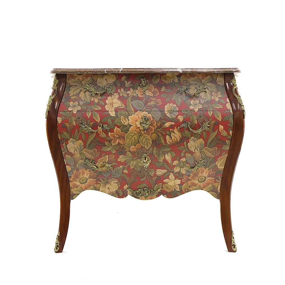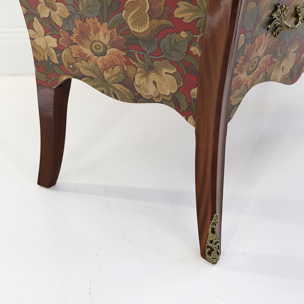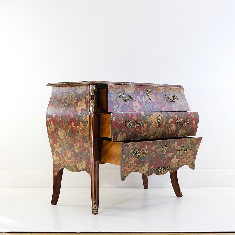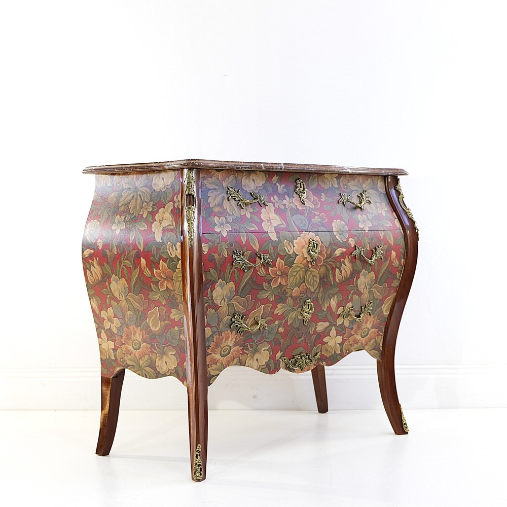 Schwedische Vintage Rokoko Kommode mit roten Marmorplatten & Messingdetails, 1950er