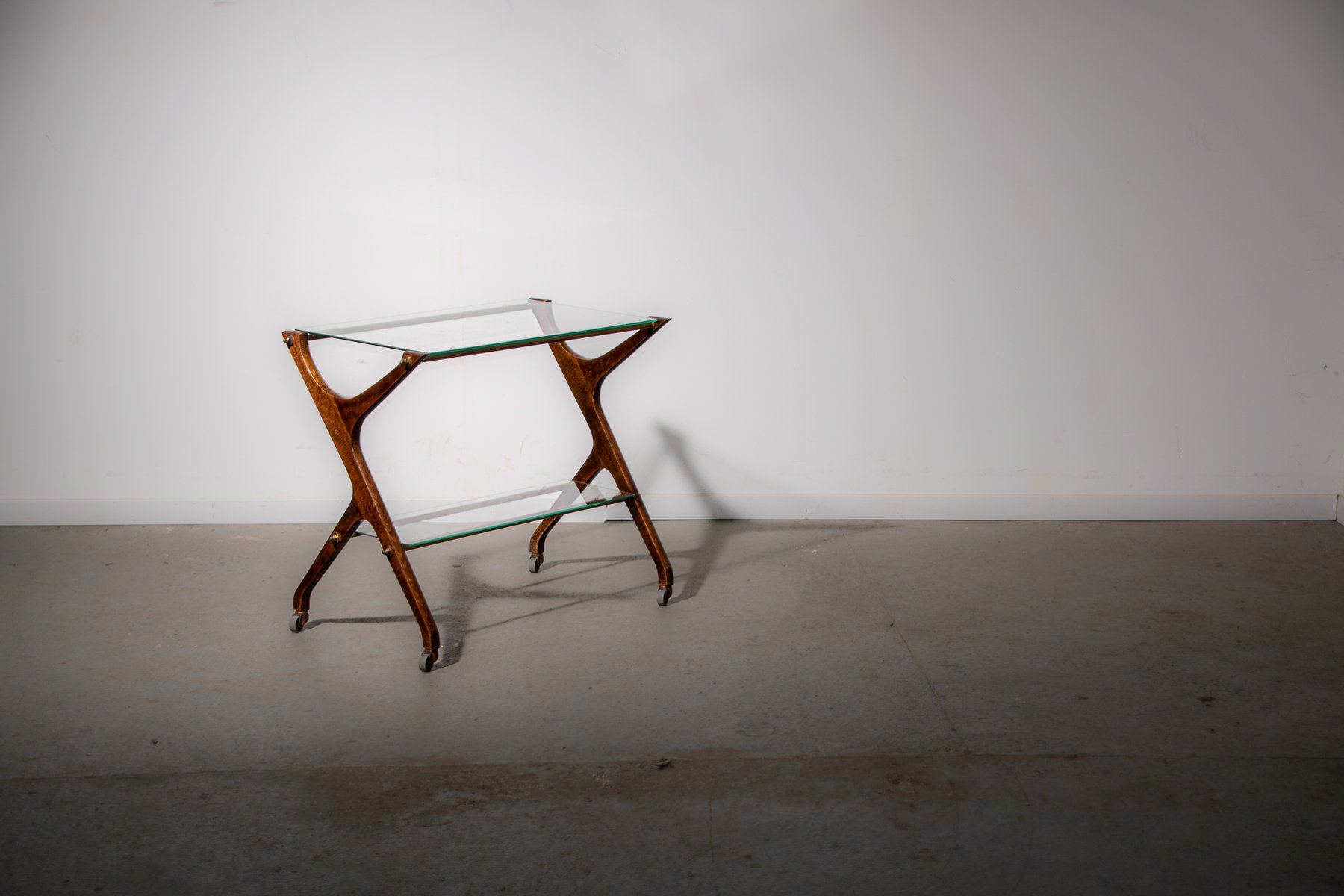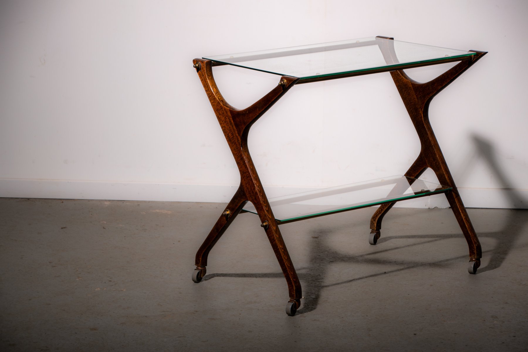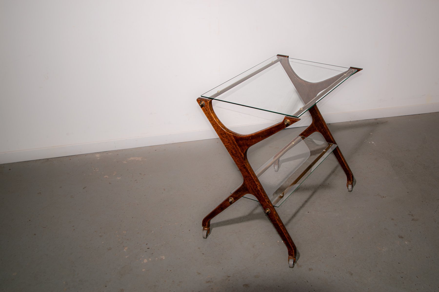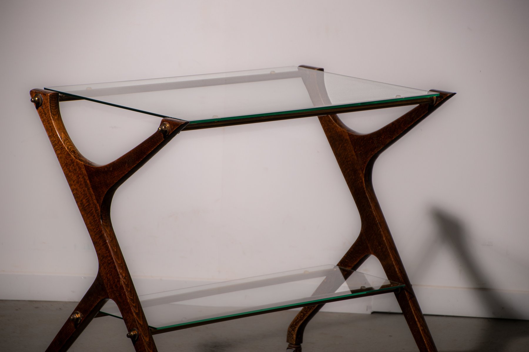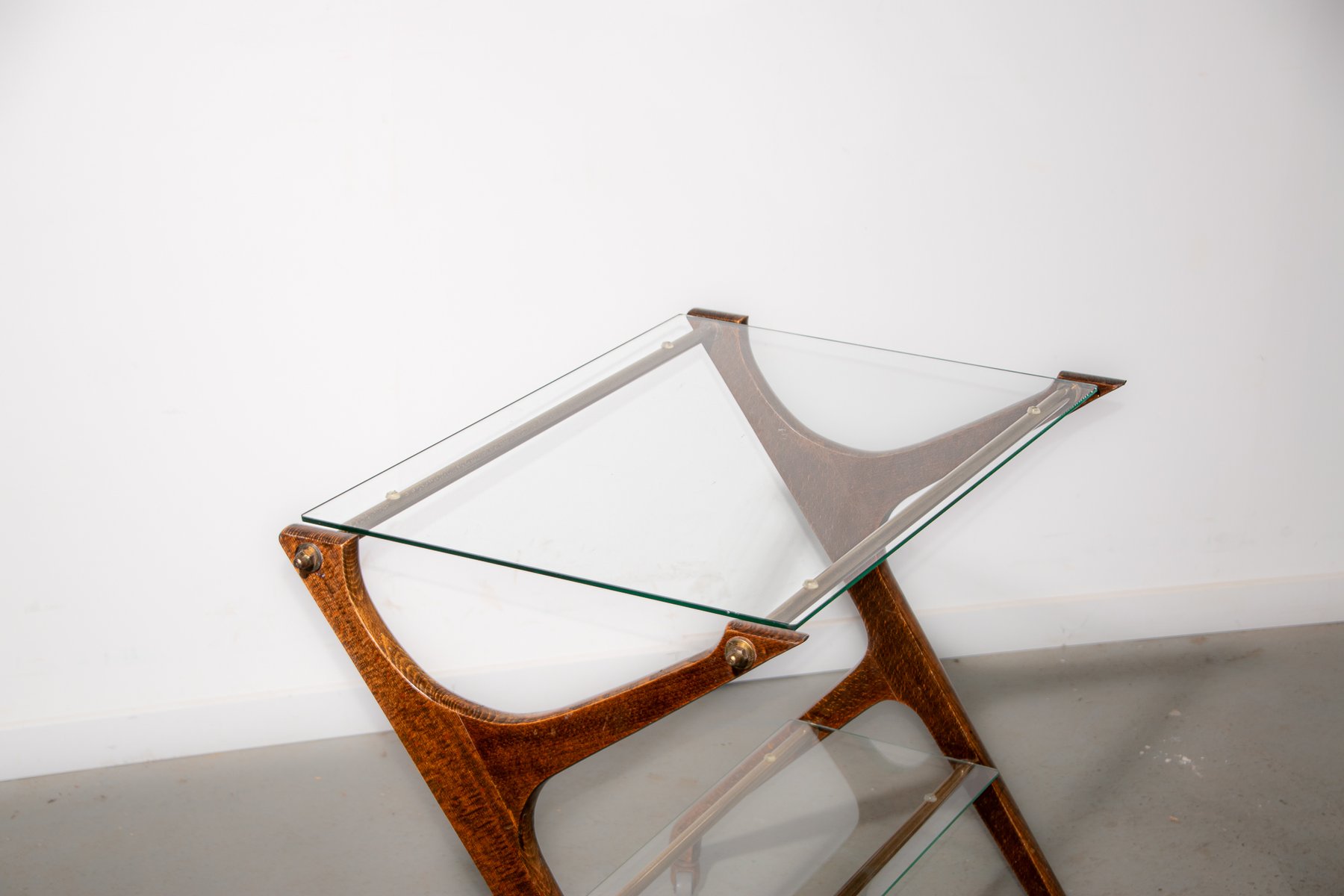 Servierwagen aus Messing & Glas aus Eiche, 1970er