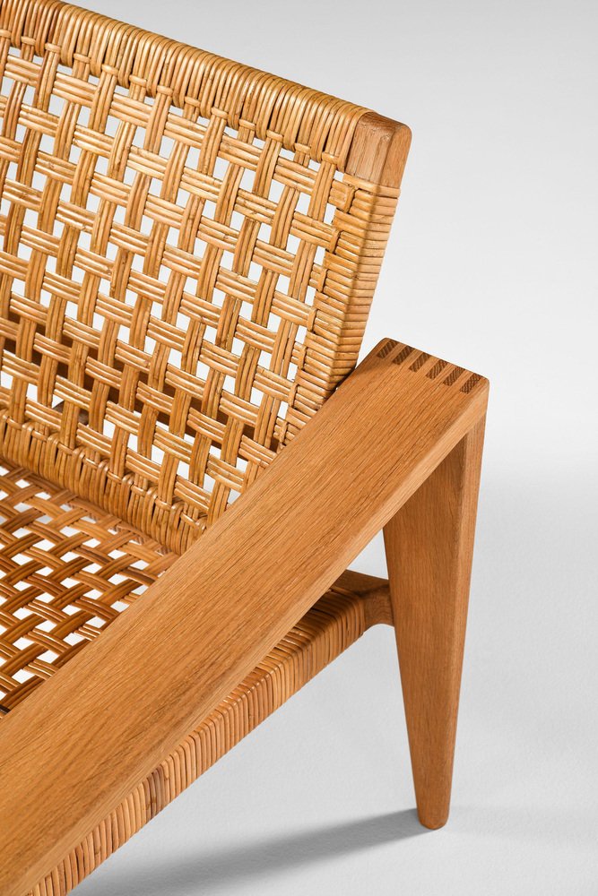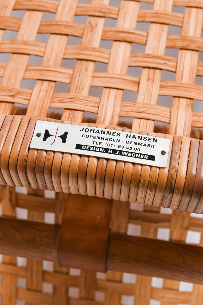 Hans Wegner zugeschriebener Couchtisch aus Eiche & gewebtem Rohrgeflecht, 1950er