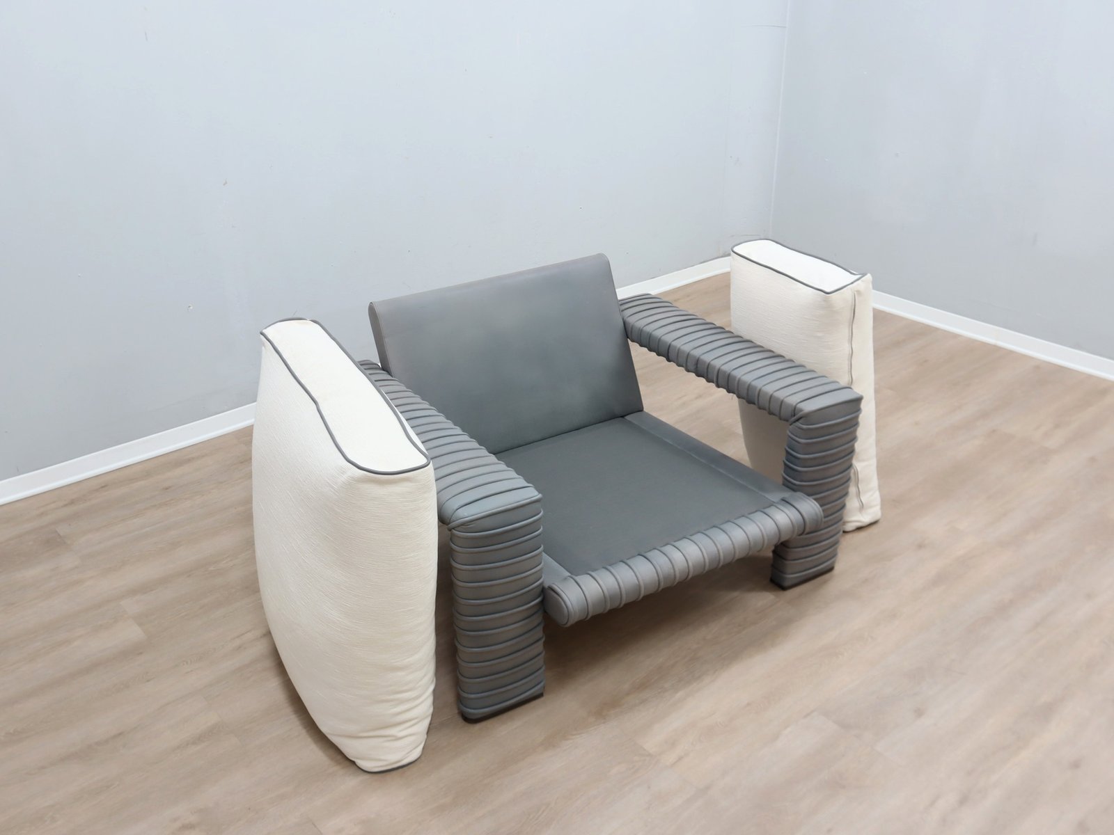 This sculptural armchair by Marzio Cecchi captures the spirit of 1970s Italian design in a more compact yet equally striking form. The ribbed leather structure features a rich, aged patina, testifying to its authenticity and artisanal heritage.