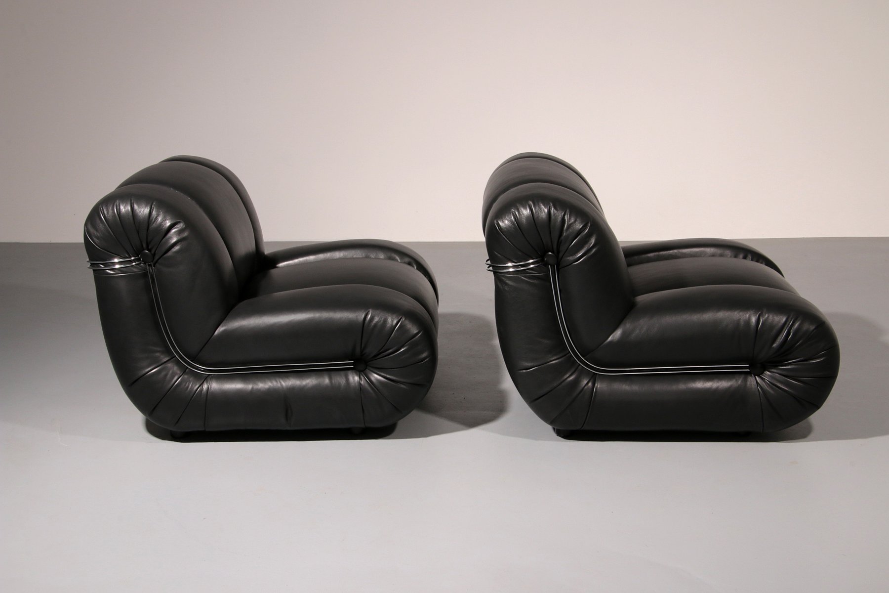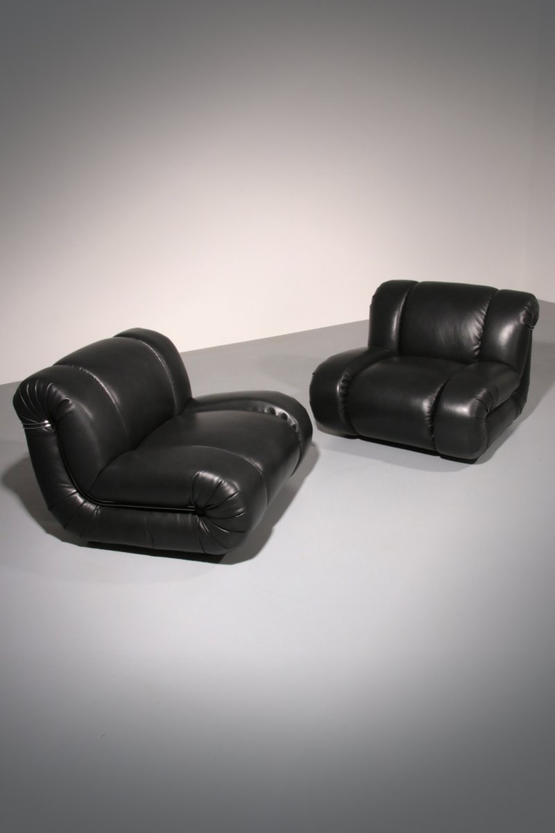 Sessel aus schwarzem Leder von Mimo Padova, 1970, 2er Set