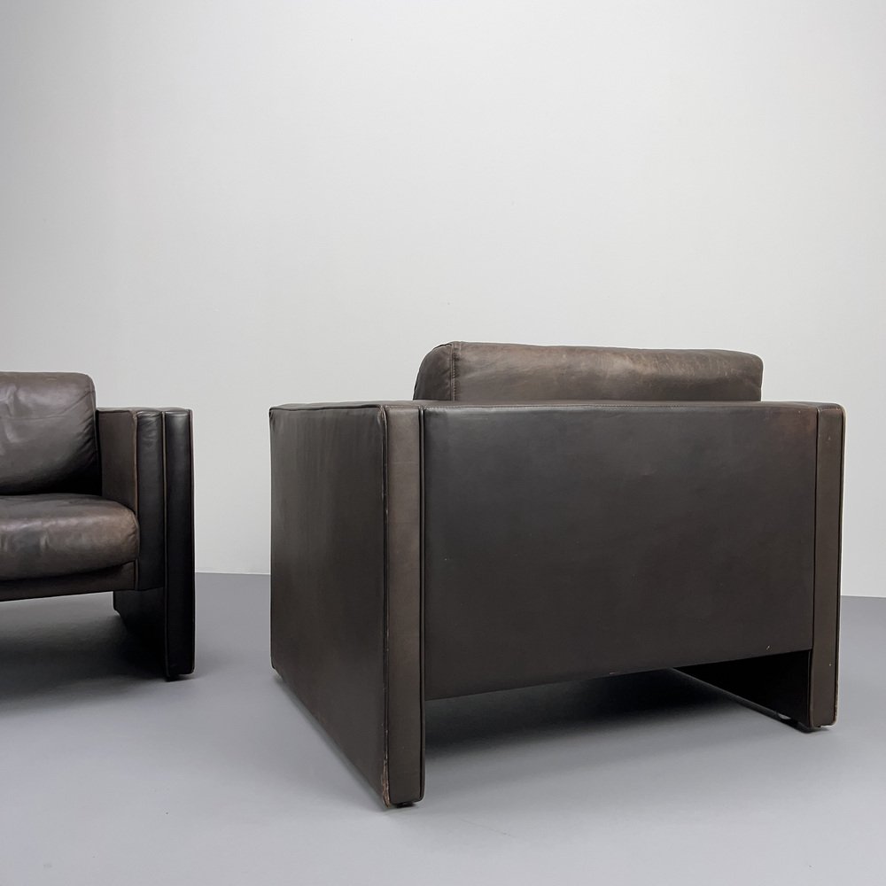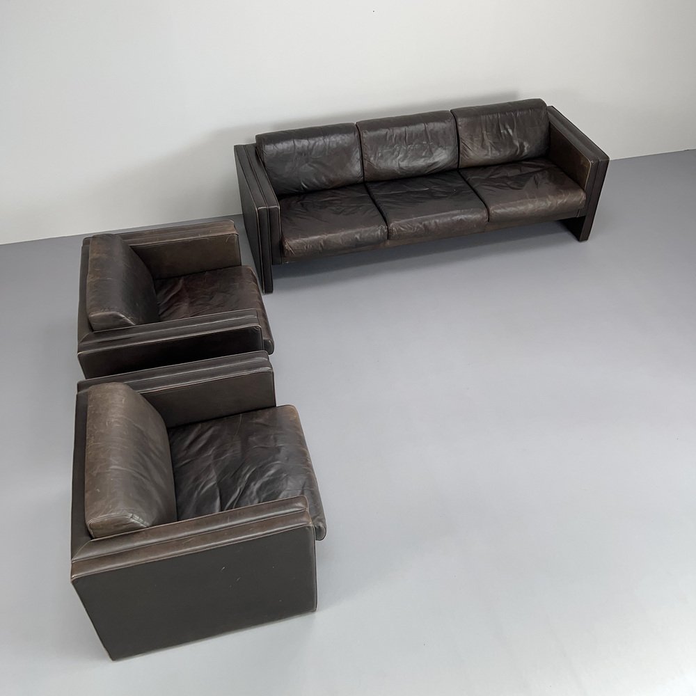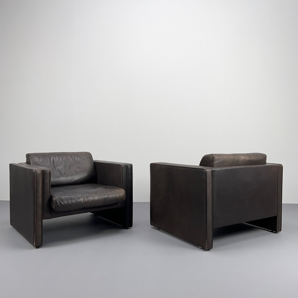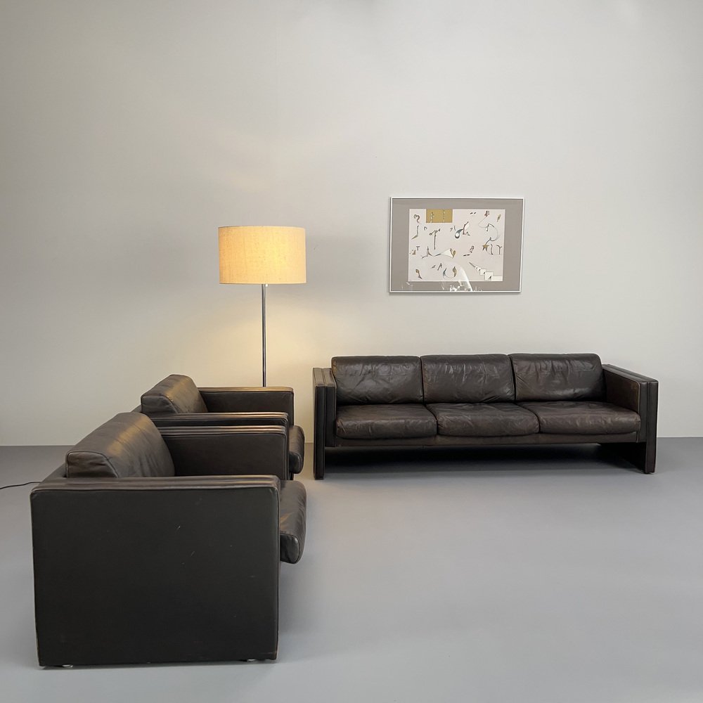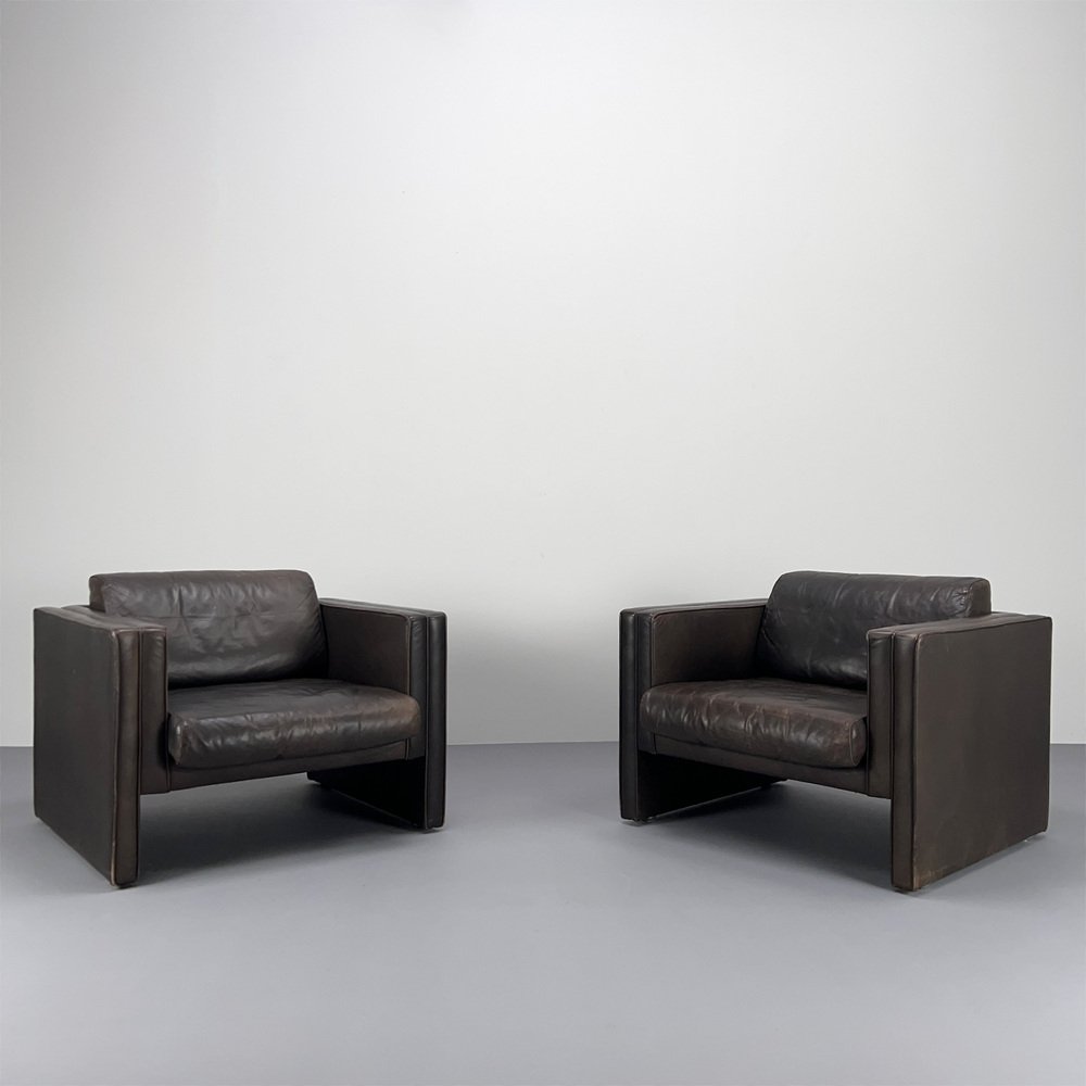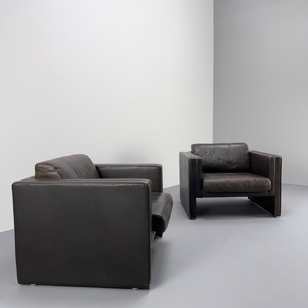 Set aus Dunkelbraunen Ledersesseln von Jürgen Lange für Walter Knoll, Deutschland, 1970er