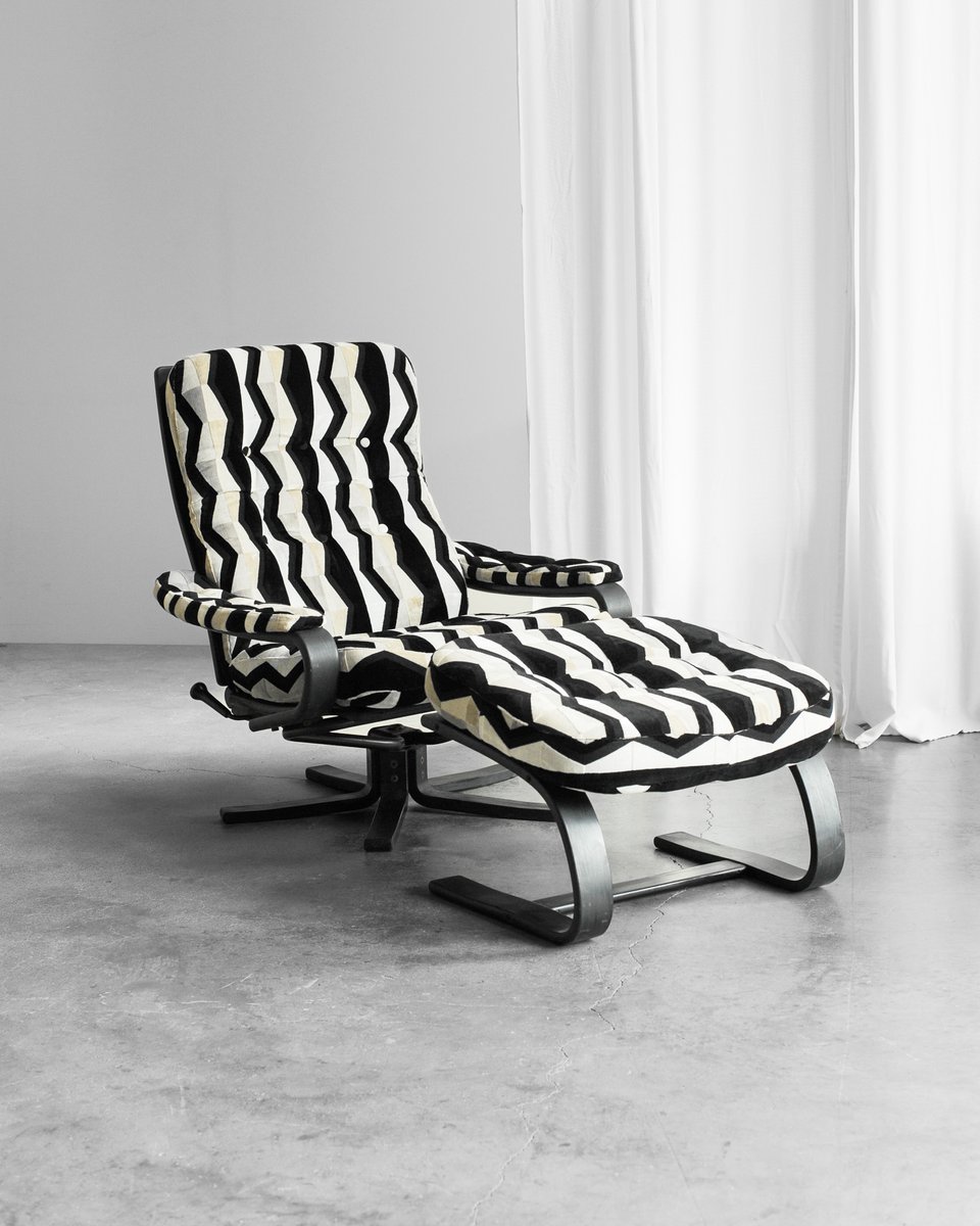 Italienischer Lehnsessel mit Ottomane, 1970er, 2er Set