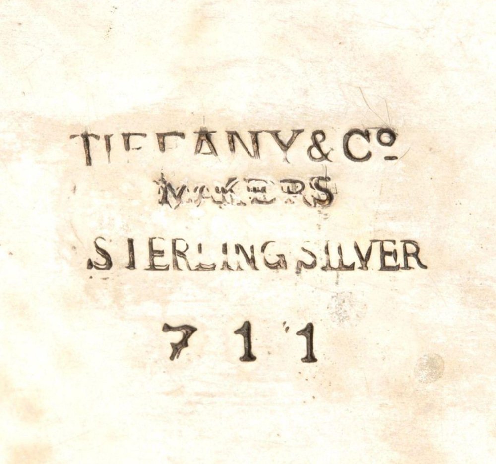 Ein exquisites Milchkännchen des berühmten Juwelierhauses Tiffany & Co. in Form eines Fisches mit einem eleganten, als Schwanz stilisierten Henkel. Das zwischen 1947 und 1965 hergestellte Milchkännchen ist ein großartiges Beispiel amerikanischer Silberkunst der Nachkriegszeit. Seine einzigartige Form und seine anmutigen Linien spiegeln den charakteristischen Tiffany-Stil jener Zeit wider, der Elemente des Jugendstils mit einer Betonung von Naturmotiven und der für die Mitte des 20. Jahrhunderts charakteristischen neoklassischen Moderne verbindet. Auf der Unterseite des Produkts ist die Punze "TIFFANY & CO. MAKERS - STERLING" gestempelt. Die Produktnummer 711 entspricht der Herstellungszeit des Modells im Jahr 1856 und weist auf die Echtheit und die hohe Qualität der Verarbeitung aus 925er Sterlingsilber hin. Abmessungen: Höhe 6,5 cm, Breite 13,3 cm, Tiefe 5 cm. Gewicht: 156,7 g. Dieses seltene Sammlerstück ist eine großartige Ergänzung zu einer antiken Sammlung oder ein exquisites Element für den gedeckten Tisch, das den prestigeträchtigen Stil unterstreicht und die authentische Ästhetik von Tiffany & Co. in die Einrichtung bringt.