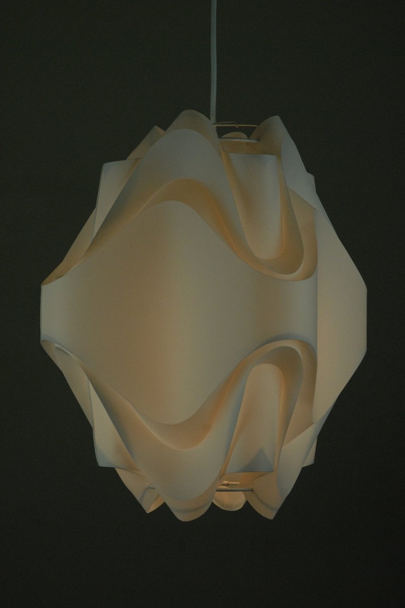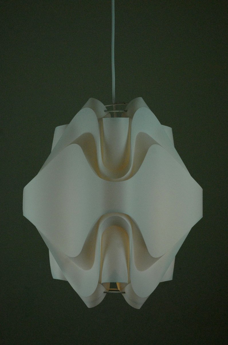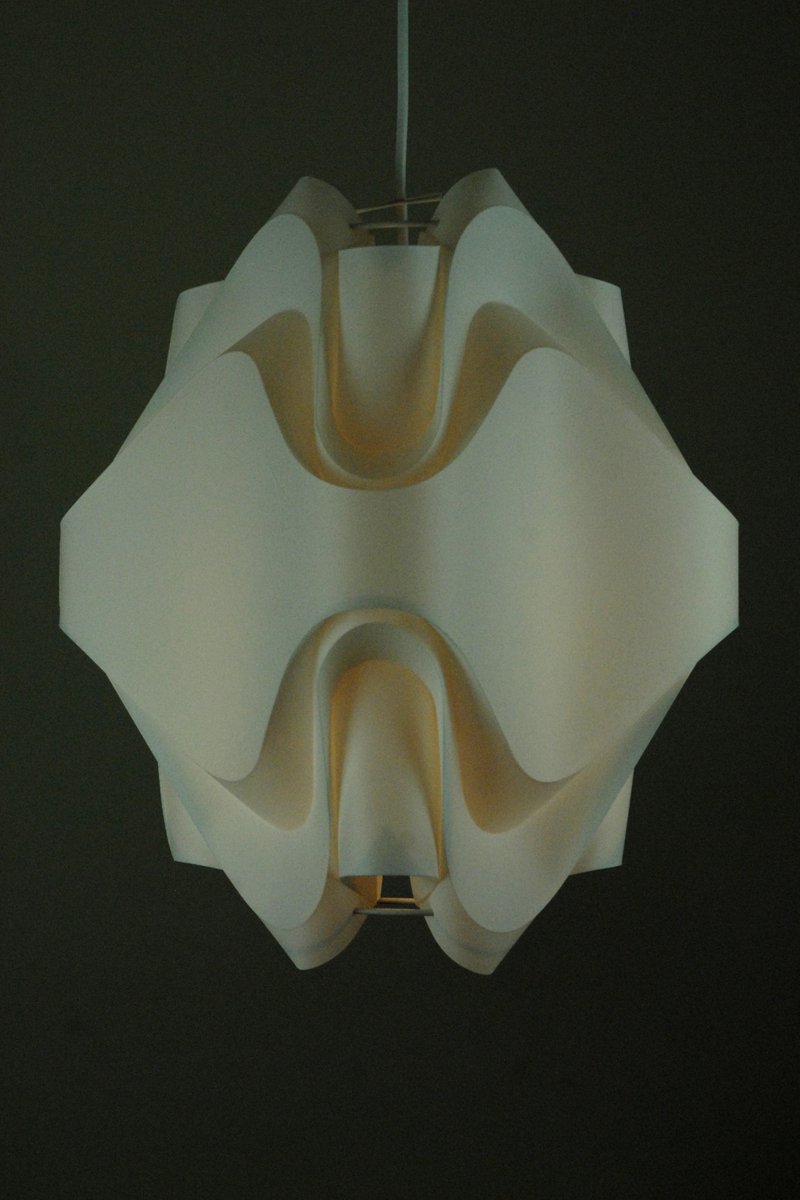 The Sinus Line 170 Pendant Lamp represents a radical departure in the history of Danish lighting design. Conceived in 1967 by a young architecture student, the lamp was the first from Le Klint to forgo pleated paper in favor of a revolutionary hand-folded PVC foil, forming a mathematically inspired structure based on sinusoids, ellipses, parabolas, and hyperbolas.