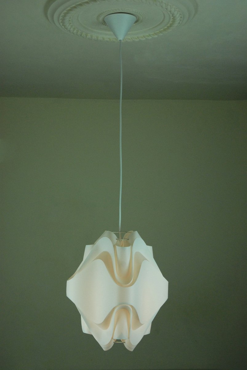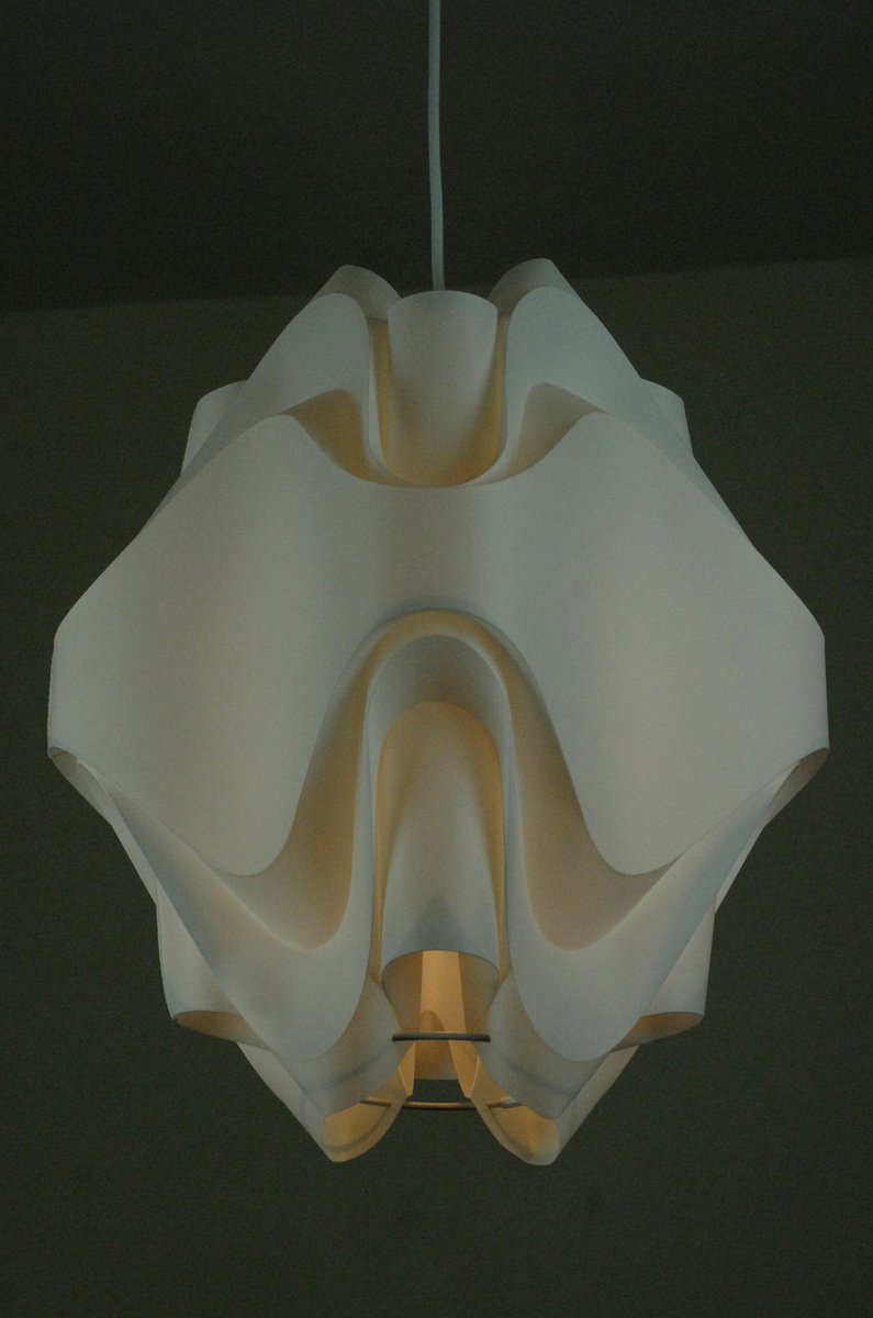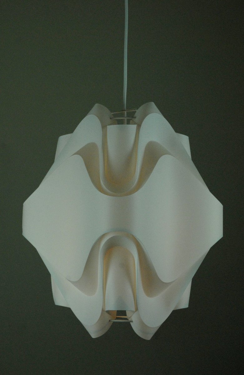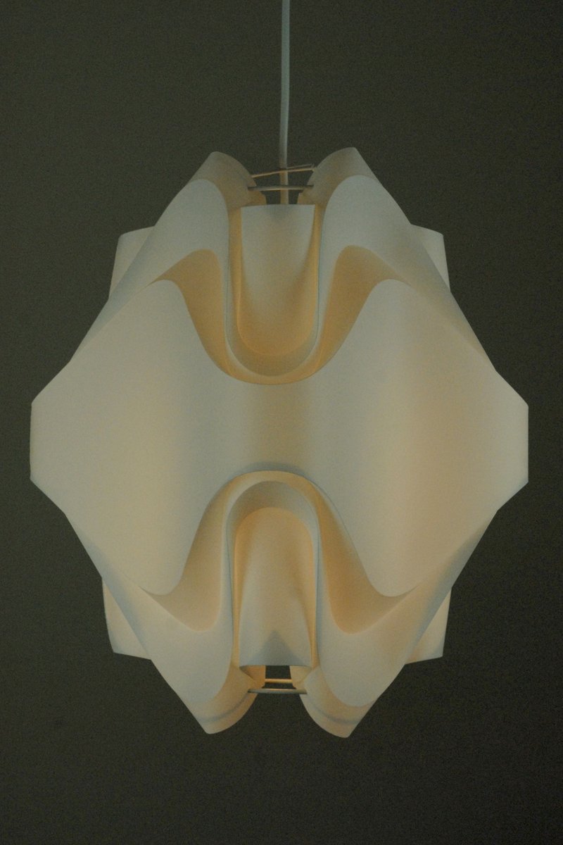 The Sinus Line 170 Pendant Lamp represents a radical departure in the history of Danish lighting design. Conceived in 1967 by a young architecture student, the lamp was the first from Le Klint to forgo pleated paper in favor of a revolutionary hand-folded PVC foil, forming a mathematically inspired structure based on sinusoids, ellipses, parabolas, and hyperbolas.