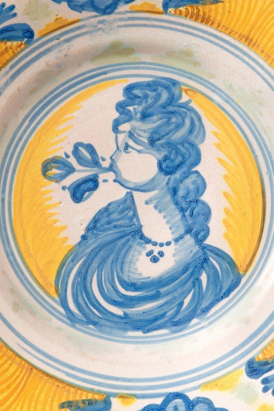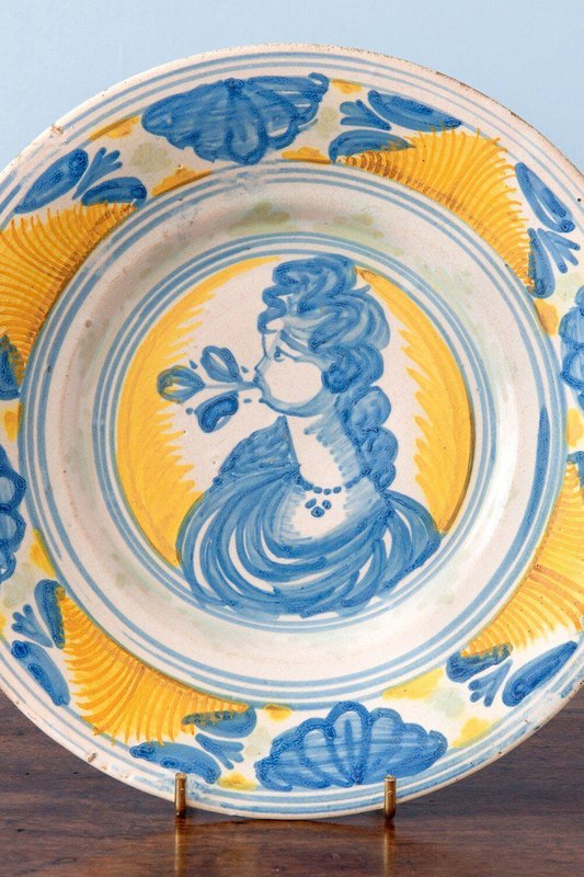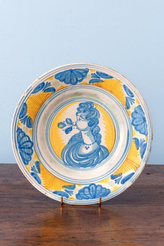 Sizilianische Maiolica Schale mit Frau, 1600er