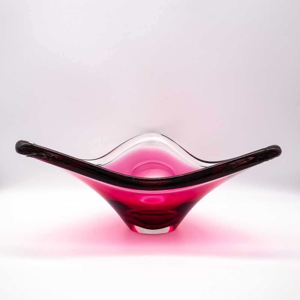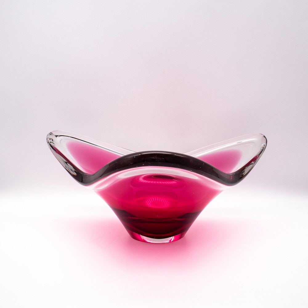 Skandinavische Glasschale in Rosa von Paul Kedelv für Flygfors, 1960er