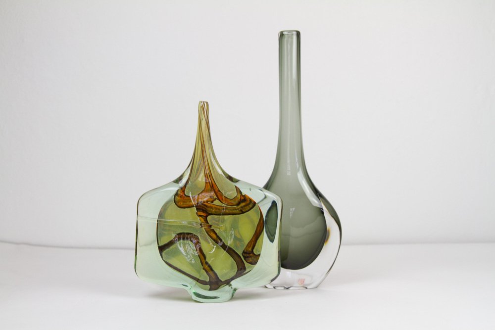 Skandinavische moderne Glasvase von Nils Landberg für Orrefors, 1950er