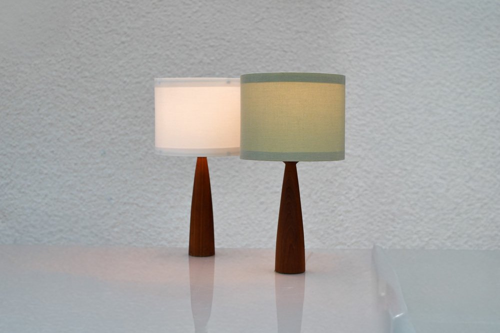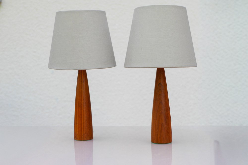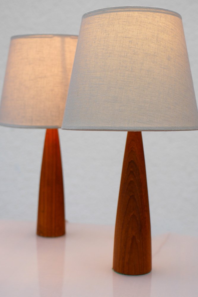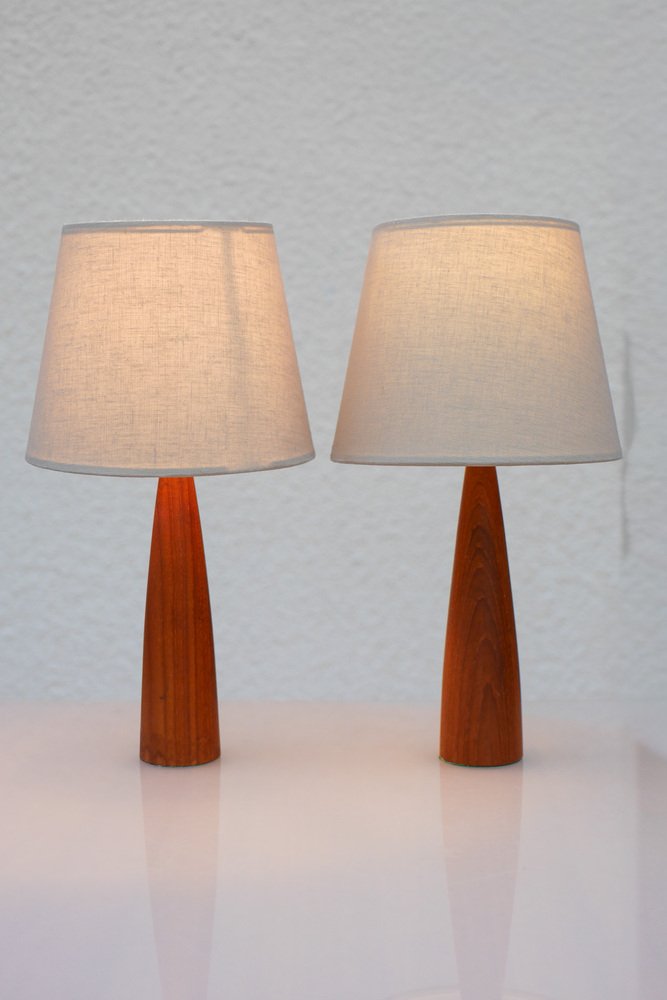 Paar skandinavische Teakholz-Tischlampen von Möllers Armatur, Schweden, 1960er Jahre