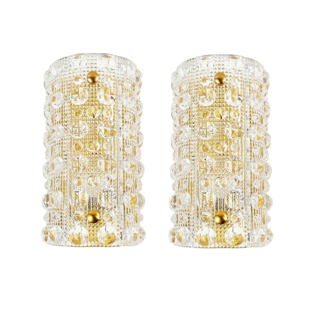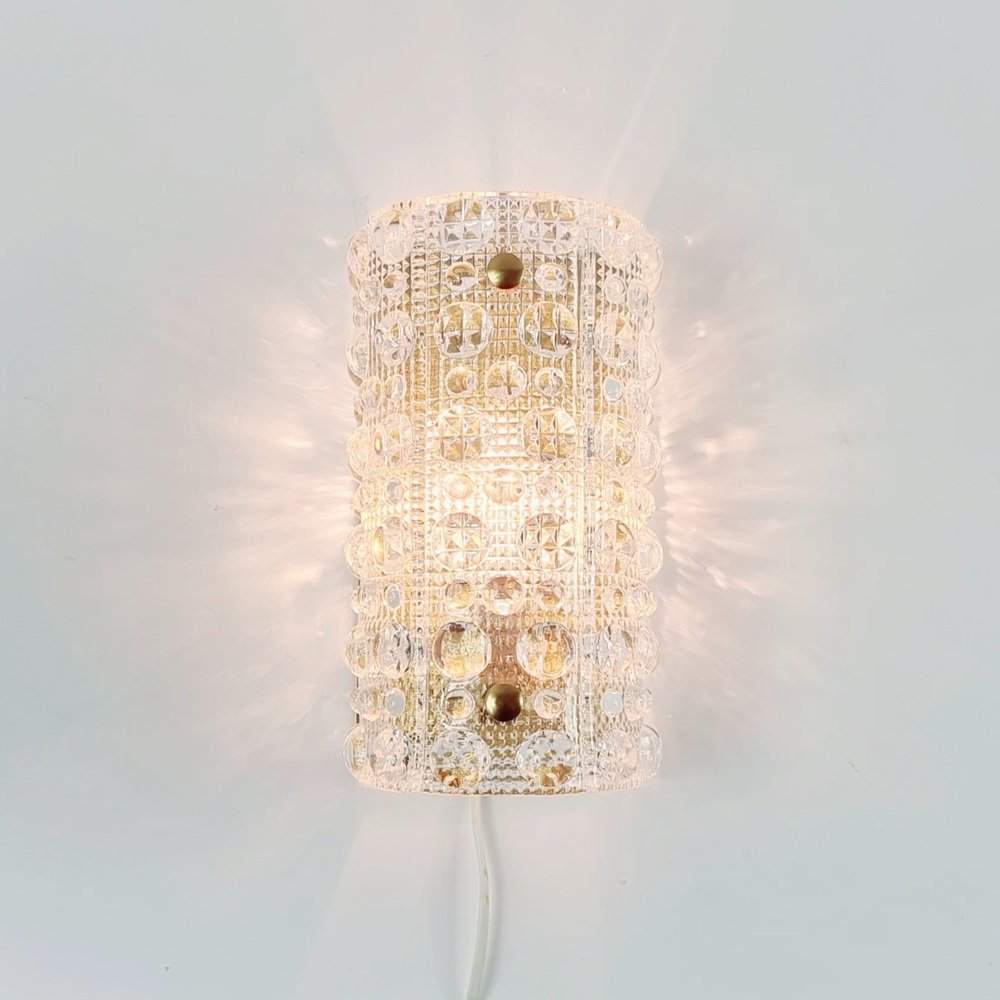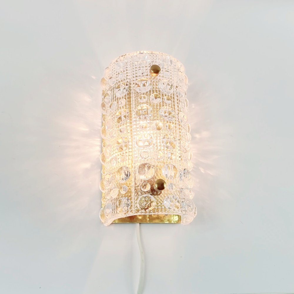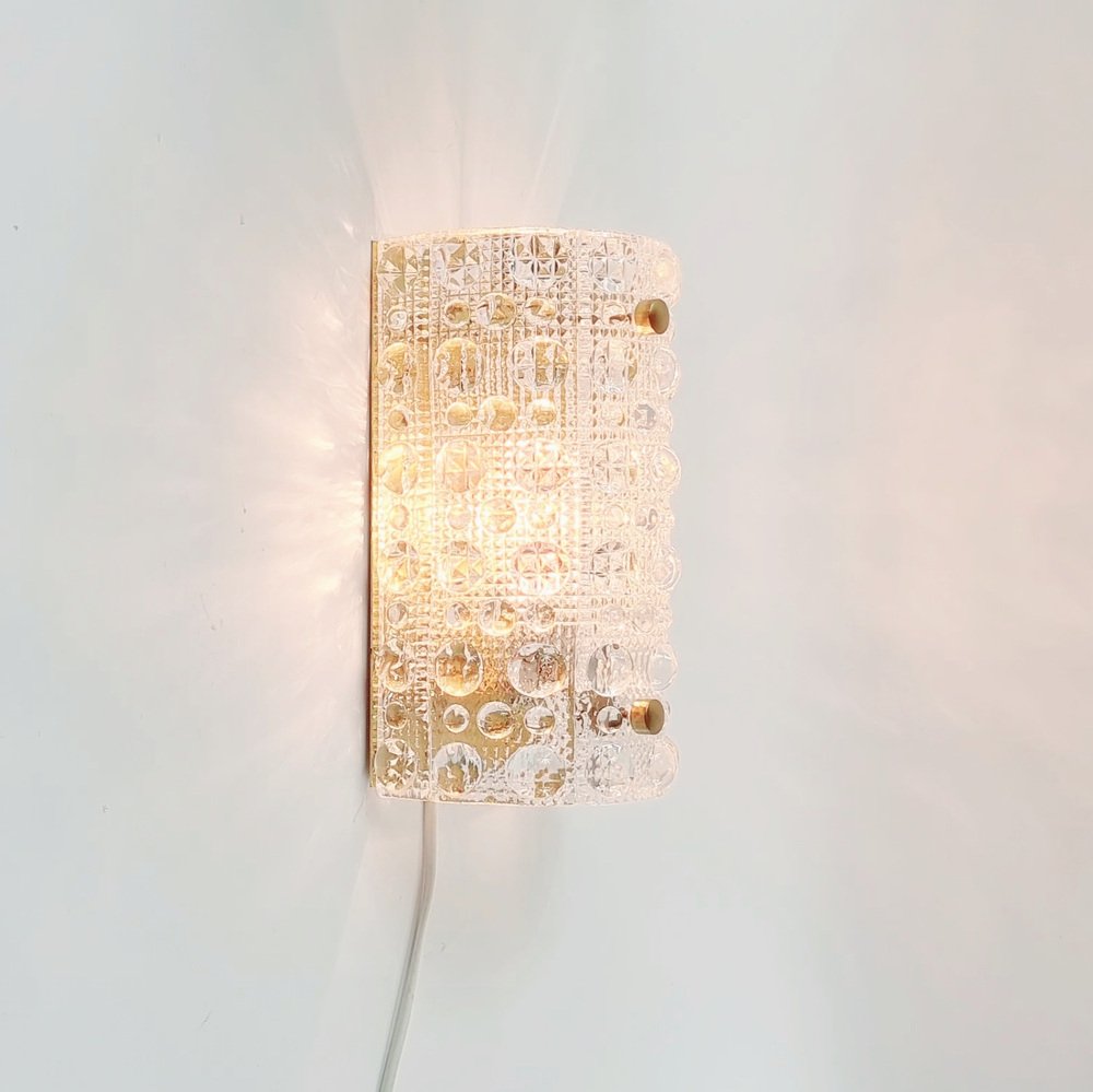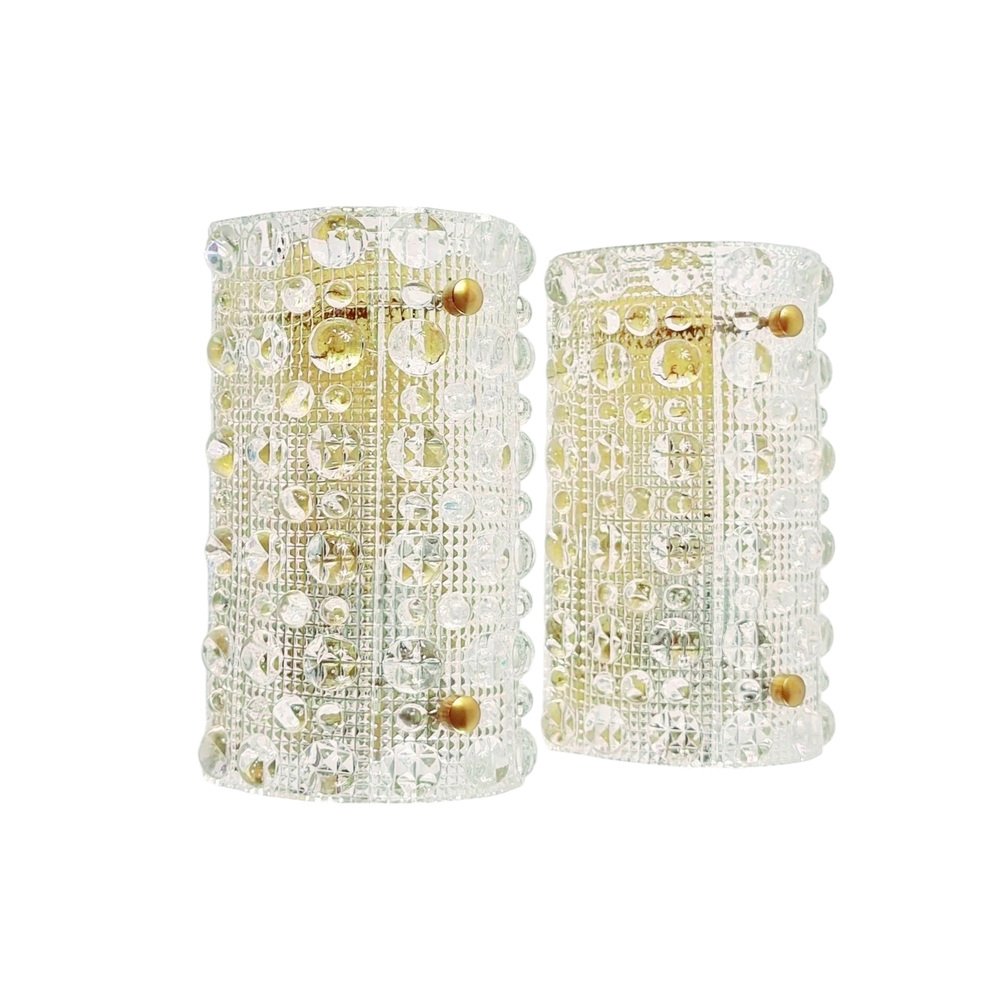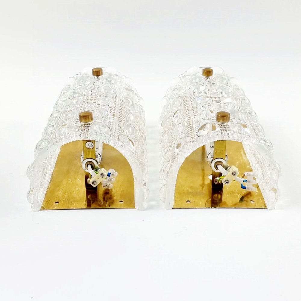 Skandinavische Wandlampen aus Glas & Messing von Carl Fagerlund für Orrefors & Lyfa, 1960er, 2er Set