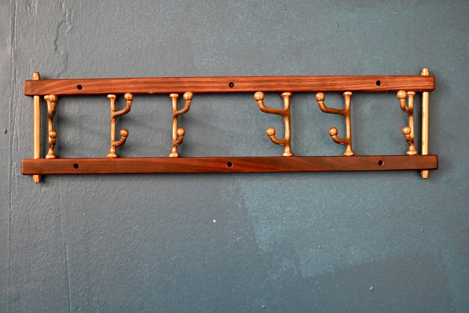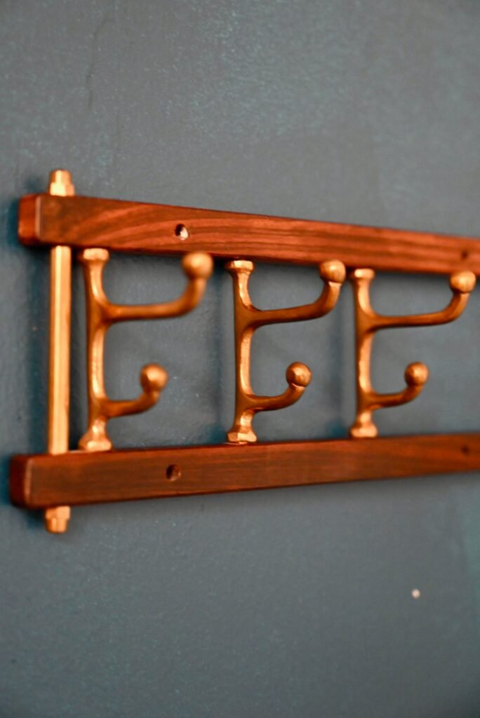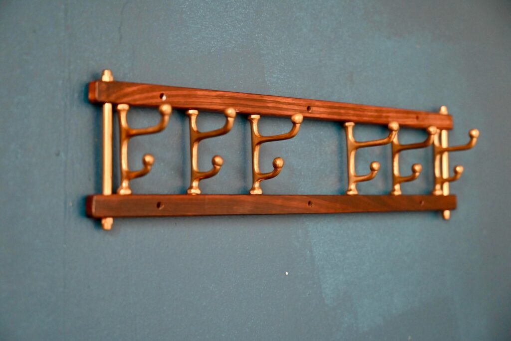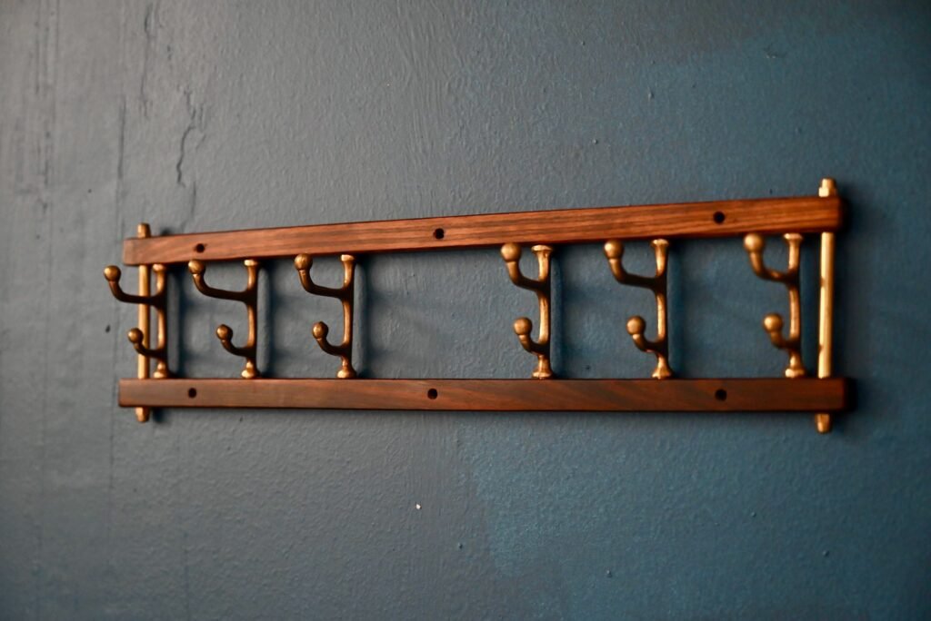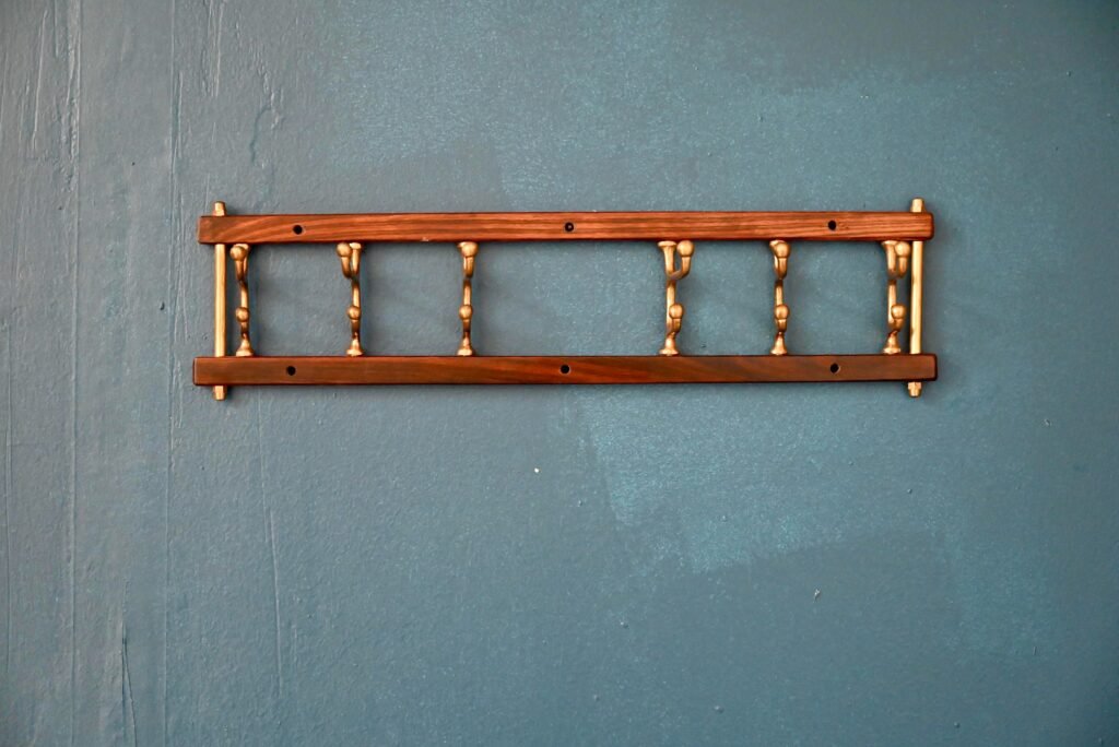 Skandinavischer Handtuchhalter aus Teak und Messing