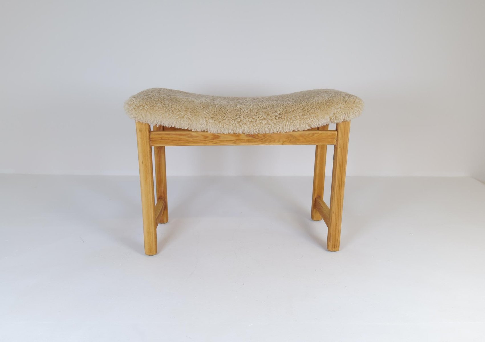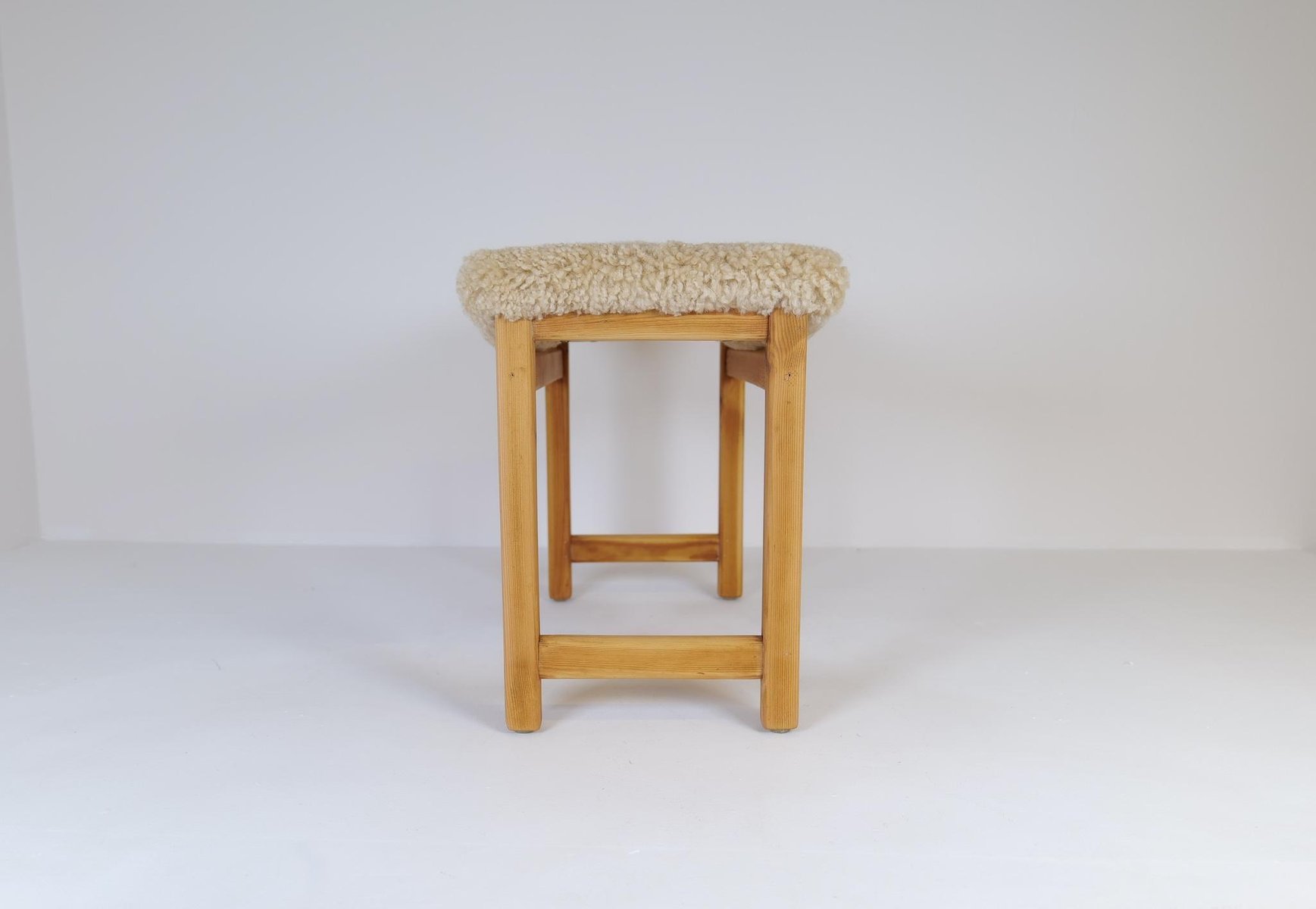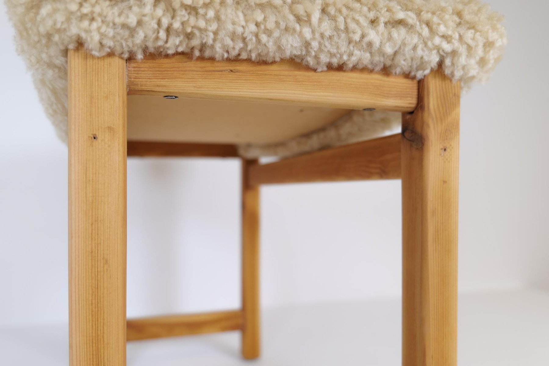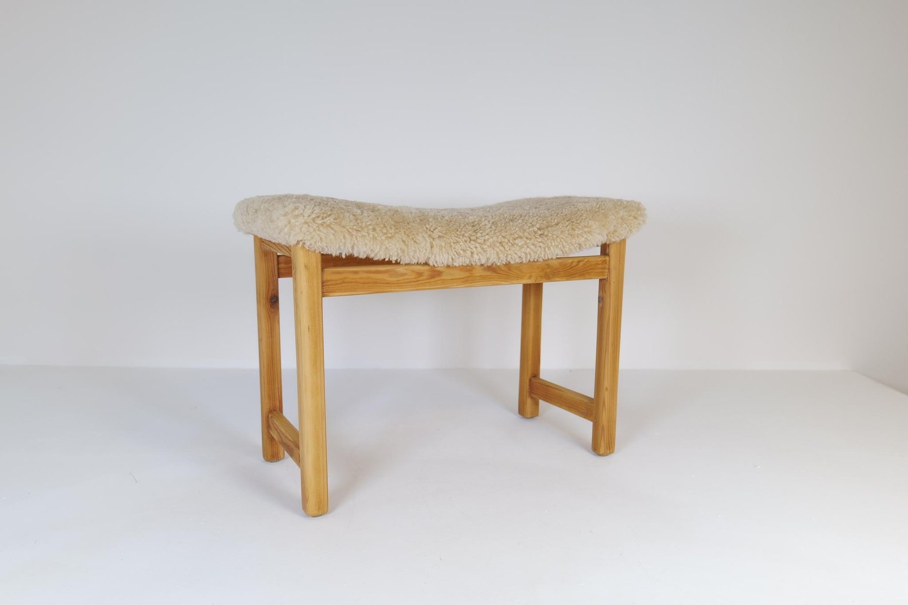 Skandinavischer moderner schwedischer Hocker aus Kiefer & Schafsfell, 1970er
