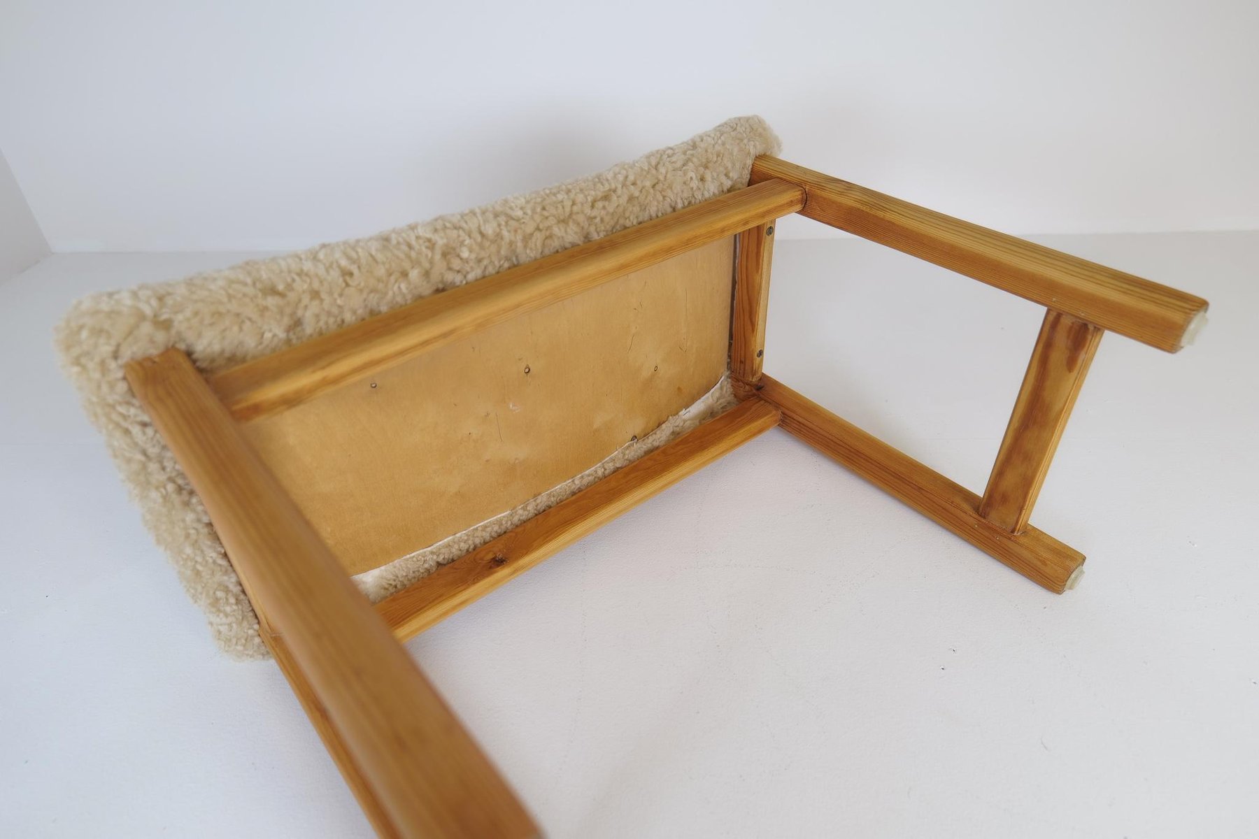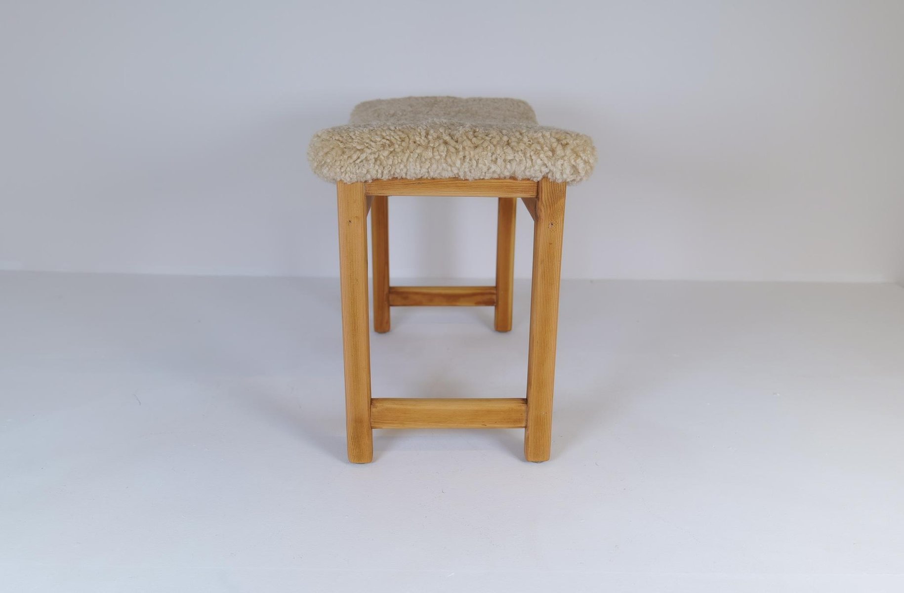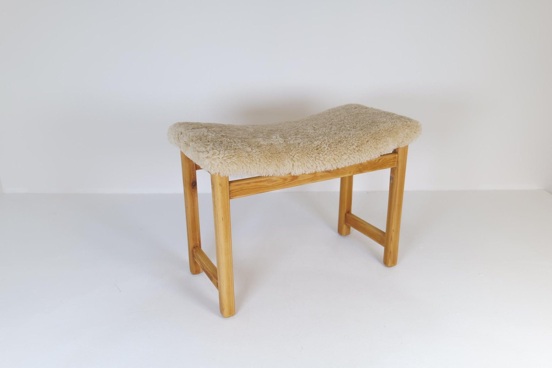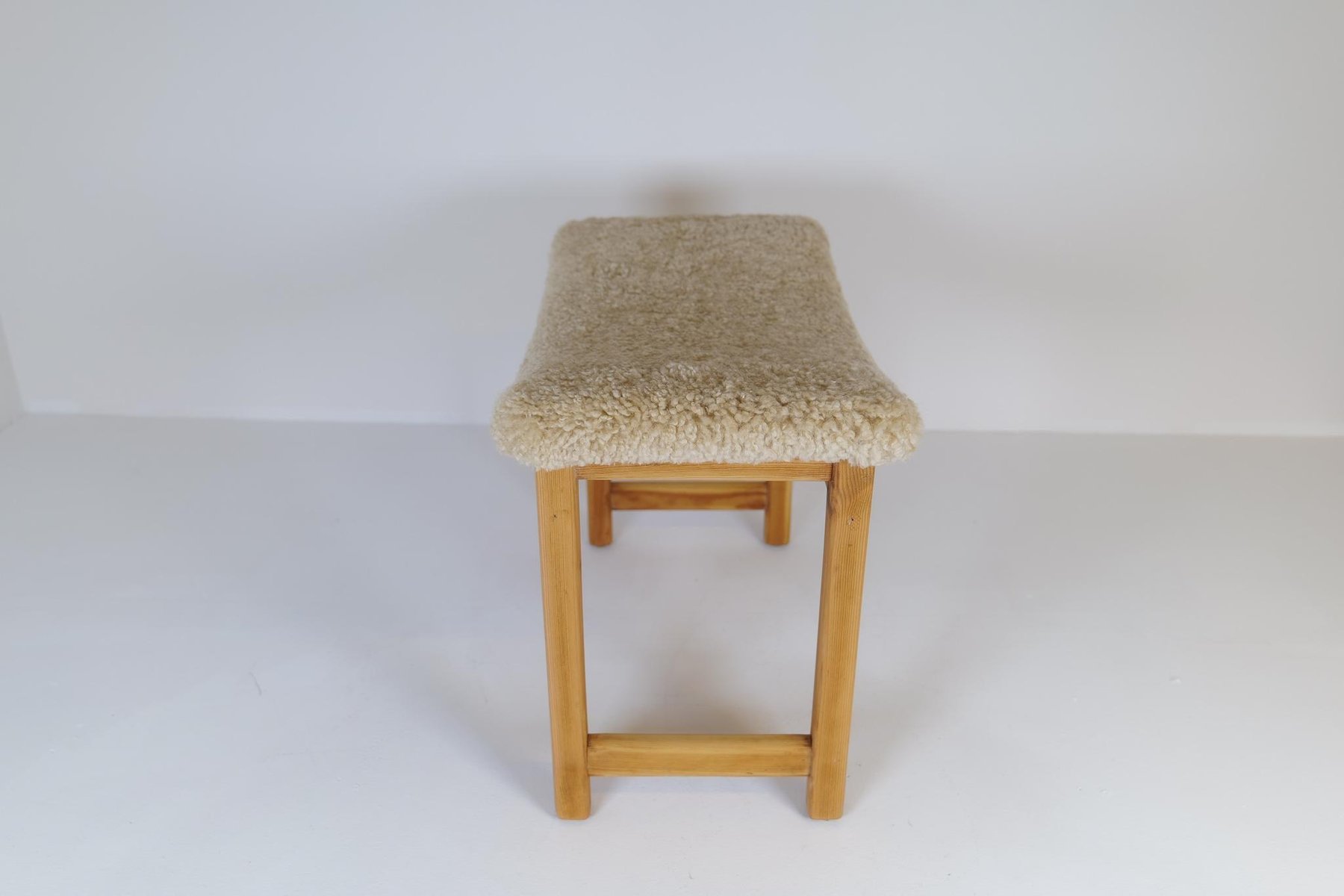 Skandinavischer moderner schwedischer Hocker aus Kiefer & Schafsfell, 1970er