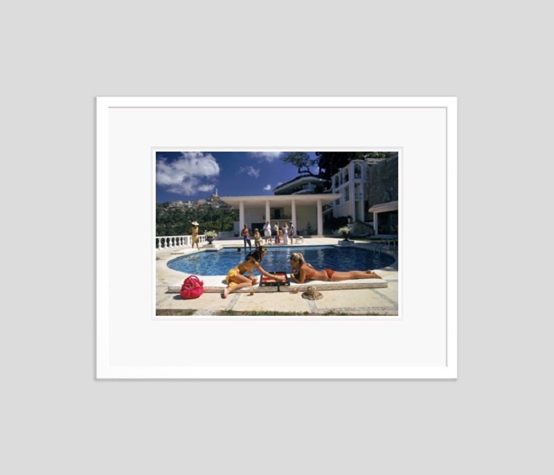 Slim Aarons, Poolside Backgammon, Druck auf Fotopapier, Gerahmt