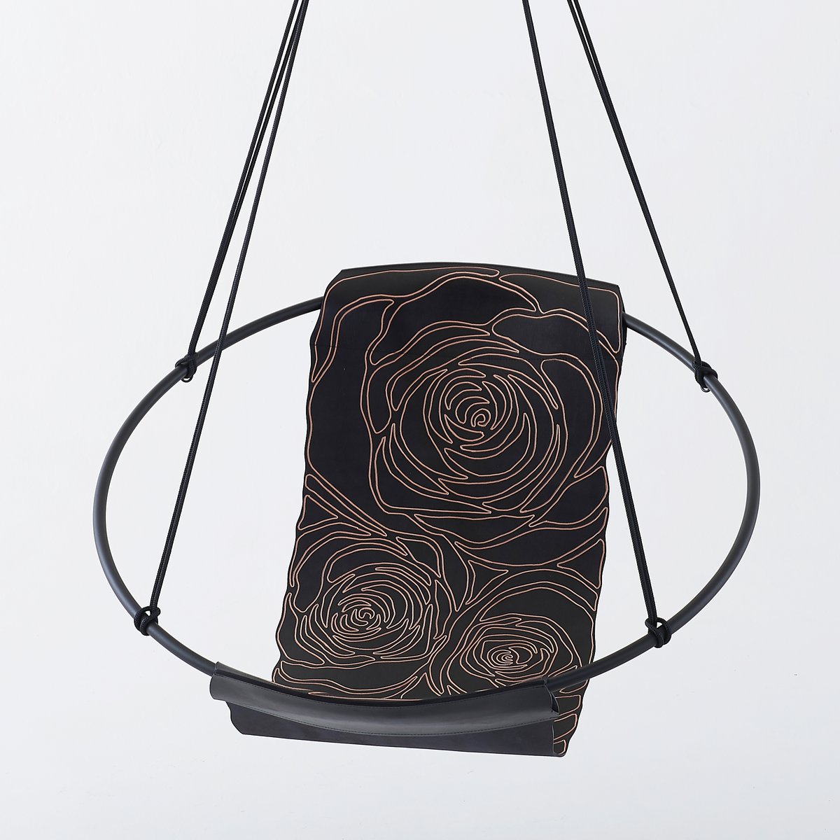 Sling Rose graviert / geschnitzt auf schwarzem dickem Veg Tan echtem Leder handgefertigt modern minimal von Studio Stirling