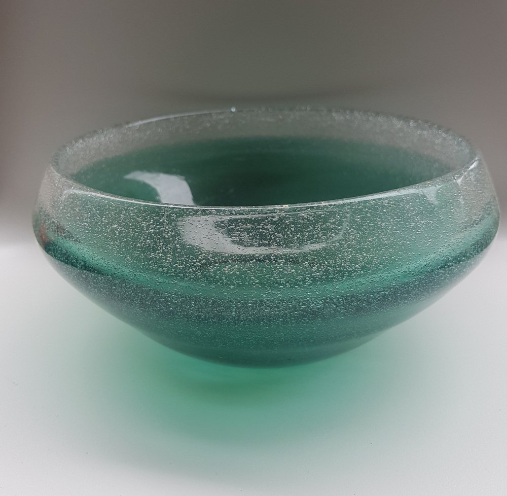 Smaragdgrüne Glasschale mit Bubble Einschlüssen
