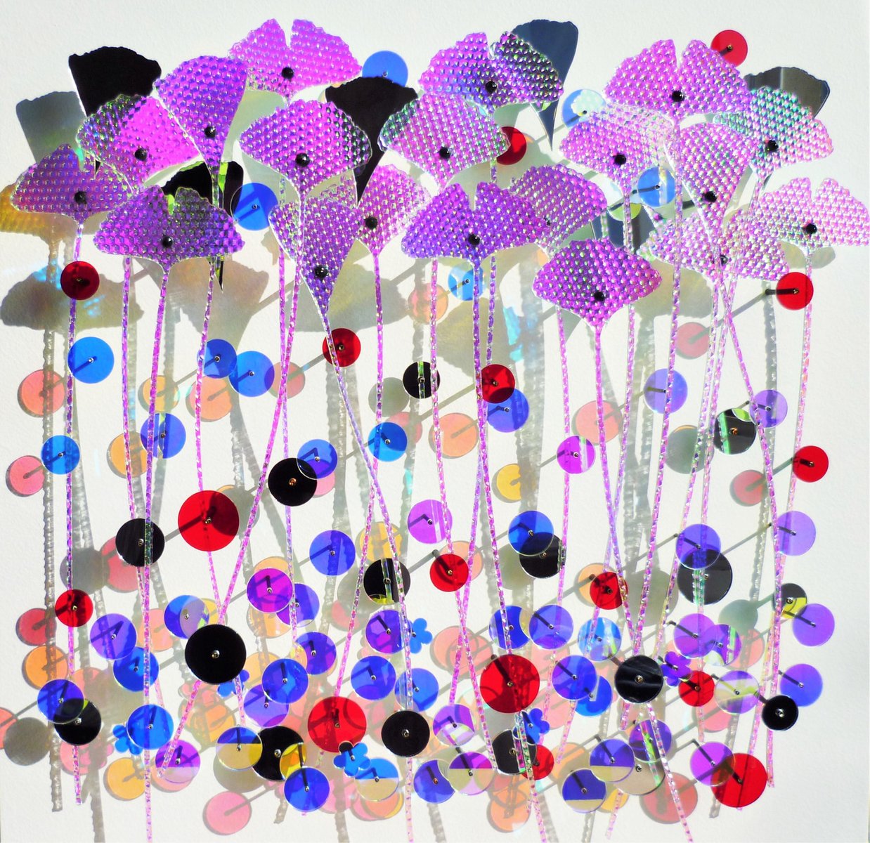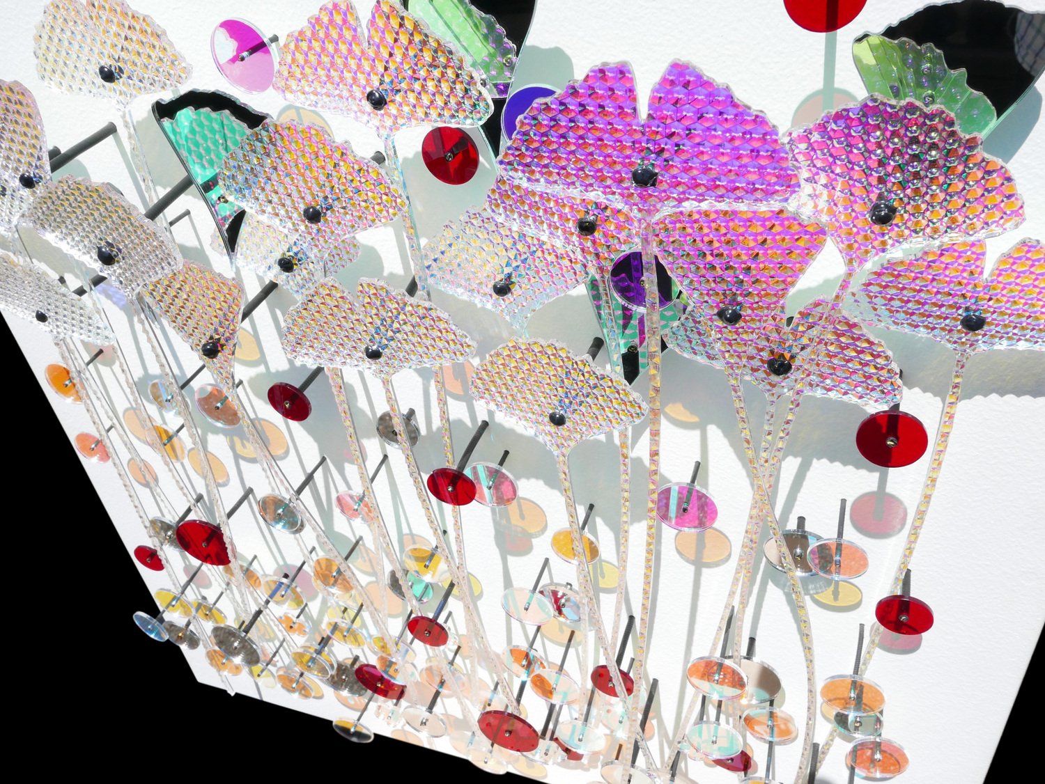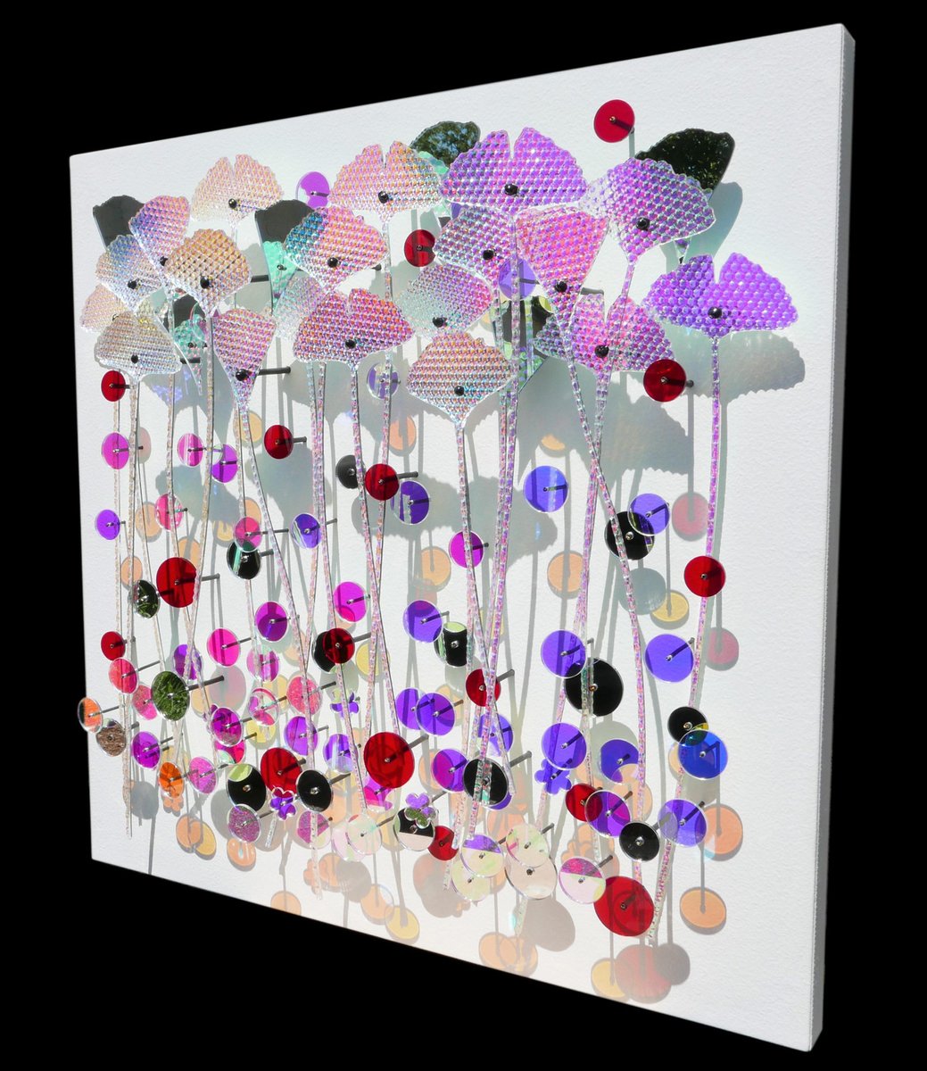 Acrylic glass (mirror, iridescent), metal tube & acrylic paint on panel Eric Beauplace, French contemporary plastic artist born in 1962. The term ‘plastic artist’ is not used here in the traditional sense. Eric Beauplace manipulates materials, creates colors and volumes, and composes, but the tools he uses are not those of a sculptor or a painter. Nothing is fixed in the works he produces; motion is constant. His works are intimately linked to the surrounding light, the movements of the viewer and of every eye that settles on them. Eric Beauplace’s wall sculptures use materials to receive light and pass it on to each other, creating an intense optical experience. The transparencies and reflections, sparkles, diffractions, and other phenomena that they produce open up many possible avenues for interpretation. Colours are born, blend and break free, patterns repeat and give rhythm to the whole. Unpredictability prolongs the work indefinitely, in a harmony of sculptural contingencies meticulously set up by the artist. As a viewer himself of what he creates, Eric Beauplace is a researcher: he experiments, observes, pursues to the end and repeats his creative processes. His work is a constant experiment that he invites the viewer to participate in. More than just conveying a message, the artist aims to arouse a sense of escape, perhaps even meditation. The artist has created a path with the viewer at the centre, walking through this changing environment, never able to completely discern what it is. A dimensional, chromatic intimacy is forged, a reflection of the visible and its slow changes. This unique, fluid and highly visual work by Eric Beauplace is experienced through contemplation and, at the risk of losing ourselves in it, enriches us with a new spirituality. Currently lives and works in Paris, France.