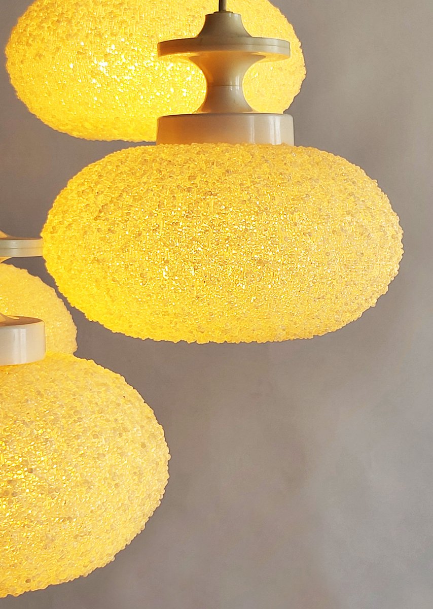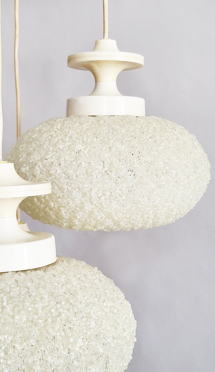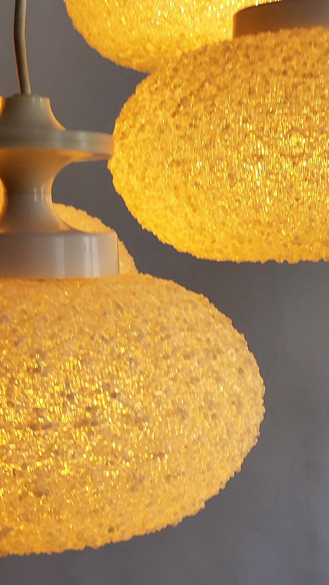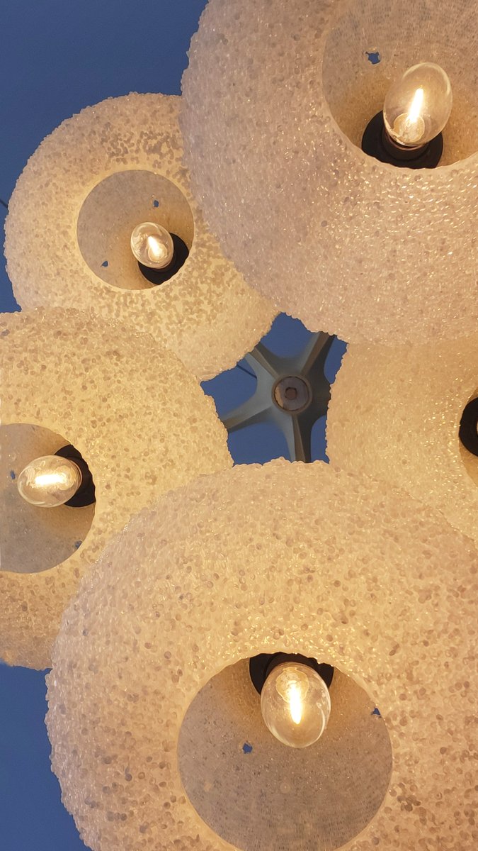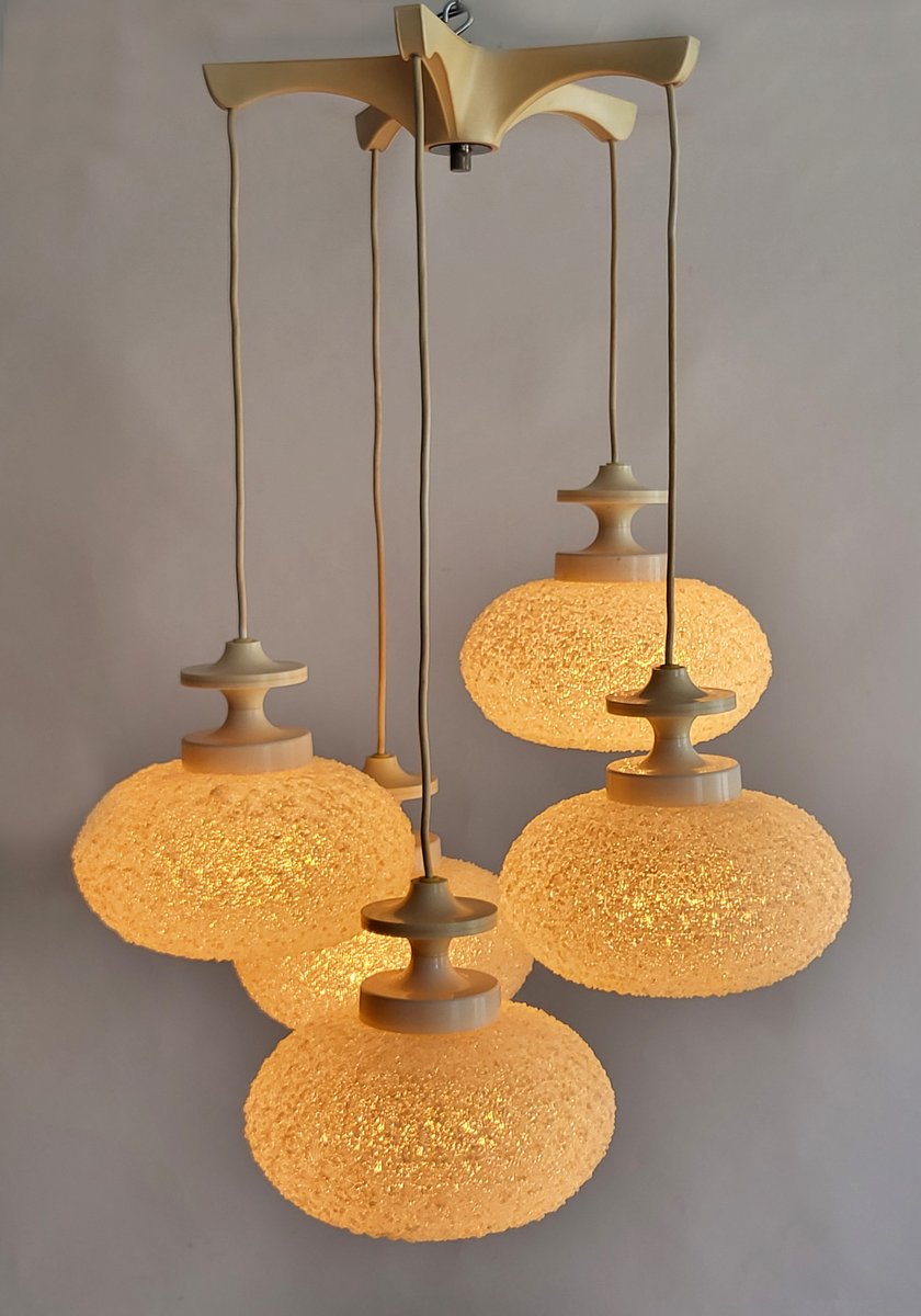 Klassische, retro-futuristische Kaskadenlampe aus Kunststoff-Granulat. Die Lampe gibt angenehm weiches atmosphärisches Licht. Voll funktionstüchtig.