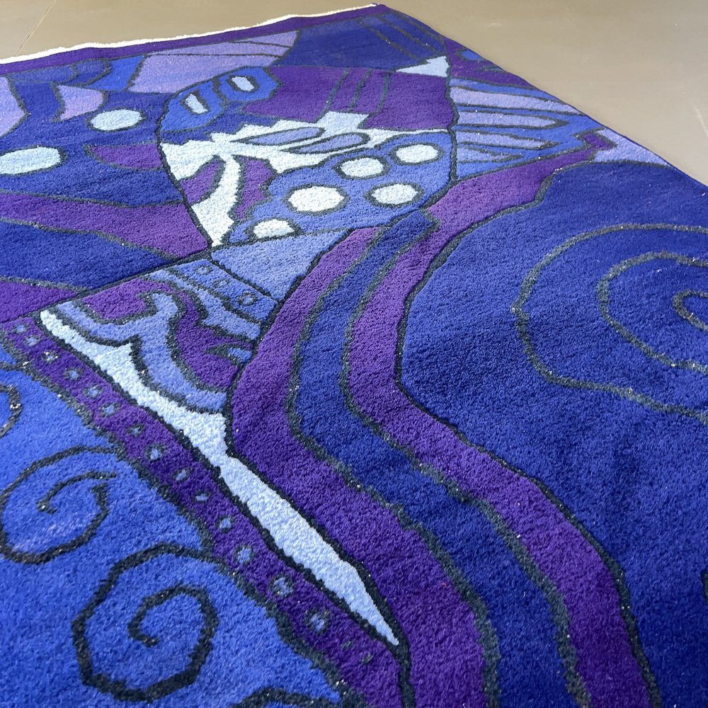 Space Age Pop Art Teppich in Blau & Lila, 1970er