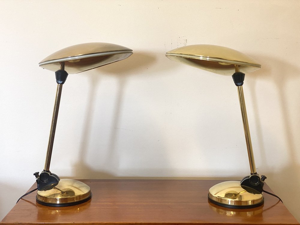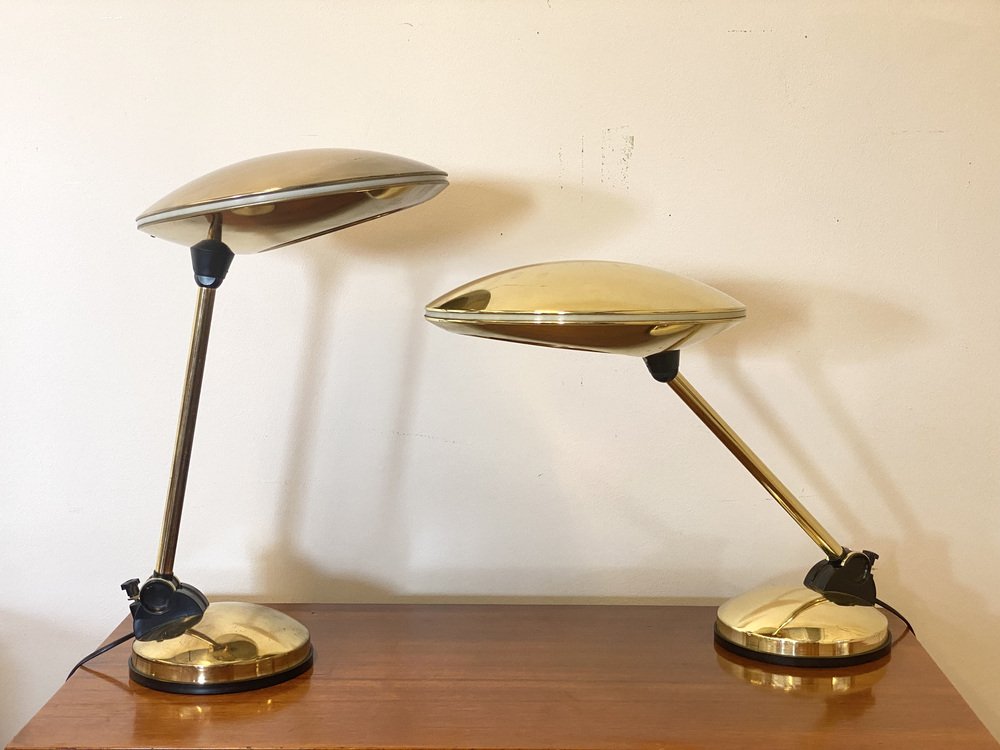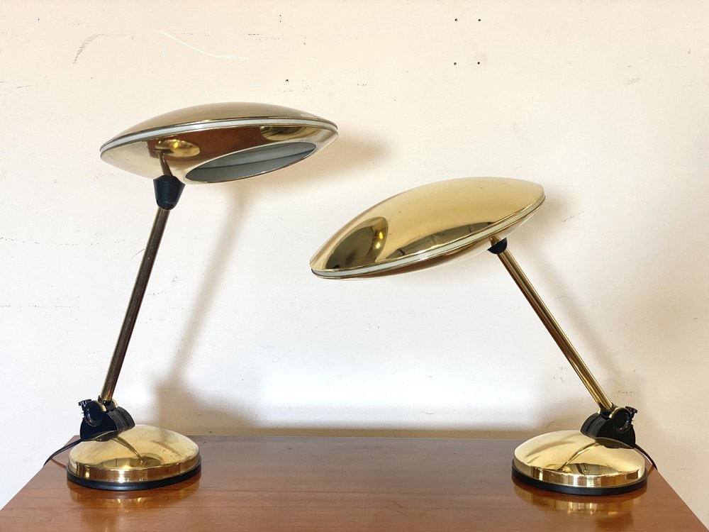 Space Age Tischlampen aus Messing, 1970er, 2er Set