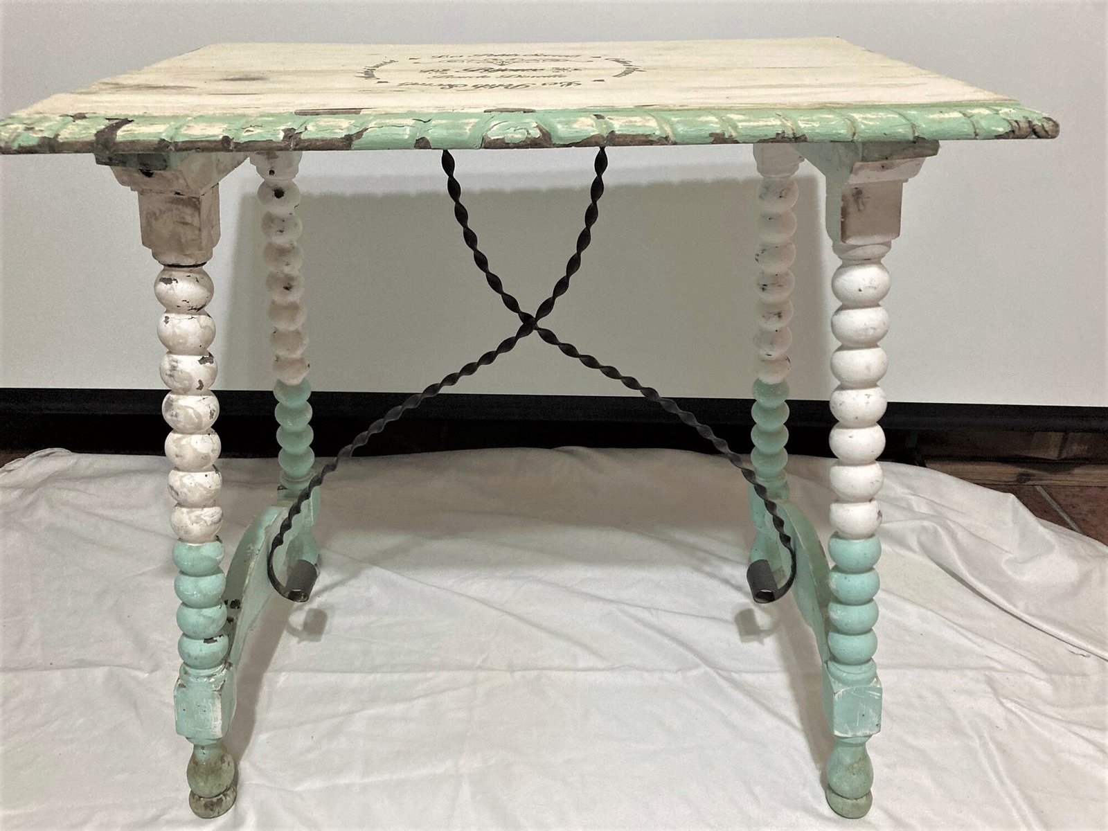 Spanischer Beistelltisch mit gedrechselten Beinen und Eisenspanner, 1890