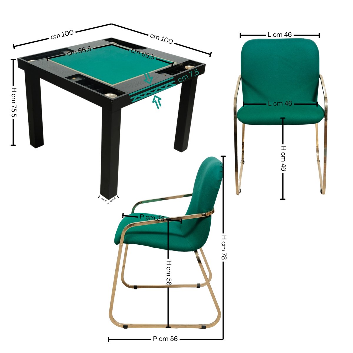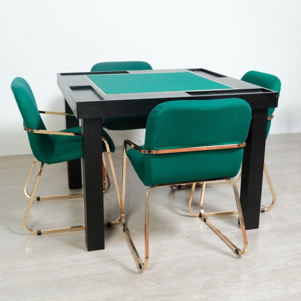 The set is in good condition, with some usual signs of aging, on the wooden structure, well-maintained chairs, please note that two look practically new and bright green, in the other two chairs the color is slightly darker (see photo)