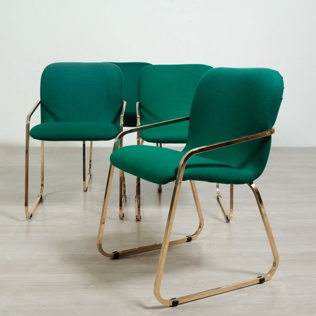 Komplett mit 4 eleganten Stühlen mit goldfarbener verchromter Metallstruktur,