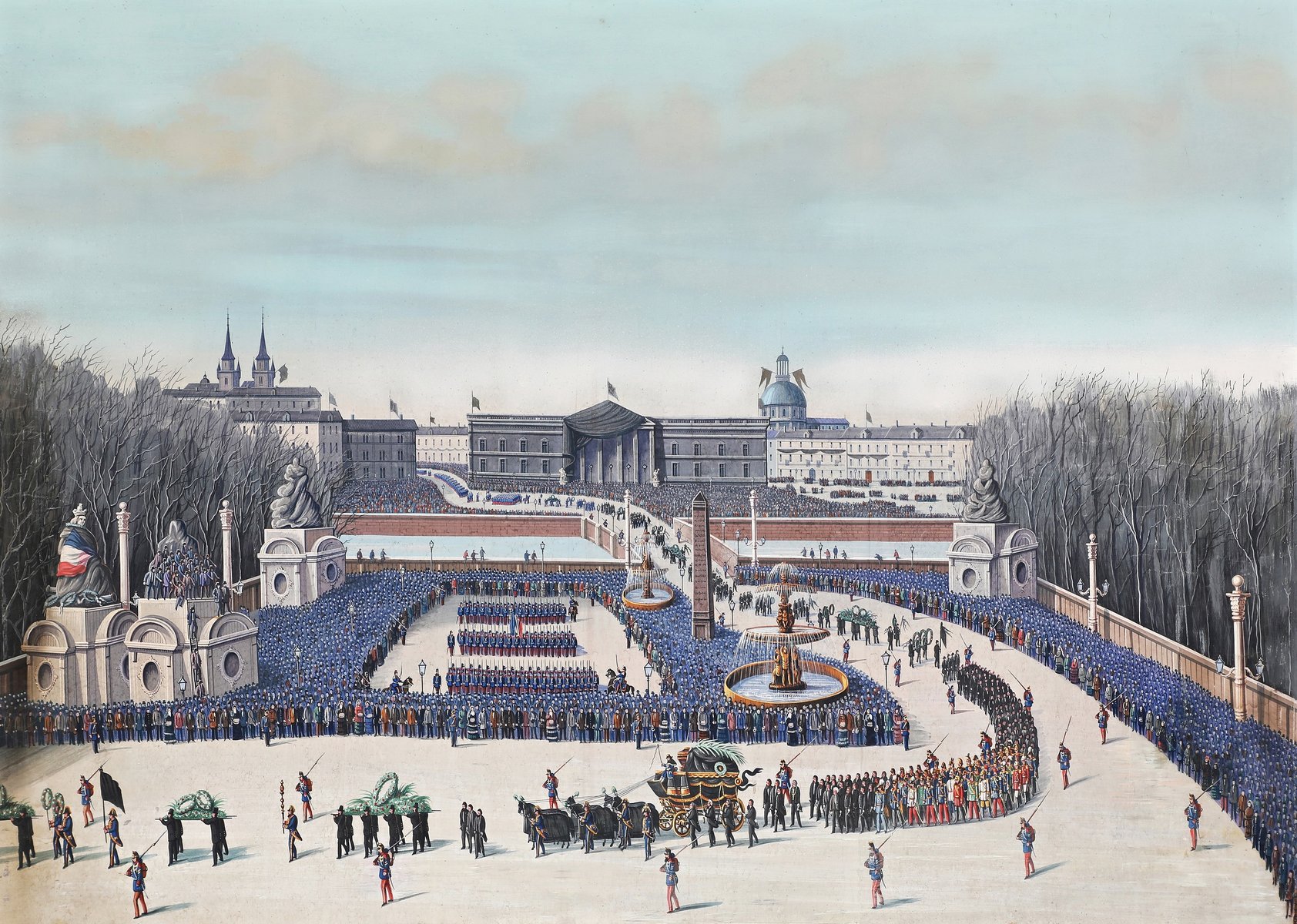 Staatsbegräbnis von Léon Gambetta am 6. Januar 1883 auf der Place De La Concorde, Mixed Media auf Leinwand
