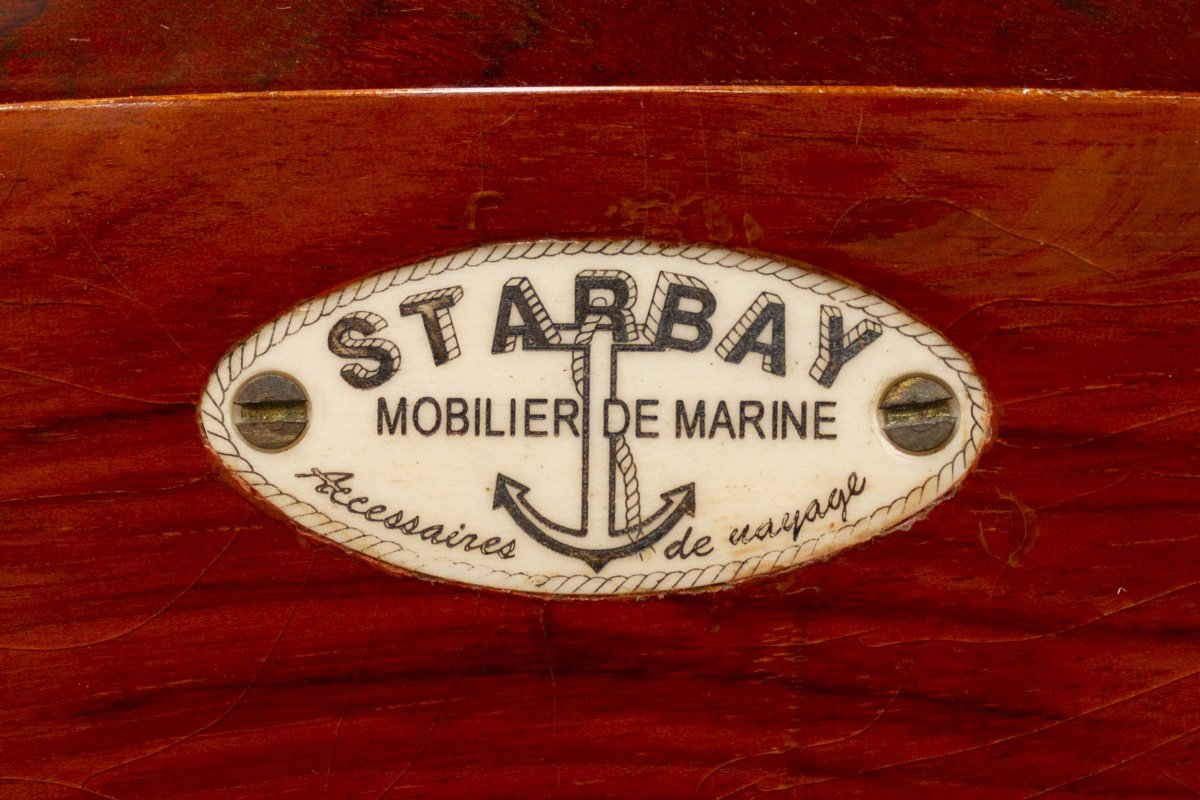 The bottle holders are brass, while the knobs with the marine emblem are Bakelite.