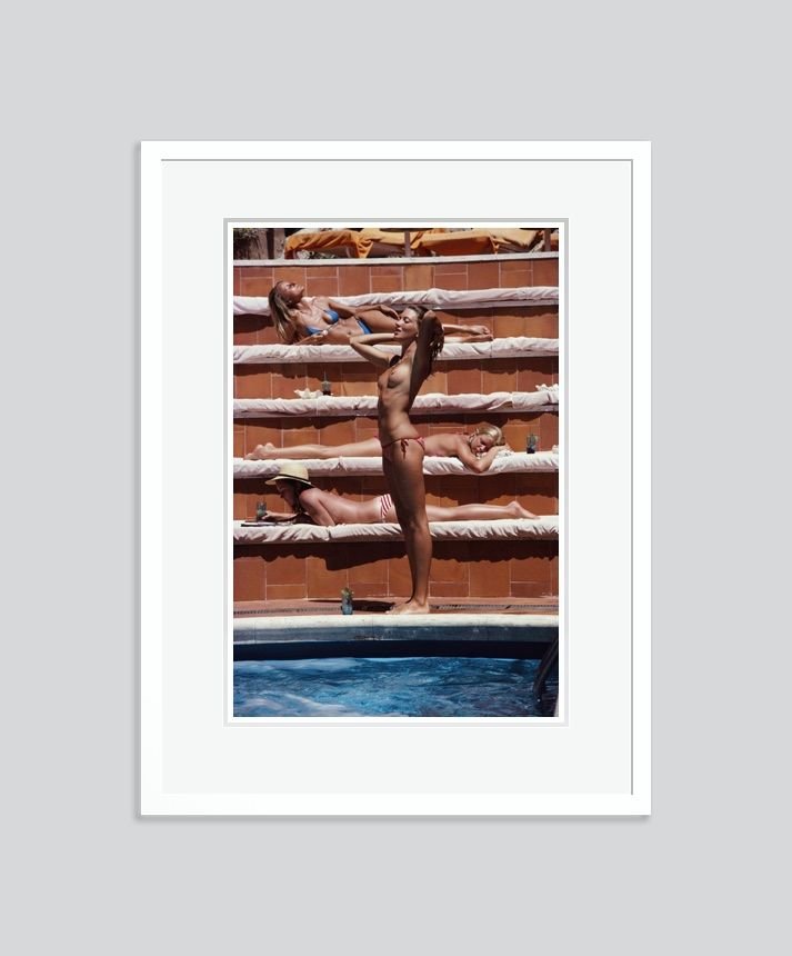 Sunbathing on Capri Oversize C Print Framed in Black by Slim Aarons