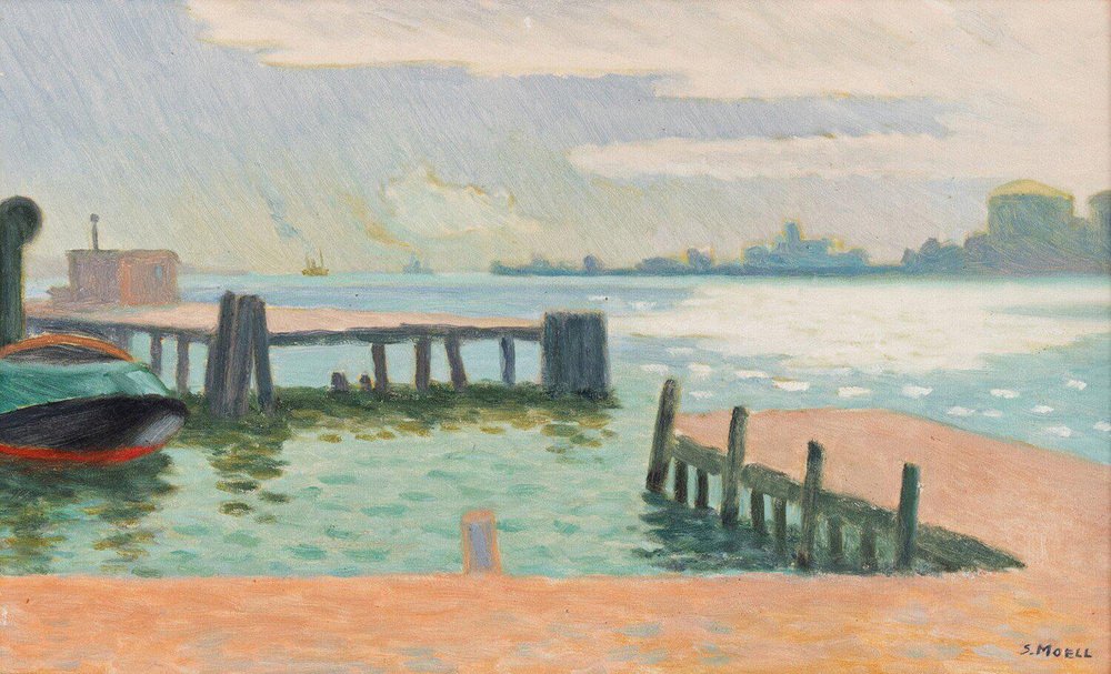 Sven Moell, Kustens Varv, Ölgemälde an Bord, Mitte 20. Jh., gerahmt