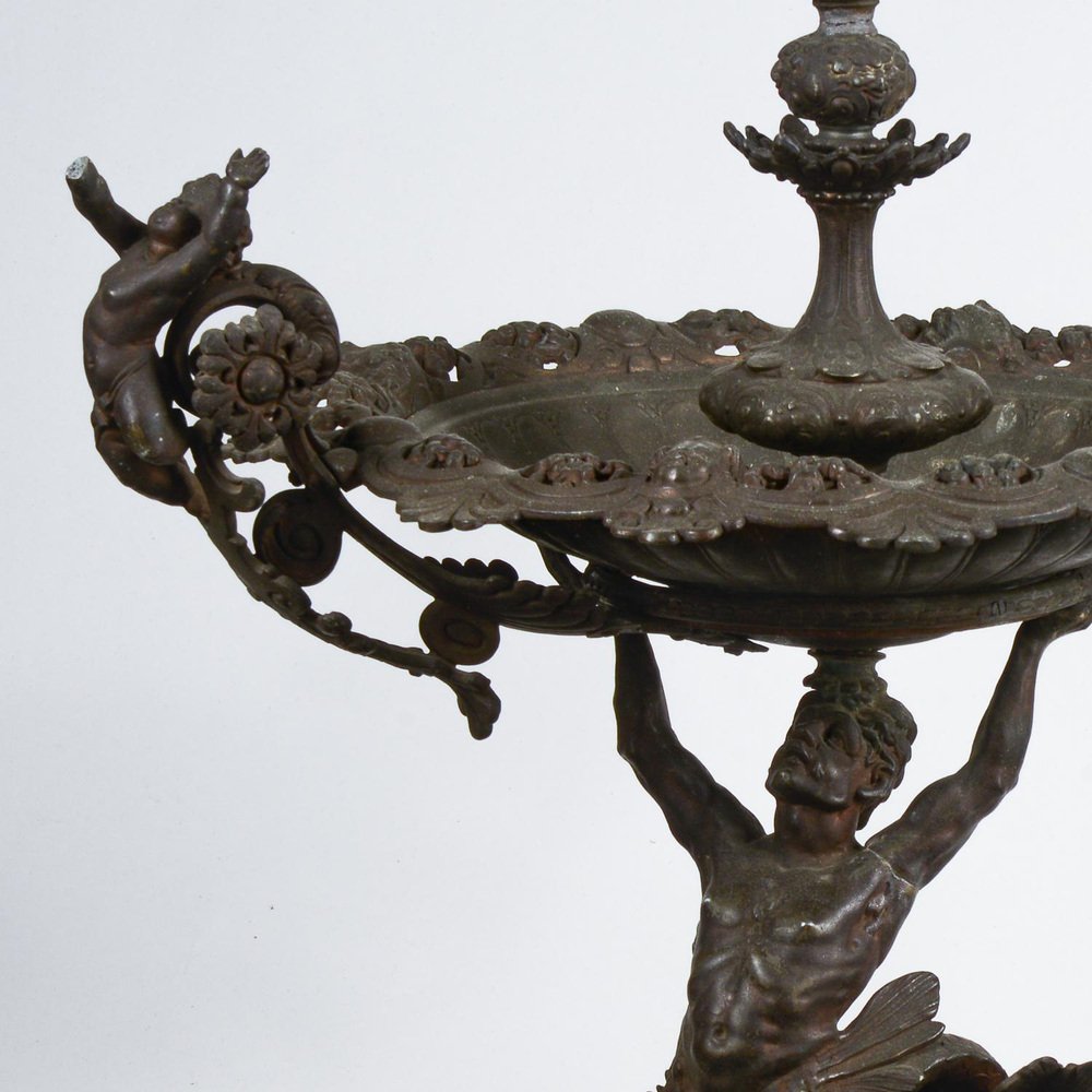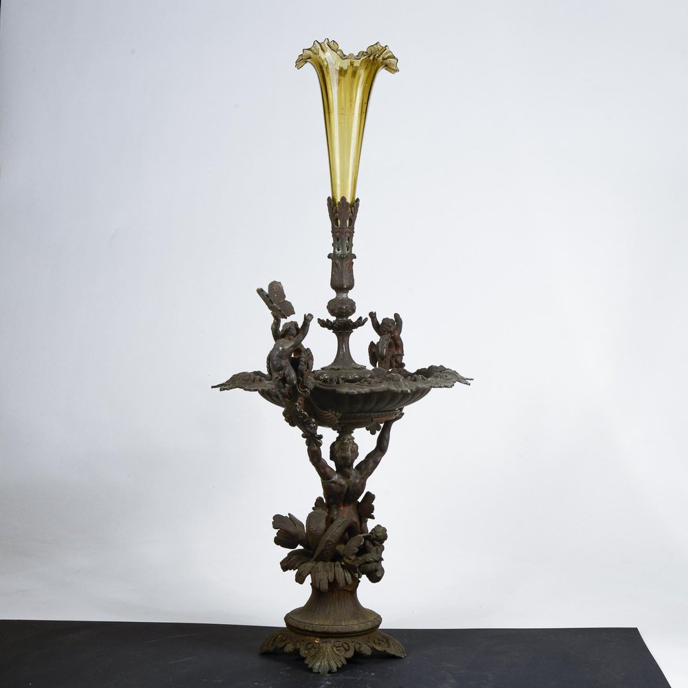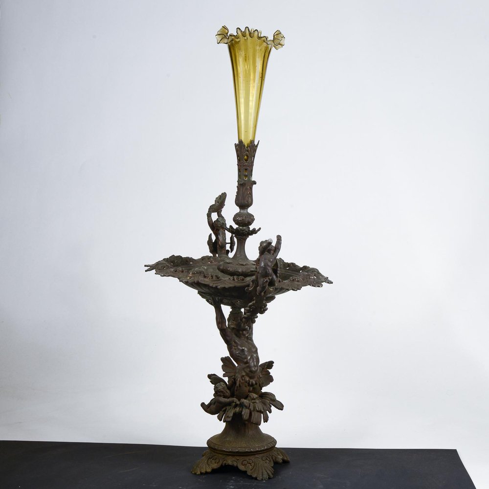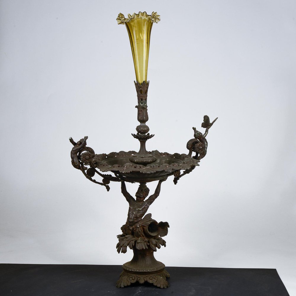 Tafelaufsatz aus Metall mit mundgeblasenem Glasgefäß