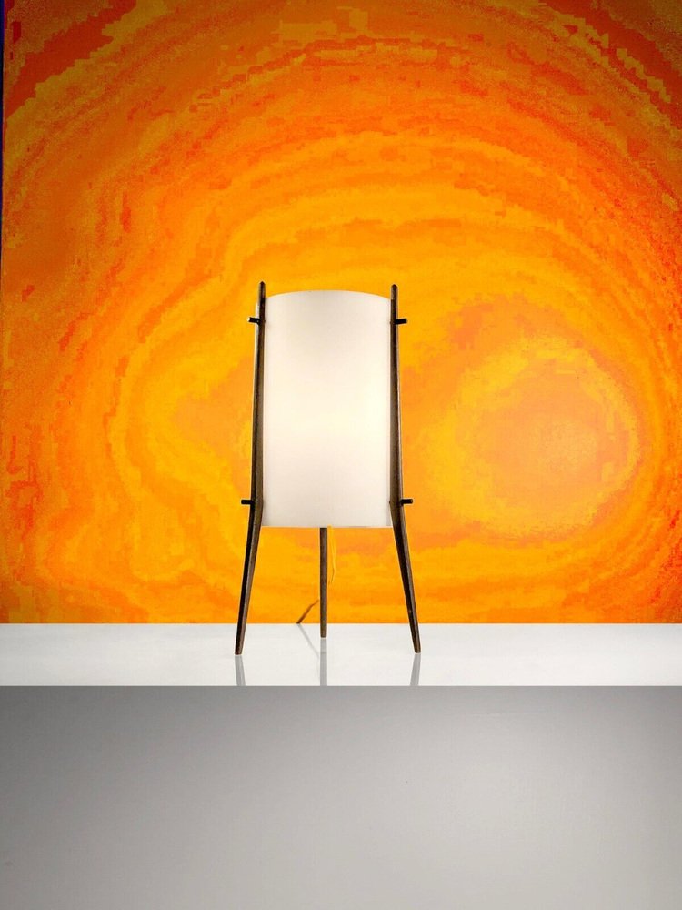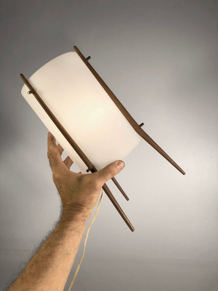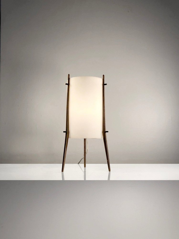 Tischlampe oder Stativ Nachtlicht aus Weiß & Teak von Alfapplex, Italien, 1950er