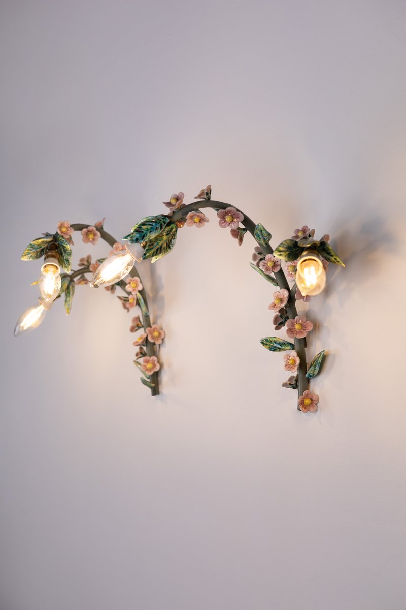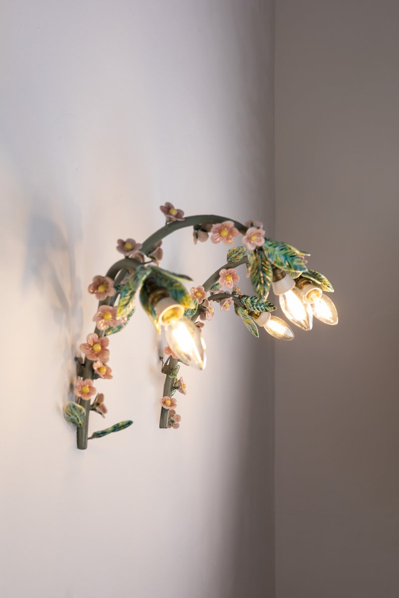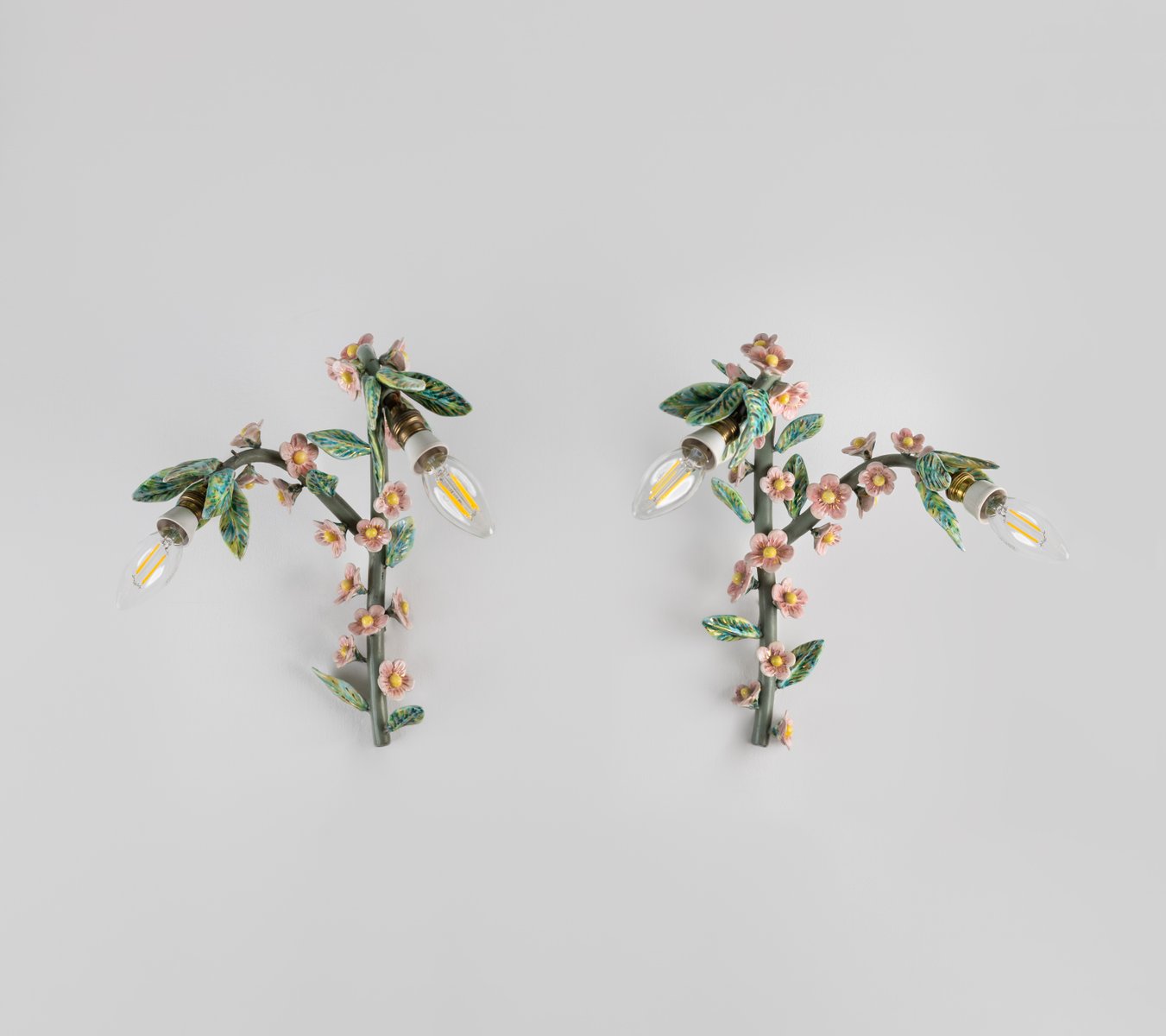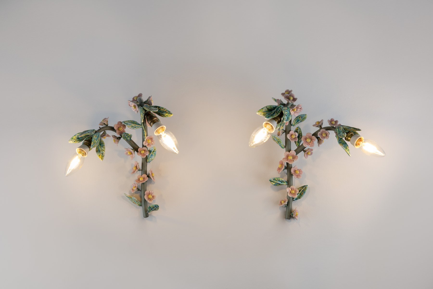 Tole Wandleuchten mit Porzellanblumen von Aldo Ajò, 1960er, 2er Set