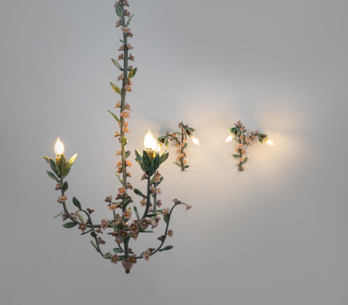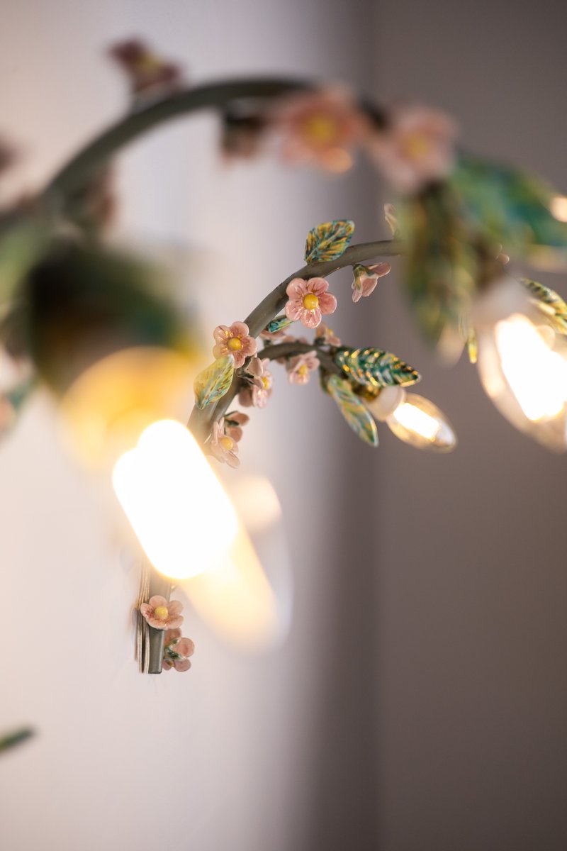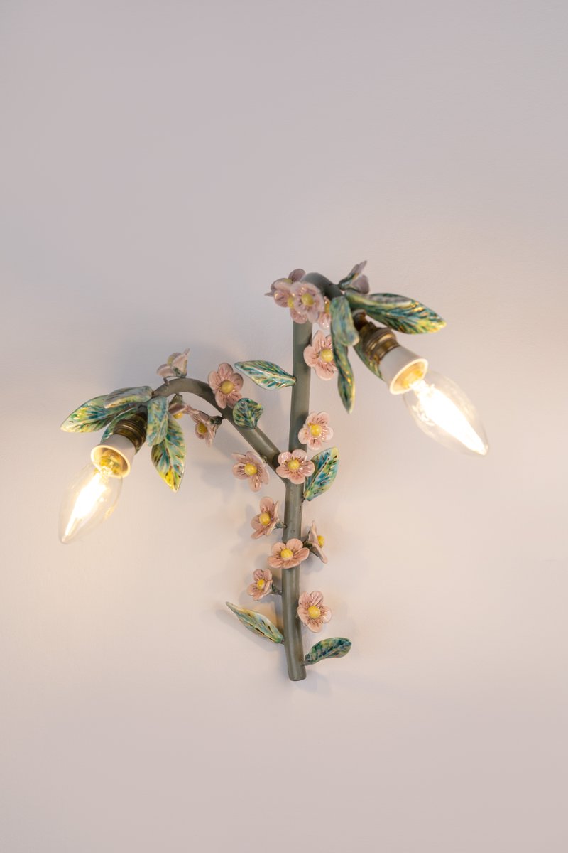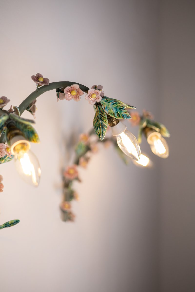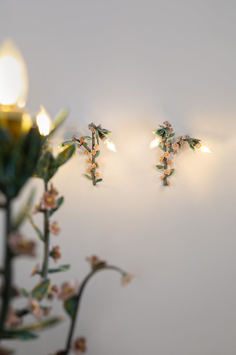 Tole Wandleuchten mit Porzellanblumen von Aldo Ajò, 1960er, 2er Set