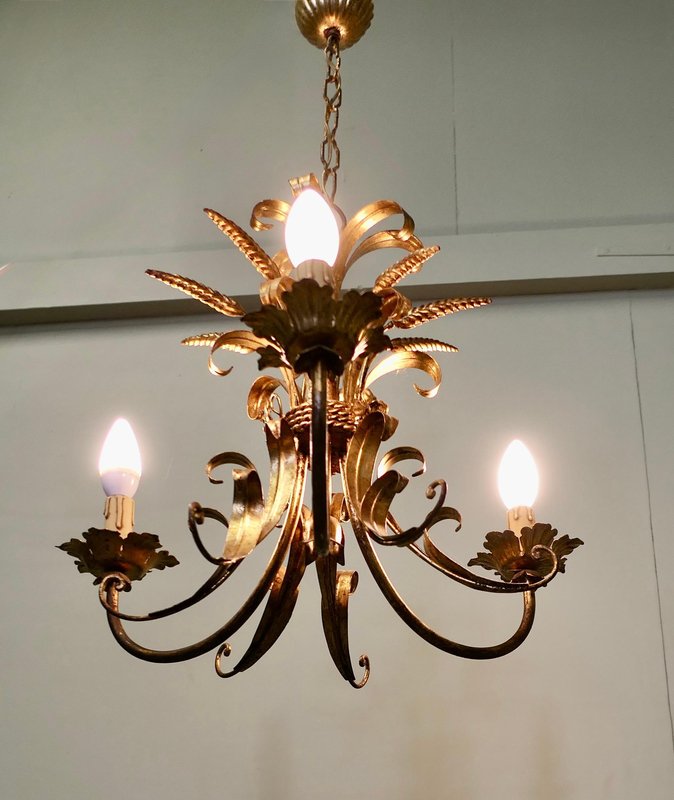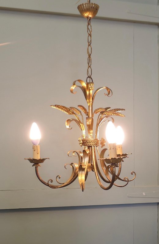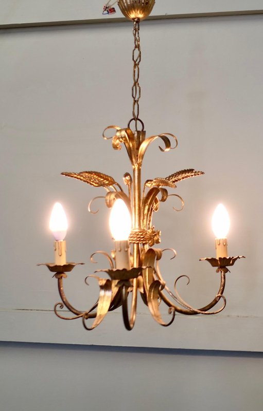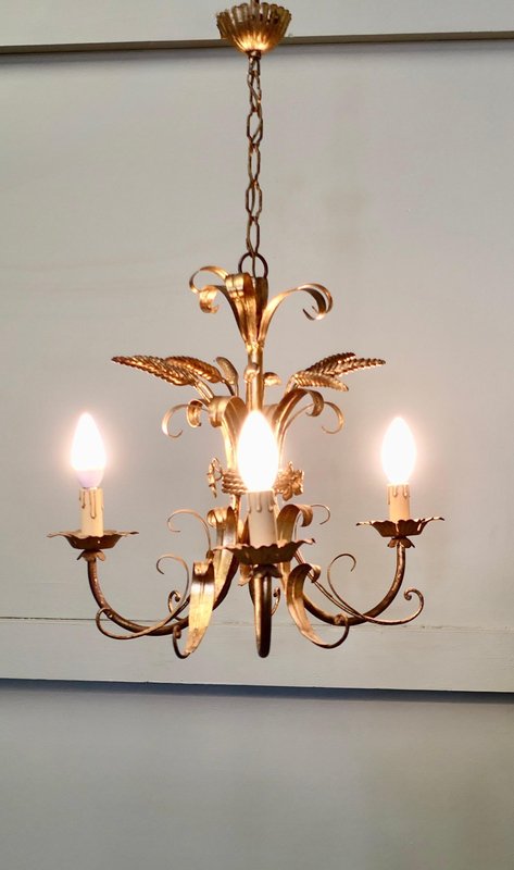 Vergoldeter französischer Vintage Kronleuchter aus Toleware, 1960