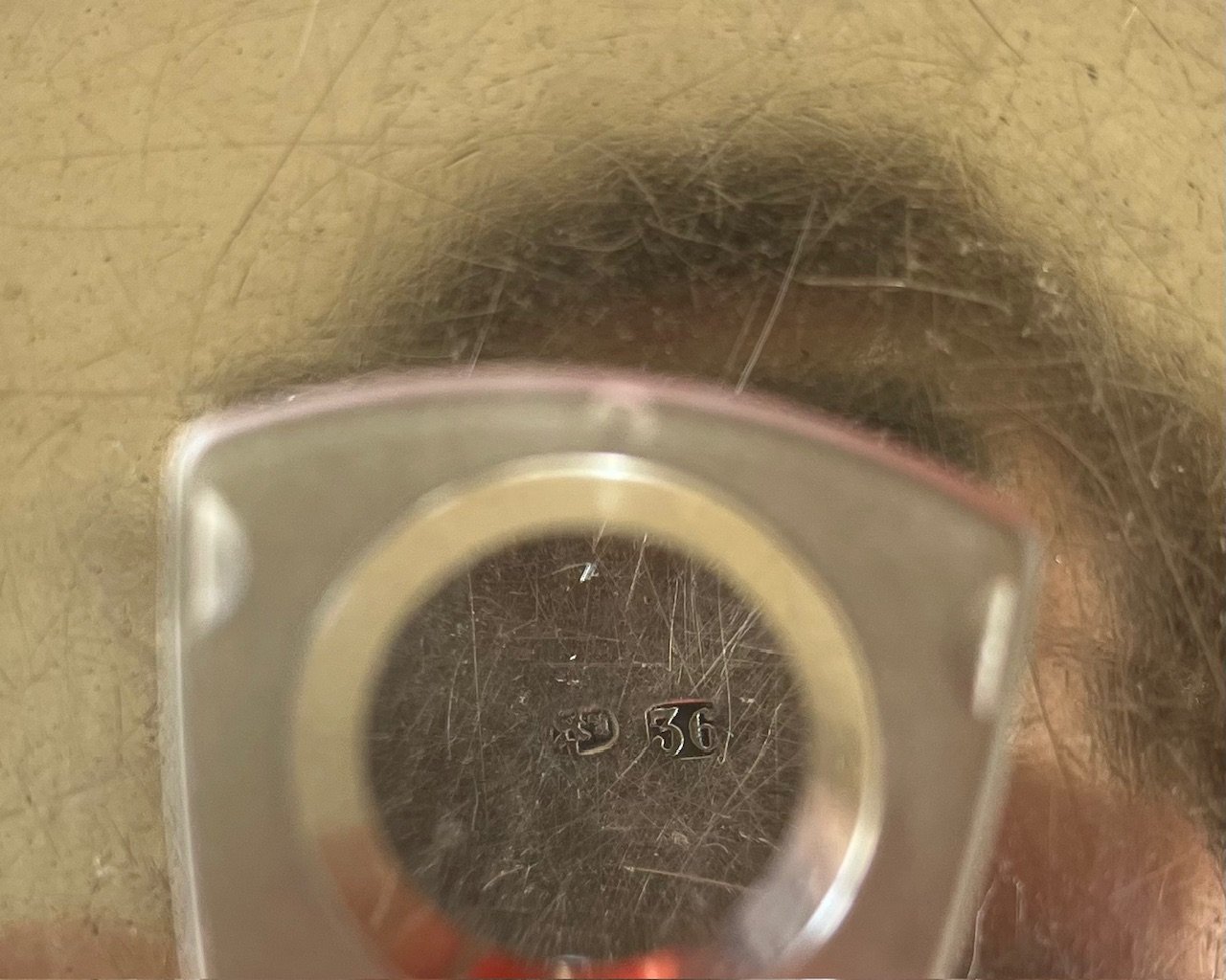 Under the base, we can see a hallmark “36” indicating the quantity of silver used for the silvering, as well as a floral hallmark, the signature of the silversmith.