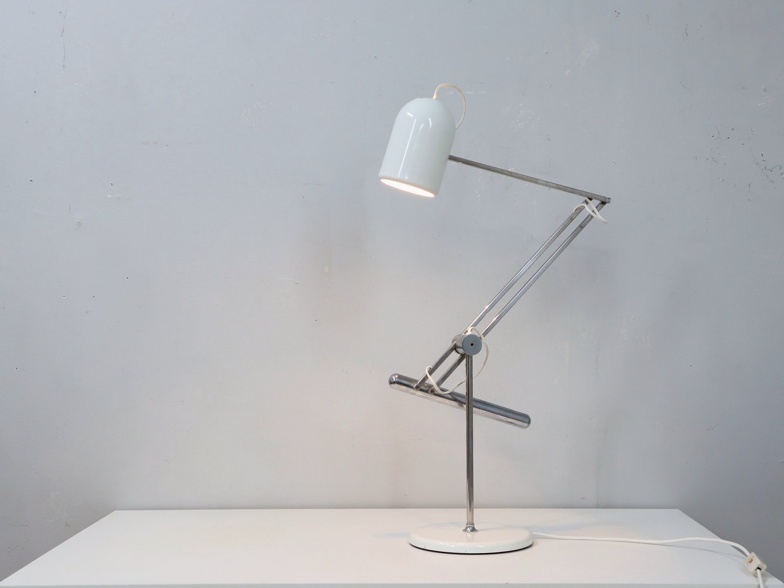 Thanks to its counterbalanced and adjustable arm, it provides maximum flexibility — ideal on a desk, side table, or as an accent light in contemporary and minimalist interiors.