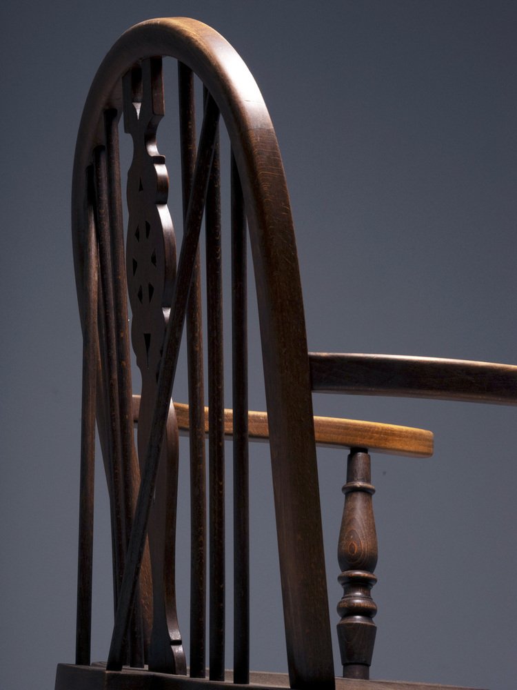 Jeder Sessel verfügt über eine gedrechselte Spindelrückenlehne, einen geformten massiven Sitz und anmutig geschwungene Armlehnen, die die Handwerkskunst der Möbelwerkstätten von High Wycombe, England, widerspiegeln - dem historischen Zentrum der Windsor-Stuhlproduktion.