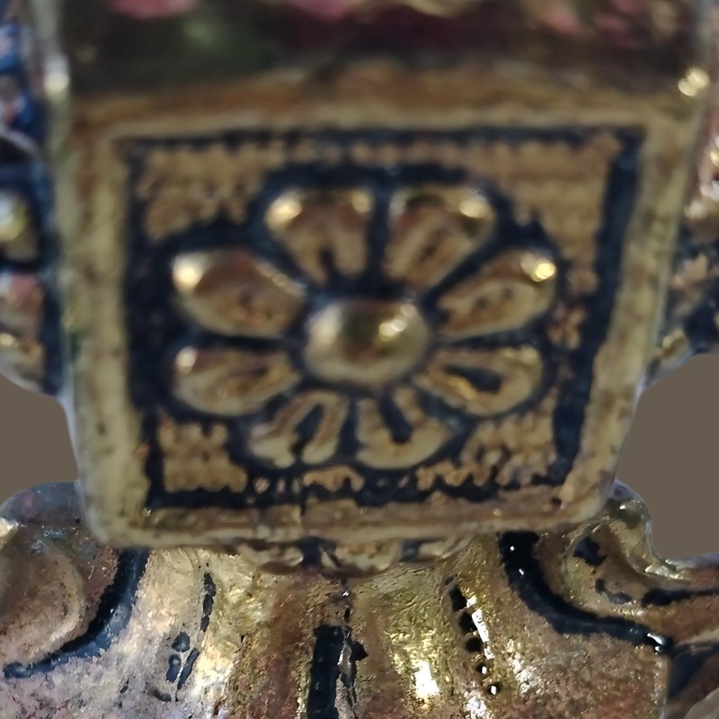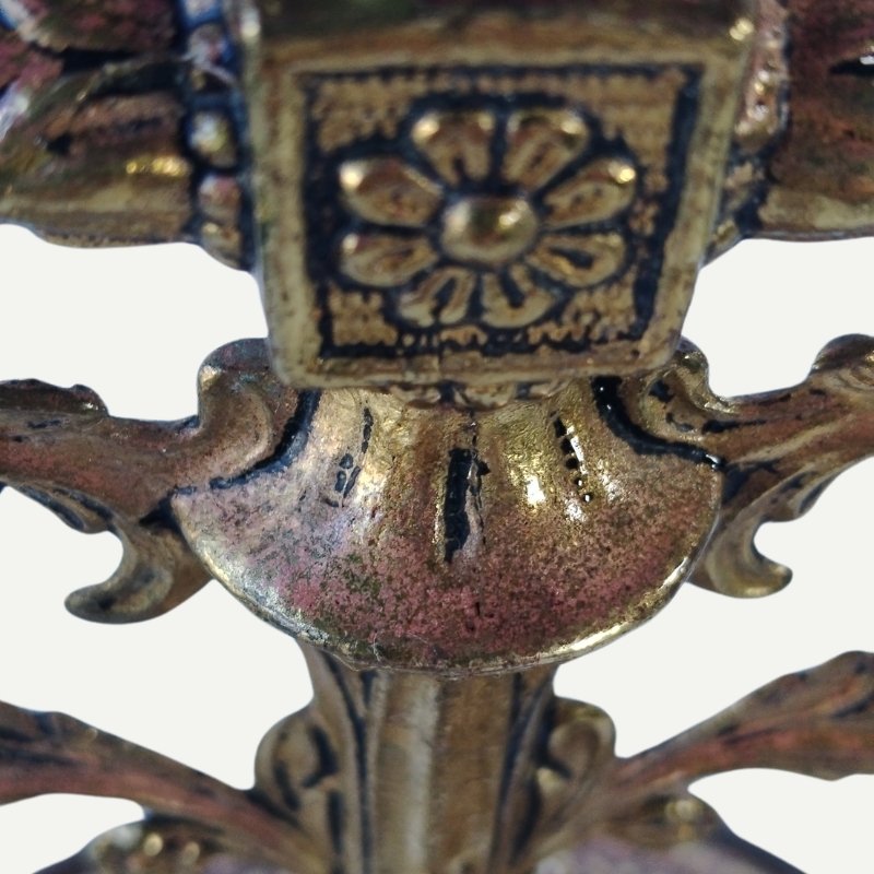 The bronze frame features patinas typical of natural oxidation, with dark tones that add unique character and highlight the piece’s history.