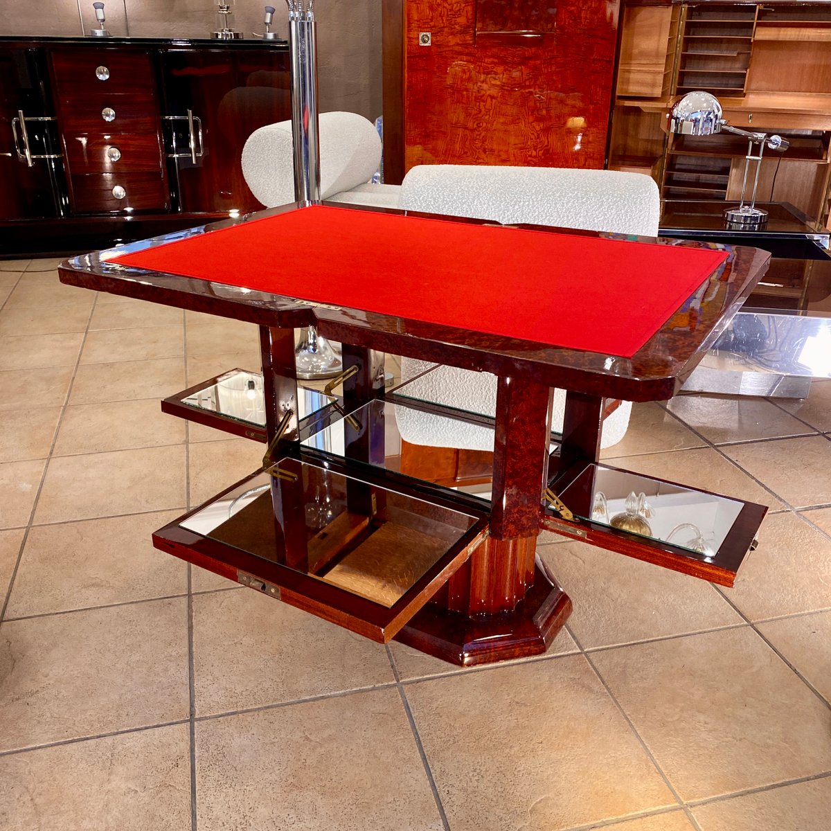 Vintage Art Deco Spieltisch mit Cocktailbar, 1925