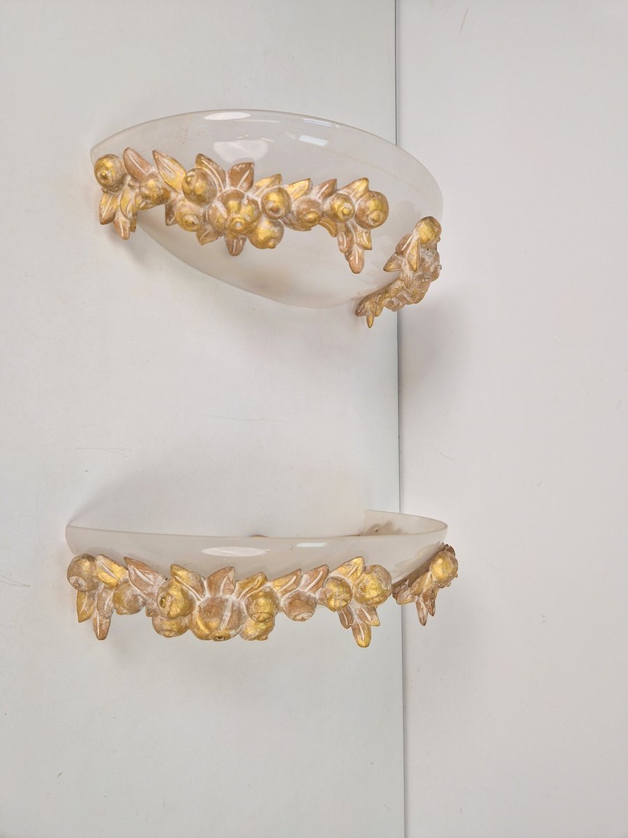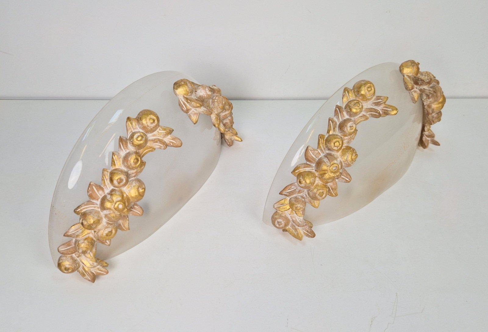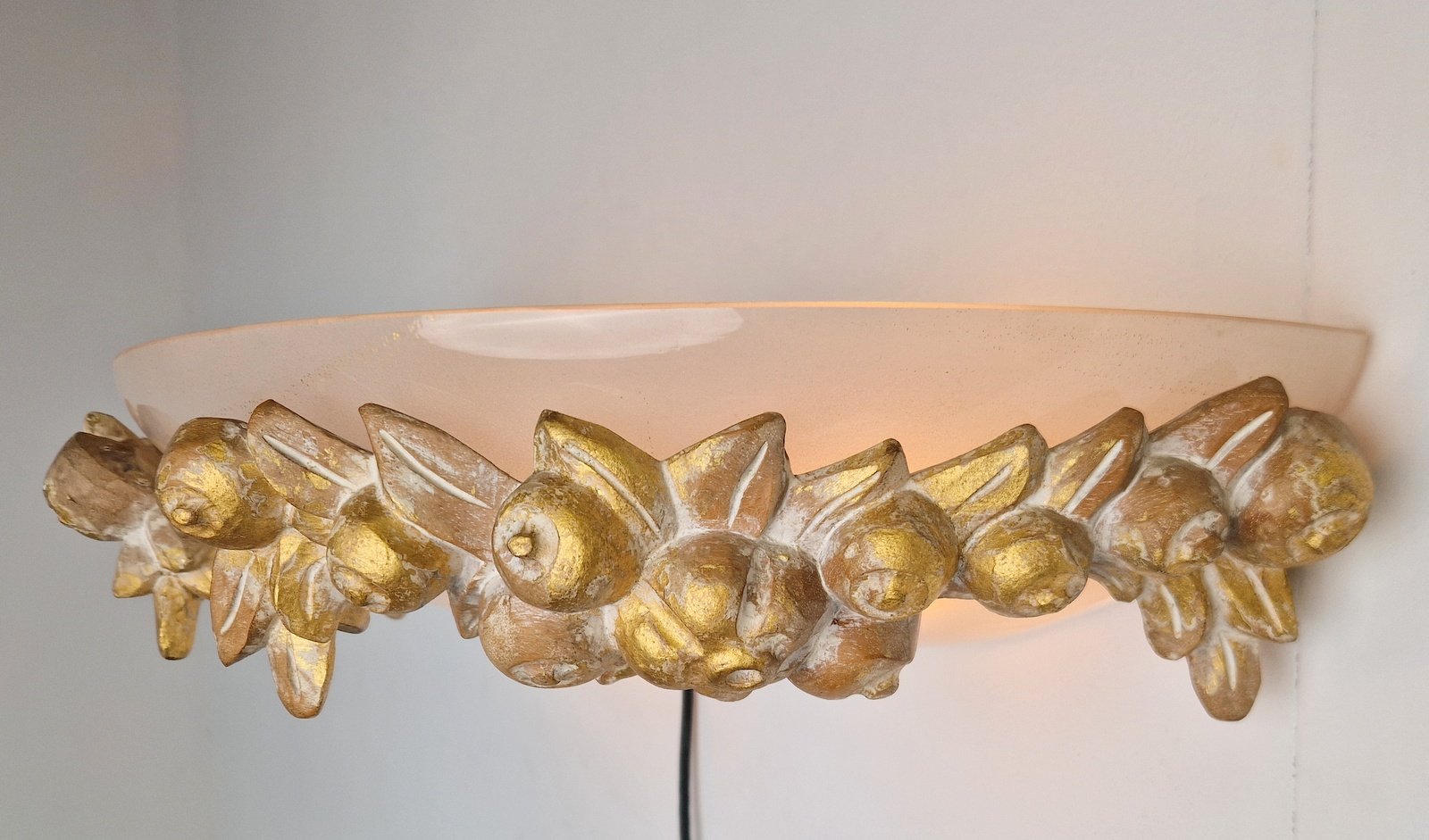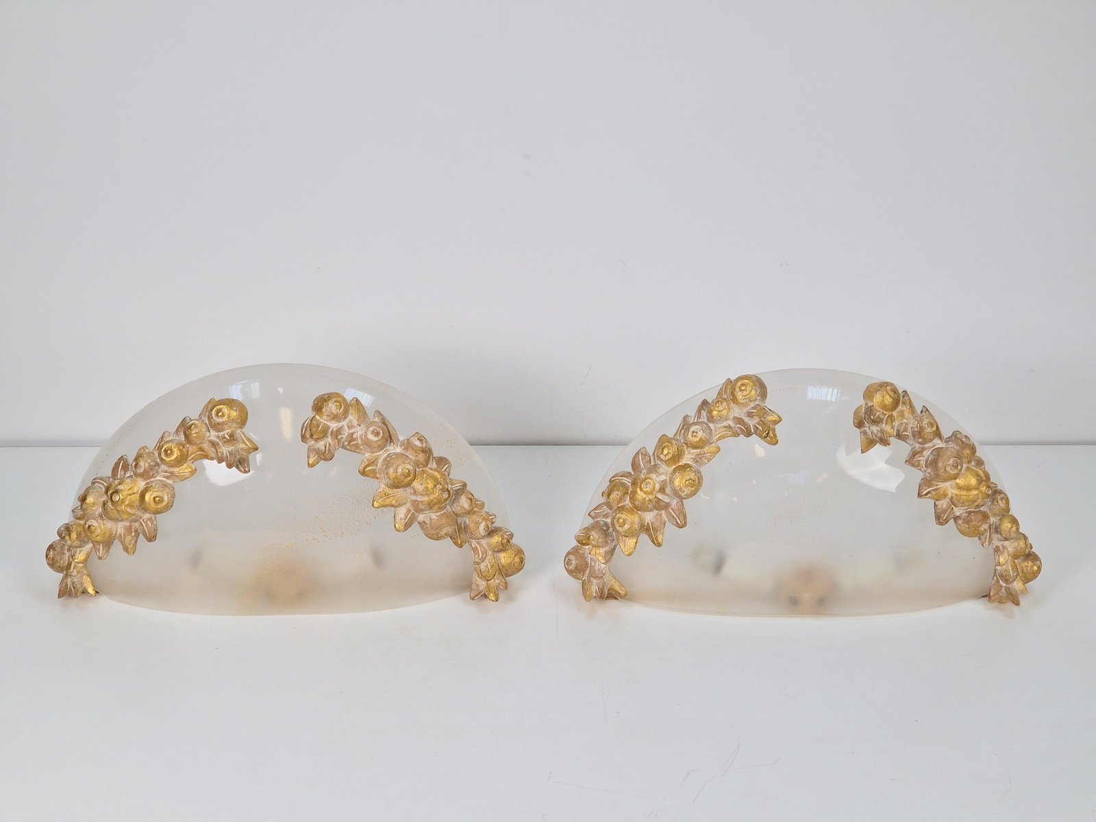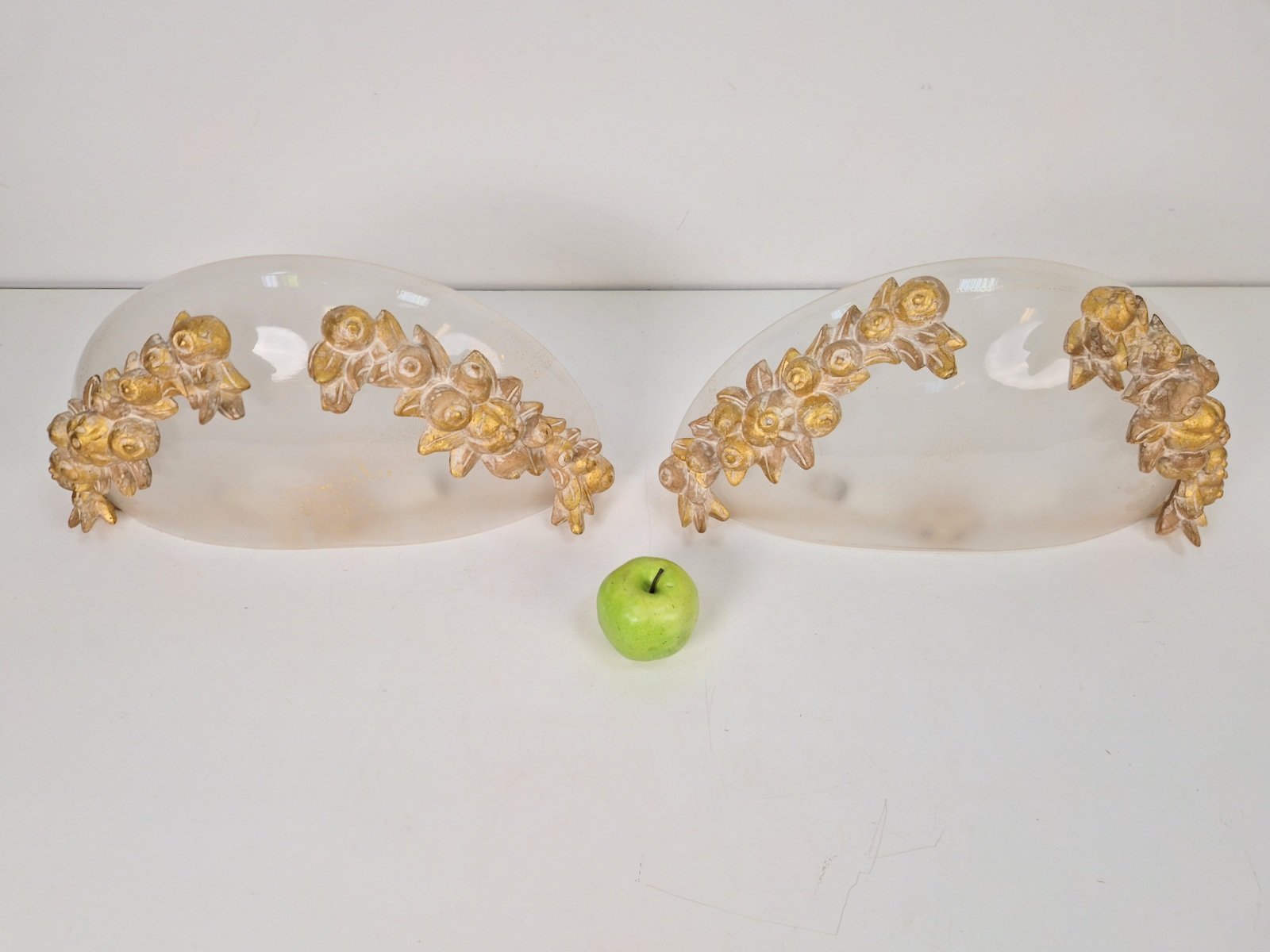 Vintage Bowl Wandlampen aus Goldleaf Murano Glas, Italien, 1970er, 2er Set