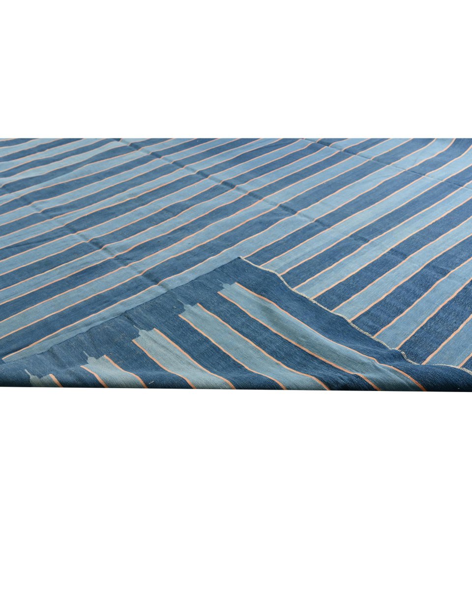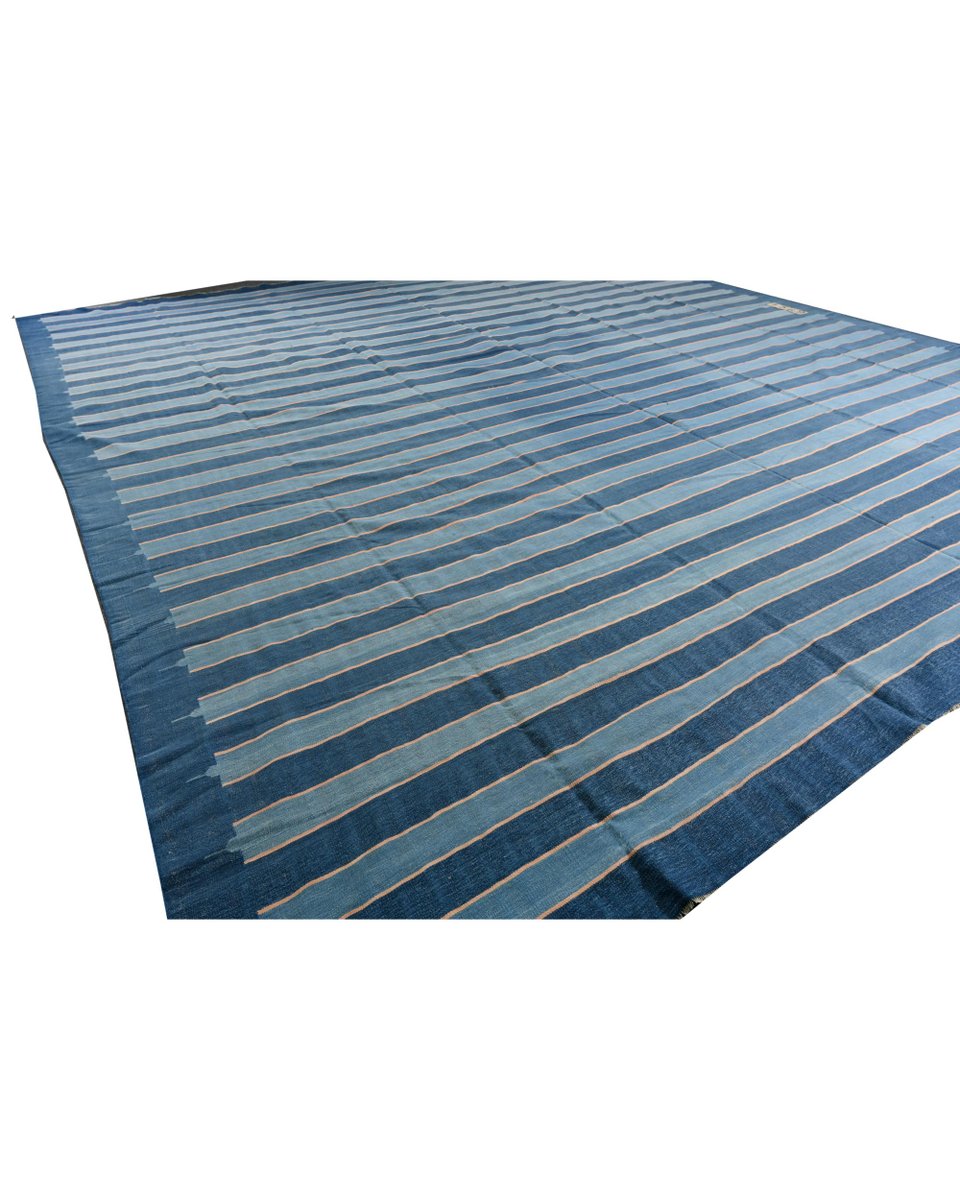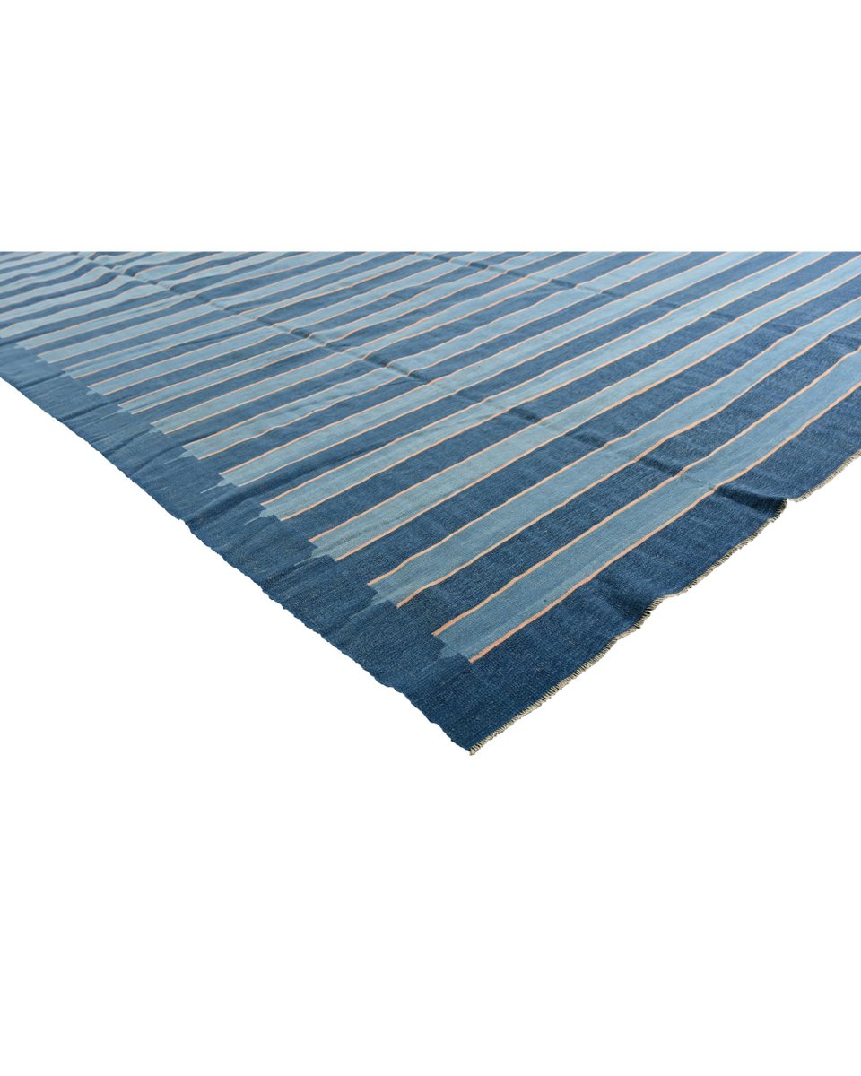 Vintage Dhurrie Flachgewebe in Blau & Roten Streifen von Rug&Kilim, 1950er